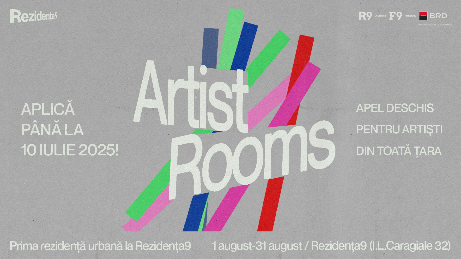 Centrul de cultură contemporană Rezidența9 lansează un apel deschis pentru ARTIST ROOMS, un program anual de rezidențe destinat artiștilor tineri din afara Bucureștiului, care își doresc să exploreze și să lucreze într-un cadru colaborativ. Programul sprijină faza de cercetare și dezvoltare a unui proiect artistic, punând accent pe proces și interacțiune, fără a impune realizarea unui produs final.