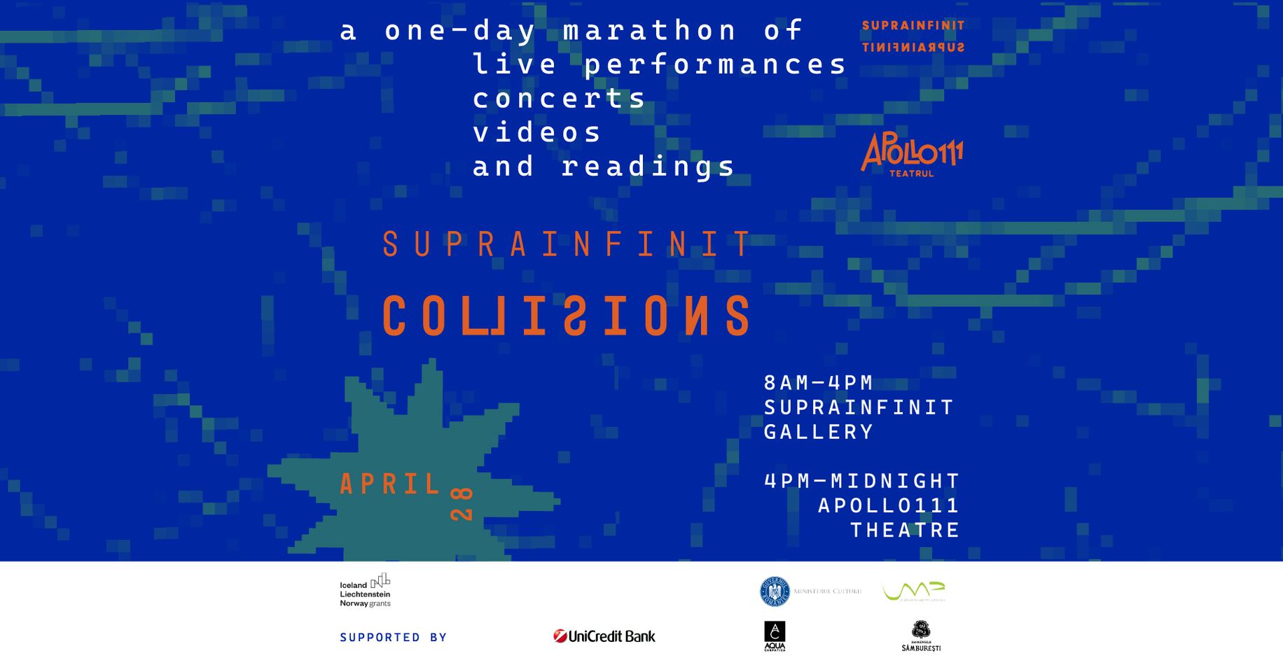 Celebrating the end of the project “Marathon of Art Practices”, the live event Suprainfinit Collisions invites artists, performers, writers, musicians, sociologists, anthropologists, and cultural theorists to tackle physical, cultural and historical shifts. It assembles multiple perspectives on what change, memory and movement mean in our complex environment.