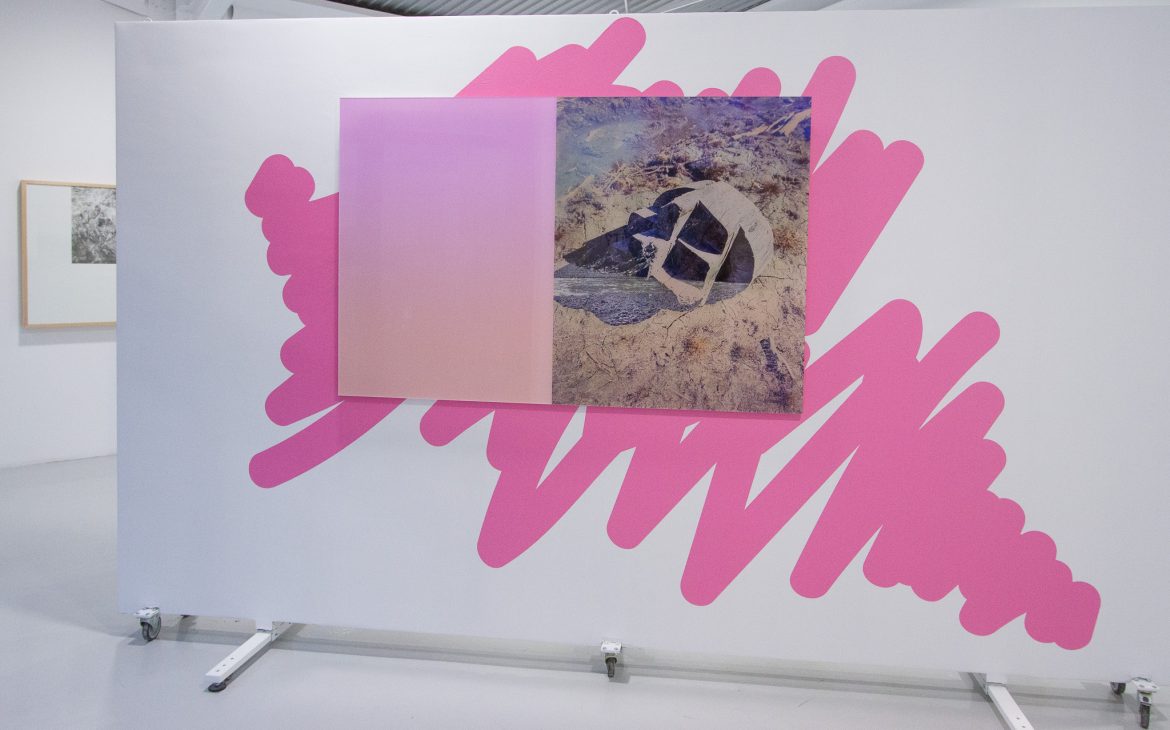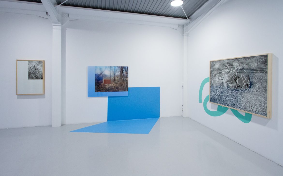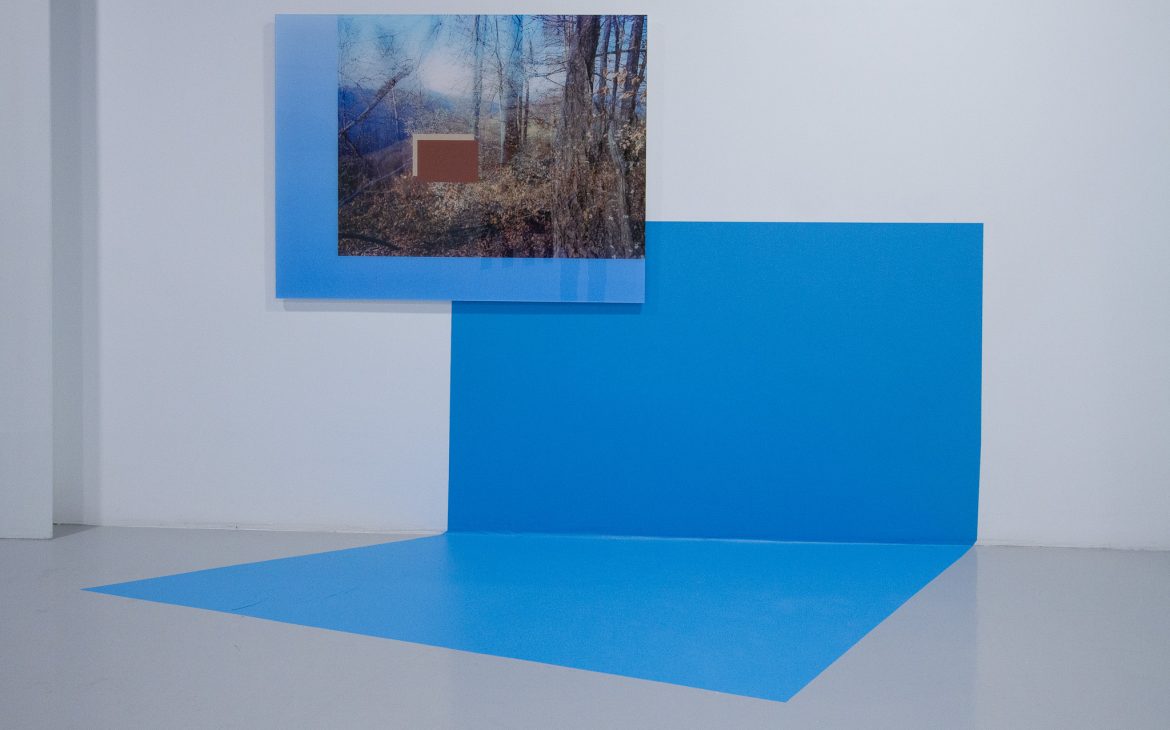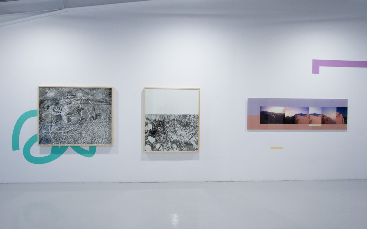 The visual situations created by the artist in the gallery space involve the cohabitation of multiple elements: flat vinyl shapes in chromatic harmony with the photographic images, which in turn are constructed by layering multiple images. This photomontage technique has historical roots in the artistic practices of the Surrealists in the early decades of the 20th century, when the juxtaposition of multiple images aimed to divert the viewer’s attention from the real world, projecting them instead into the universe of the subconscious.