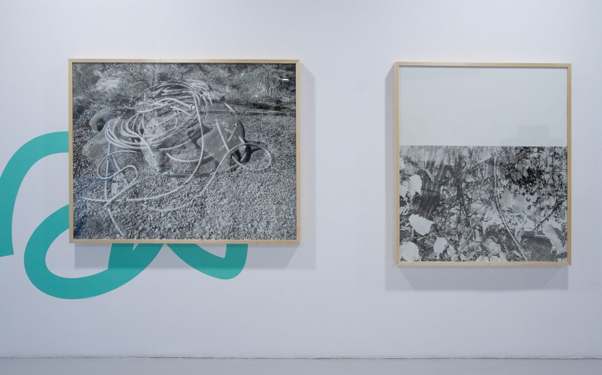 In the case of this exhibition endeavor, the “diversion” directs the viewer toward perceptual analysis. The monumental scale of the works, their organic cohabitation with colored vinyl signs, and their spatial installation allow the viewer to become immersed in an abstract, semiotic space. Is this process arid or “cold”? I wouldn’t say so. The images have a distinct poetics; the fragments of natural or urban landscapes bear witness to the artist’s wanderings, in which the camera functions like a seismograph of her inner states.