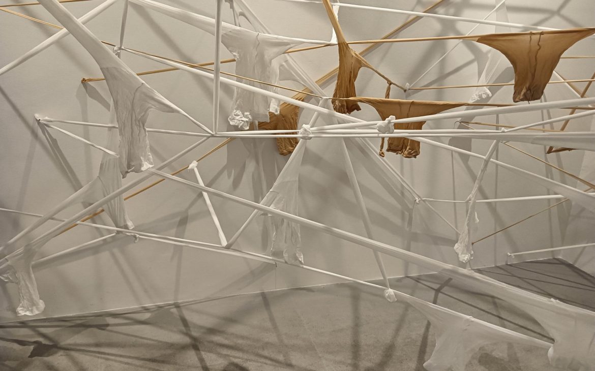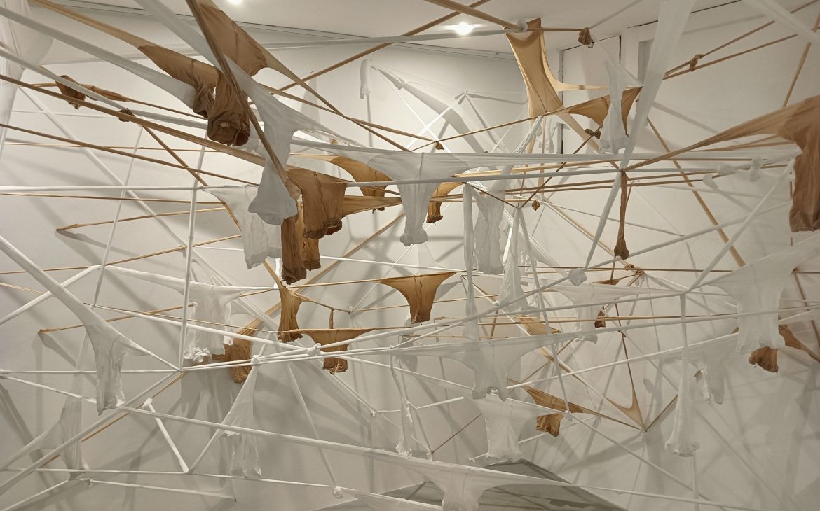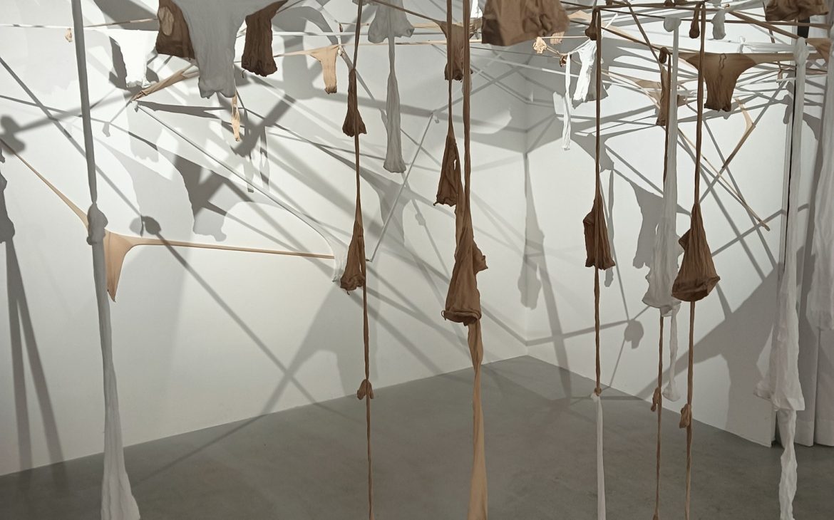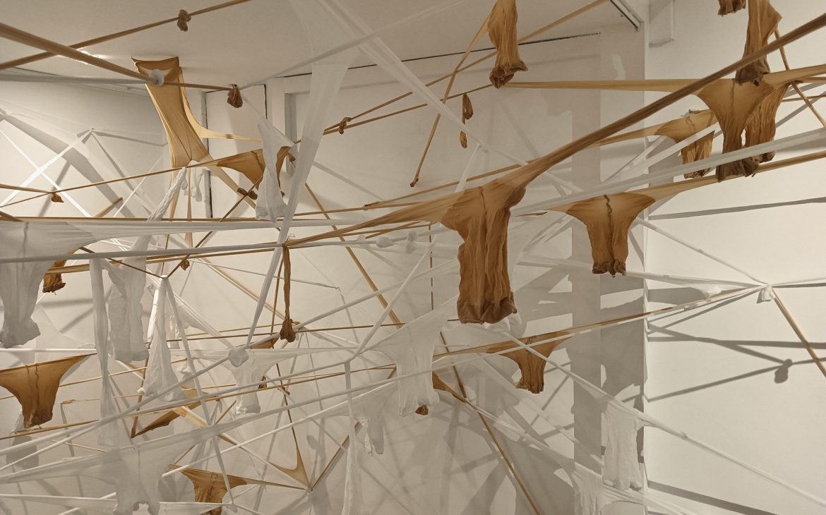 The performative installation “Proces de remaiere” by Aproximativ 28 Group — composed of artists Ana Bănică, Cuzina, Oana Marinică, Alina Paina, Alina Șerban, Dora Tishmann, and Mihaela Moldovan — can be visited at 15 Design Gallery (63 Lipscani Street, Bucharest). The project brings together seven artists, mothers, and women with diverse experiences in a shared act of reweaving and healing, exploring fragility, memory, and resilience through artificial silk stockings and the symbolic gesture of mending.