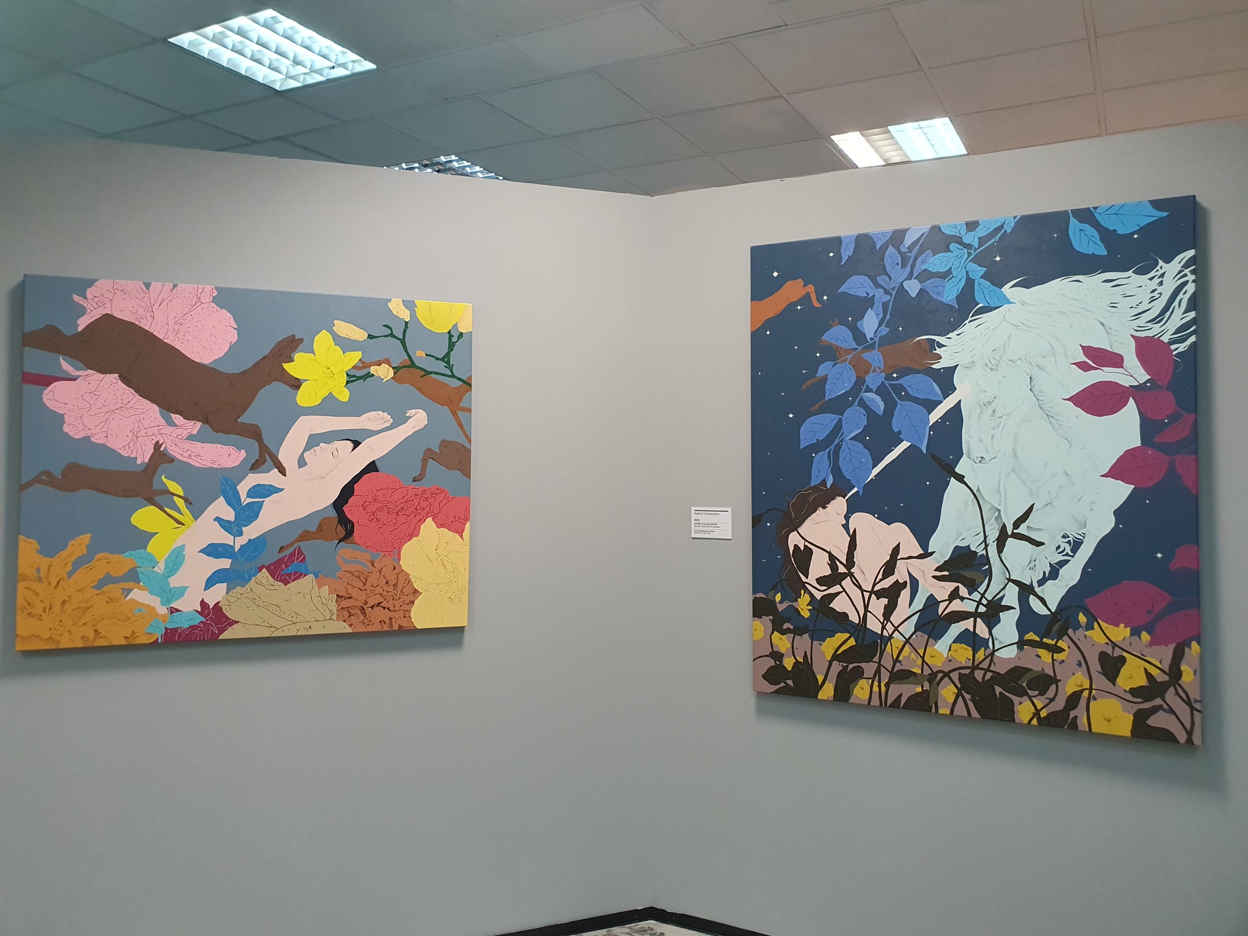 Ondine Slimovschi (b. 1982) is an artist of serene mythology and the bestiary of beautiful fairy tales. Using the female portrait as a tool to suggest strong emotions, Paul Baraka (b. 1994) is an artist who focuses on shocking and provocative subjects. His approach is also critical, highlighting the banality of evil through sarcasm and irony.