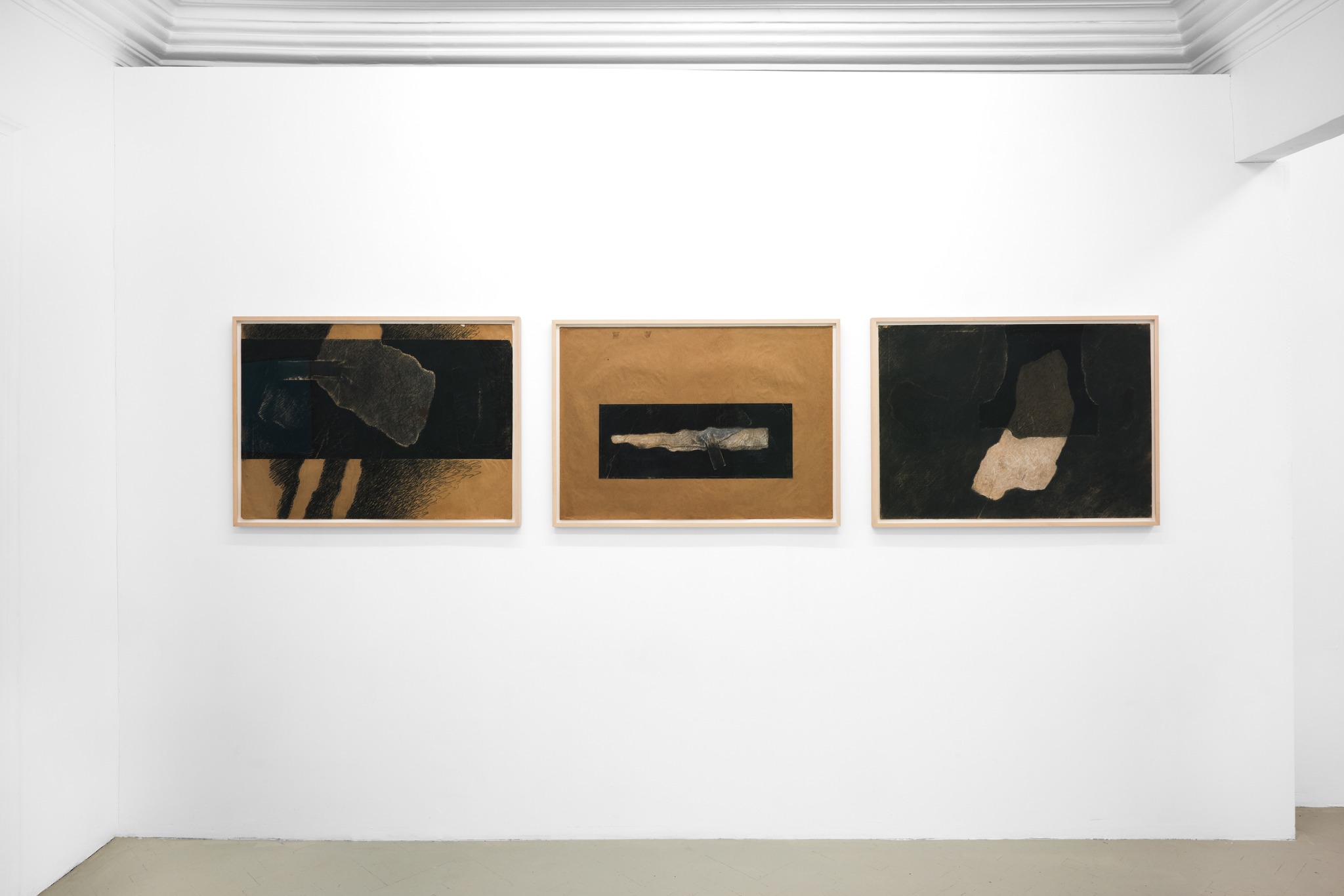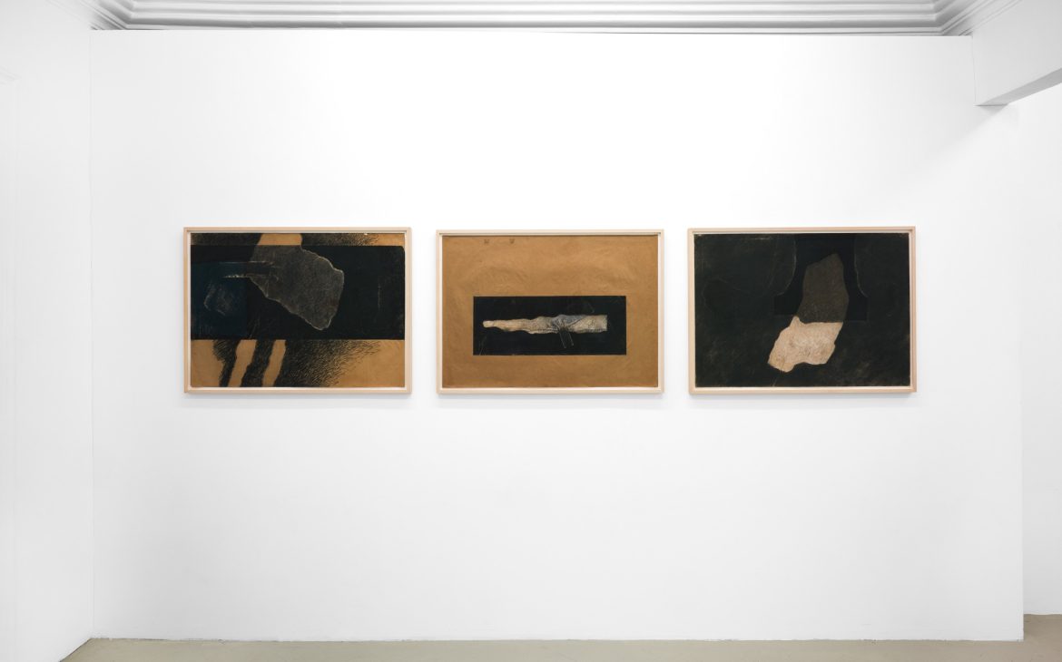 For Geta Brătescu, the experience of war was a direct one, recalled in the volume “Atelier Vagabond”, published in 1994 (pp. 36–37, Cartea Românească), where she recounts how the Despina Doamna girls’ high school building was turned into a hospital for the war wounded, while senior students supervised the wards. The series Pre-Medeic Forms (1975–1977) originated from the image of a military convoy drawn by Geta Brătescu in a composition structured as a mass of conflicting forces, still bearing faint traces of a contemplative archaeology: canvas, wood, straw, iron. From this series, the Medeic form later develops, detached from the mass of opposing tensions.