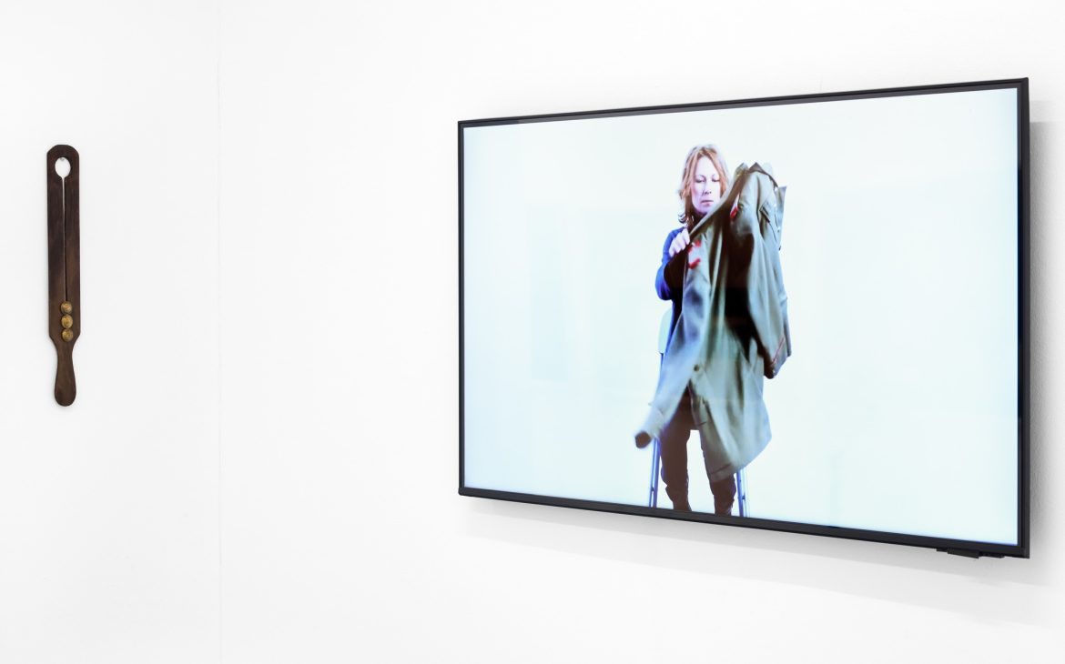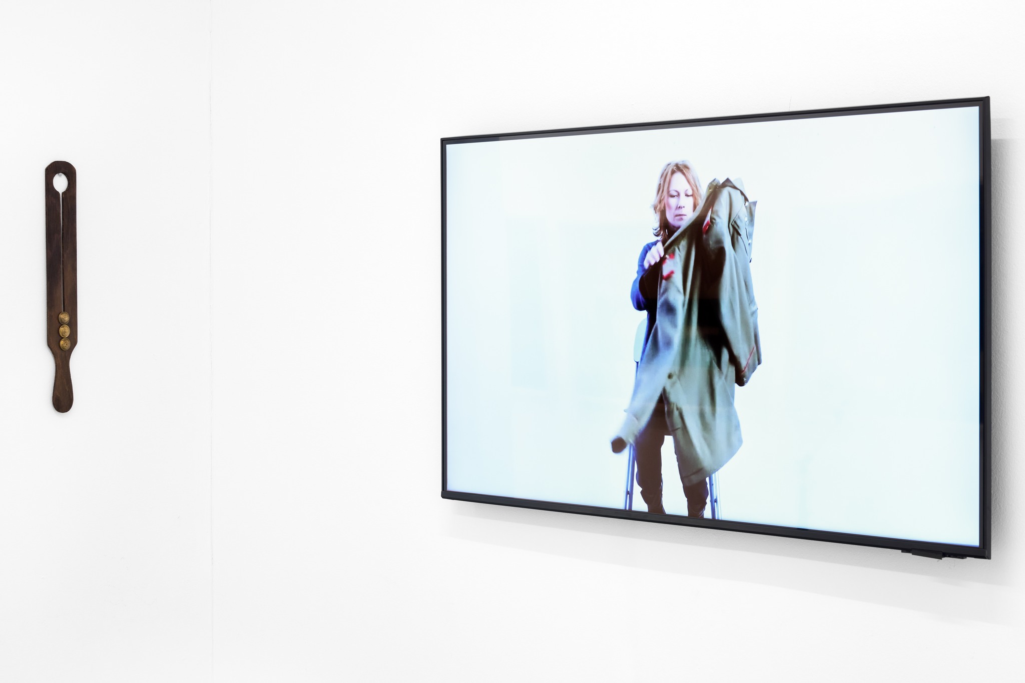 The video Perfect by Iulia Toma is built around a repetitive, hypnotic gesture. Polishing the buttons of a military uniform becomes a channel of communication and remembrance of the daily ritual practiced by the artist’s father. The relationship of presence–absence with the paternal figure is rendered through rigor and attention to detail, meant to construct the image of a perfect outfit associated with respectability. Thus, an apparently rigid gesture is transformed into an intimate moment of reconnection with the past. The memory of the father also reappears in the work The Pocket Turned Home, where the recollection of the ritual of waiting for him is reflected in the detail of the uniform. (curatorial text)