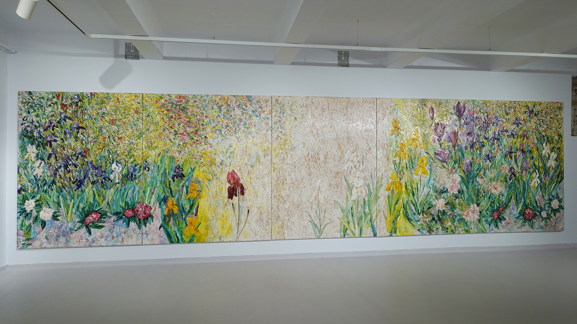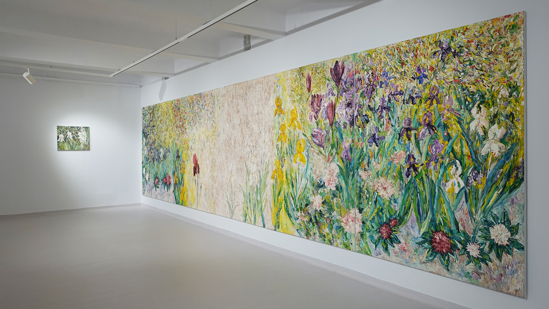 Although floral paintings have traditionally been considered frivolous and lacking in conceptual weight, Sorin Scurtulescu’s practice proves that the “decorative” is not devoid of concept and that pleasure does not exclude intellect. The artist uses pictorial materiality to re-dimension the perception of flowers, resorting to a dense impasto and a treatment of surfaces that is both brutal and delicate. Playing with the monumentality and architecture of flowers, the artist creates a subtle dynamic between the presence and absence of the landscape, revealing a creative tension.