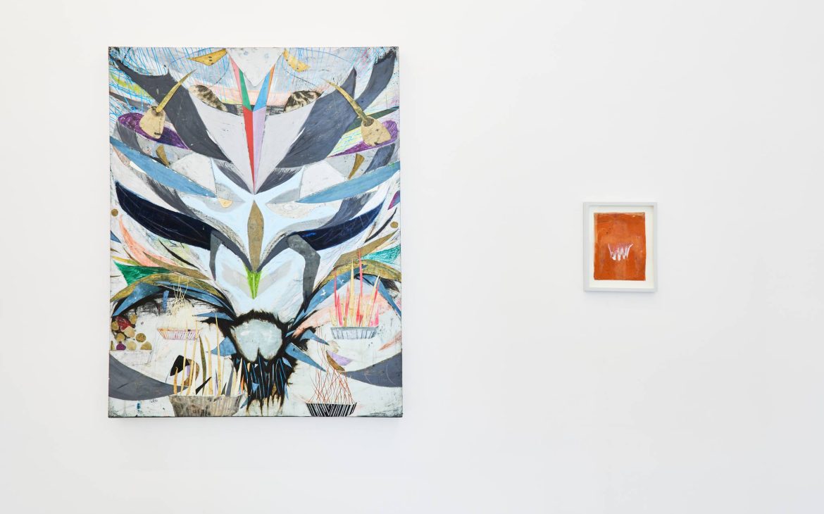 Works such as “Only Eating Potatoes” (2015) or “Our Dead Plant” (2010-2020) by the London artist Ross Taylor (b. 1982) inspire us from the very title, a fictional universe populated by characters created by overlapping landscapes and bright colours, proposing the meeting of heterogeneous spaces, constantly alluding to each other. This obsession with spatiality gives rise to forms that can hardly be assimilated into a particular kingdom or species. The leaps between everyday and mythical imaginings, psychological interior and exterior, and prehistoric and hypermodern make room for benign creatures strung together like inserts in a travelogue.