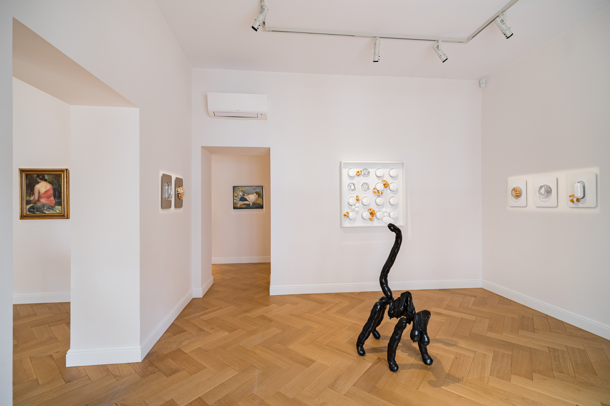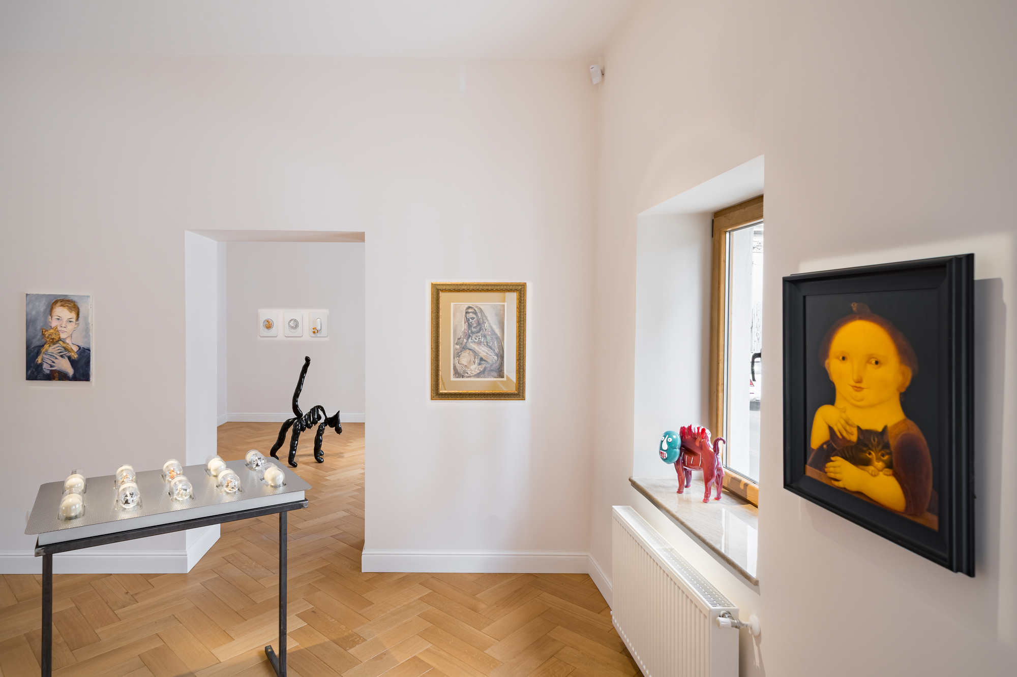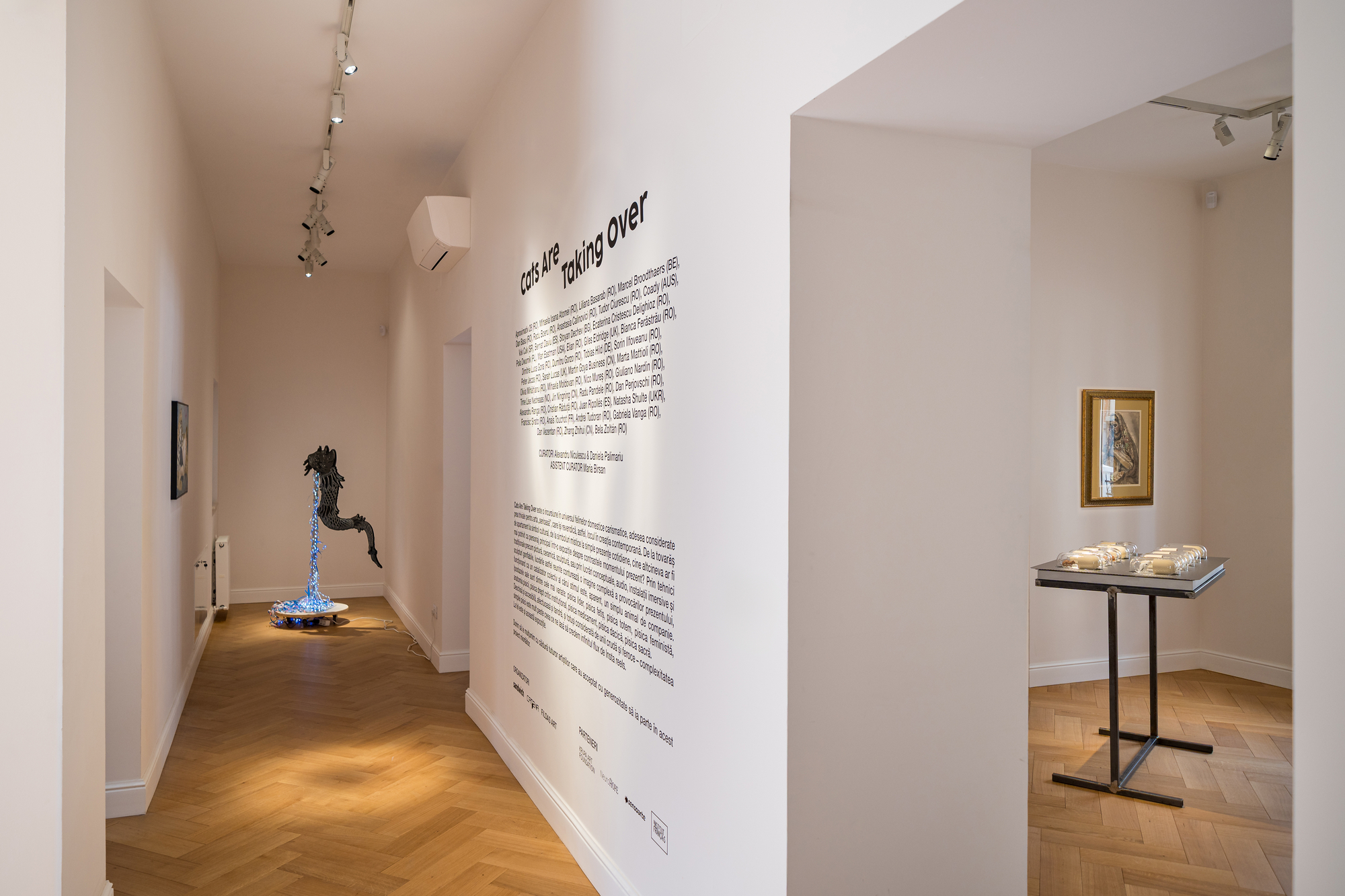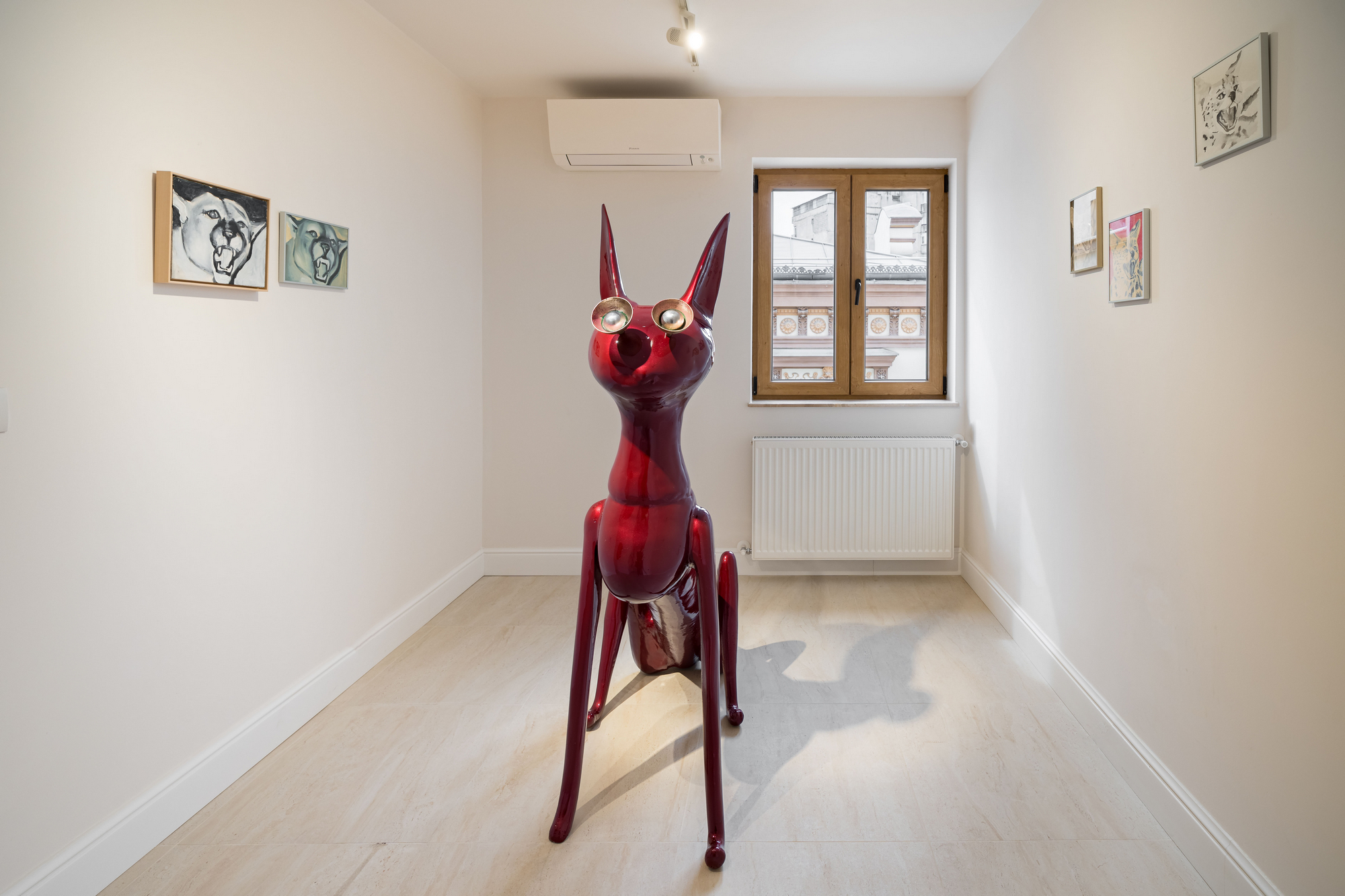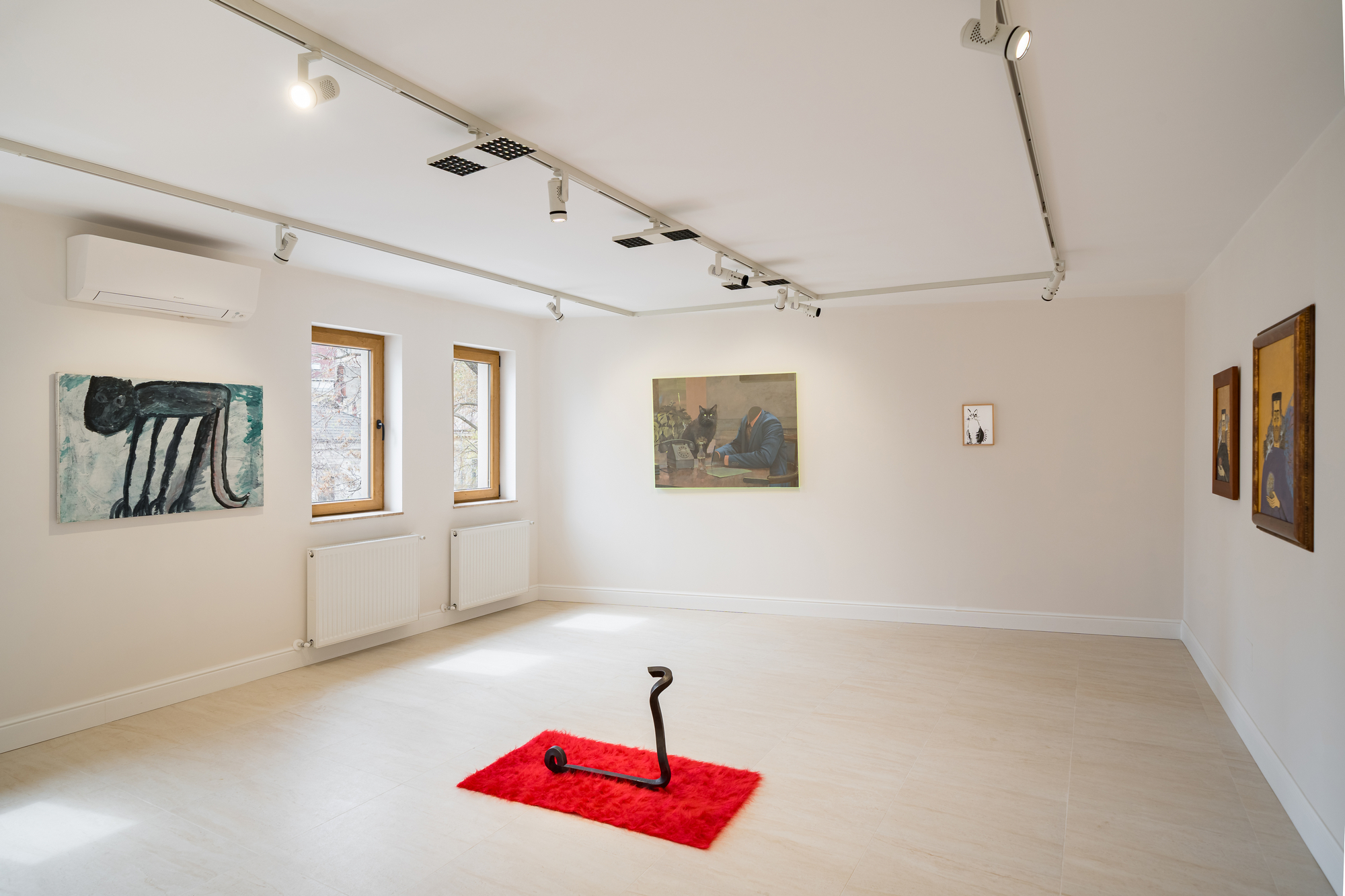 “The exhibition uses the cat as a pretext – a symbol of intimacy, mystery and irony. “Cats Are Taking Over” is an incursion into the universe of charismatic domestic felines, often considered too trivial for “serious” art, which thus claim their place in contemporary creation. From flatmate to cultural symbol, from mystical symbols to simple everyday presences, who else would be more suitable as the main character in an exhibition about the contrasts of the present moment? Through traditional techniques such as painting, ceramics, sculpture, or through conceptual works, audio, immersive installations and inflatable sculptures, the works thus brought together outline a complex image of the challenges of the present, functioning as a collective catalyst whose stimulus is, apparently, a simple pet. Its hypostases are among the most varied: the leader cat, the fetish cat, the totem cat, the feminist cat, the anatomy of the cat, the cat as an institutional critic, the medicine cat, the Dacian cat, and the sacred cat.” (curatorial text)