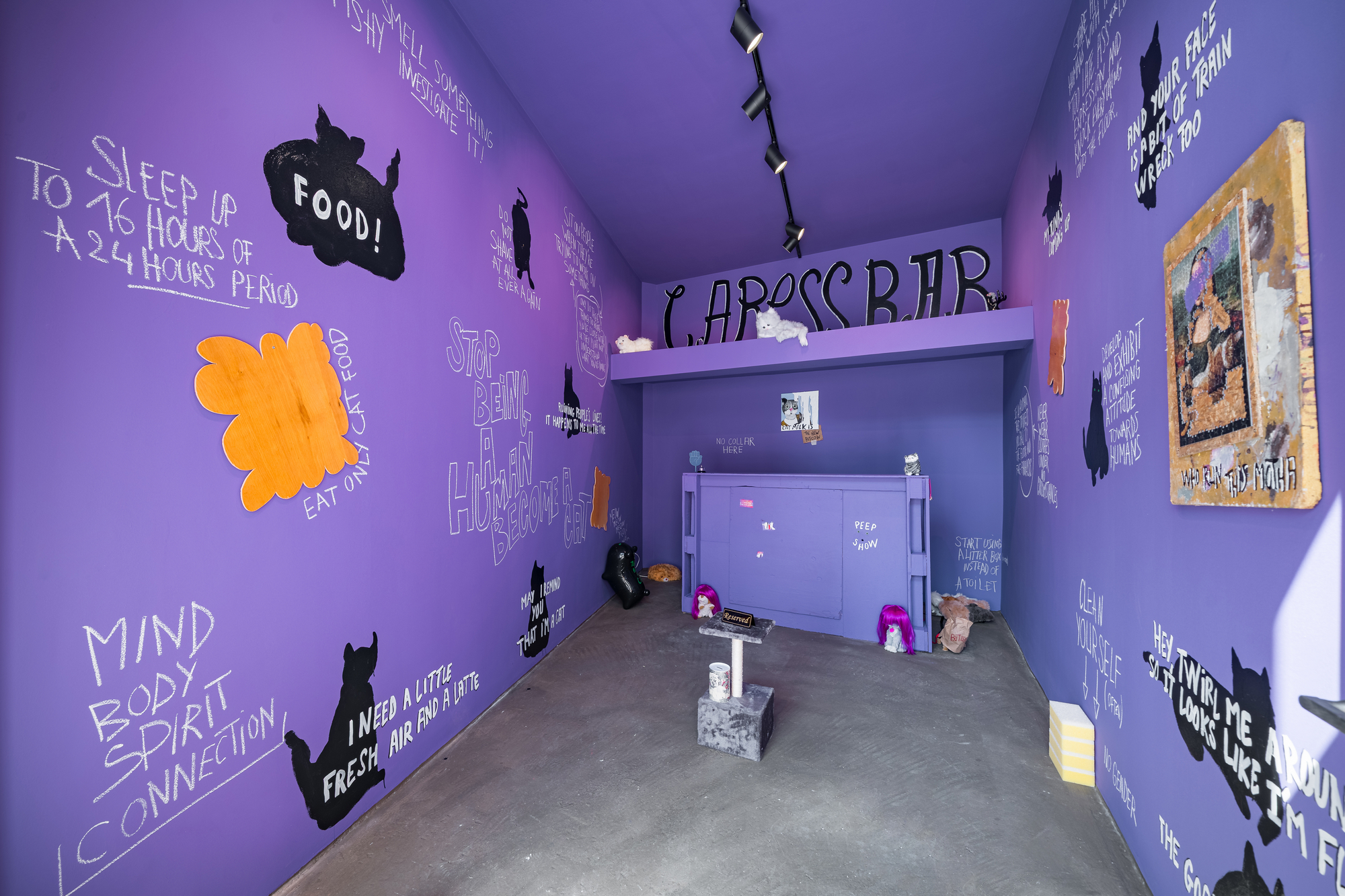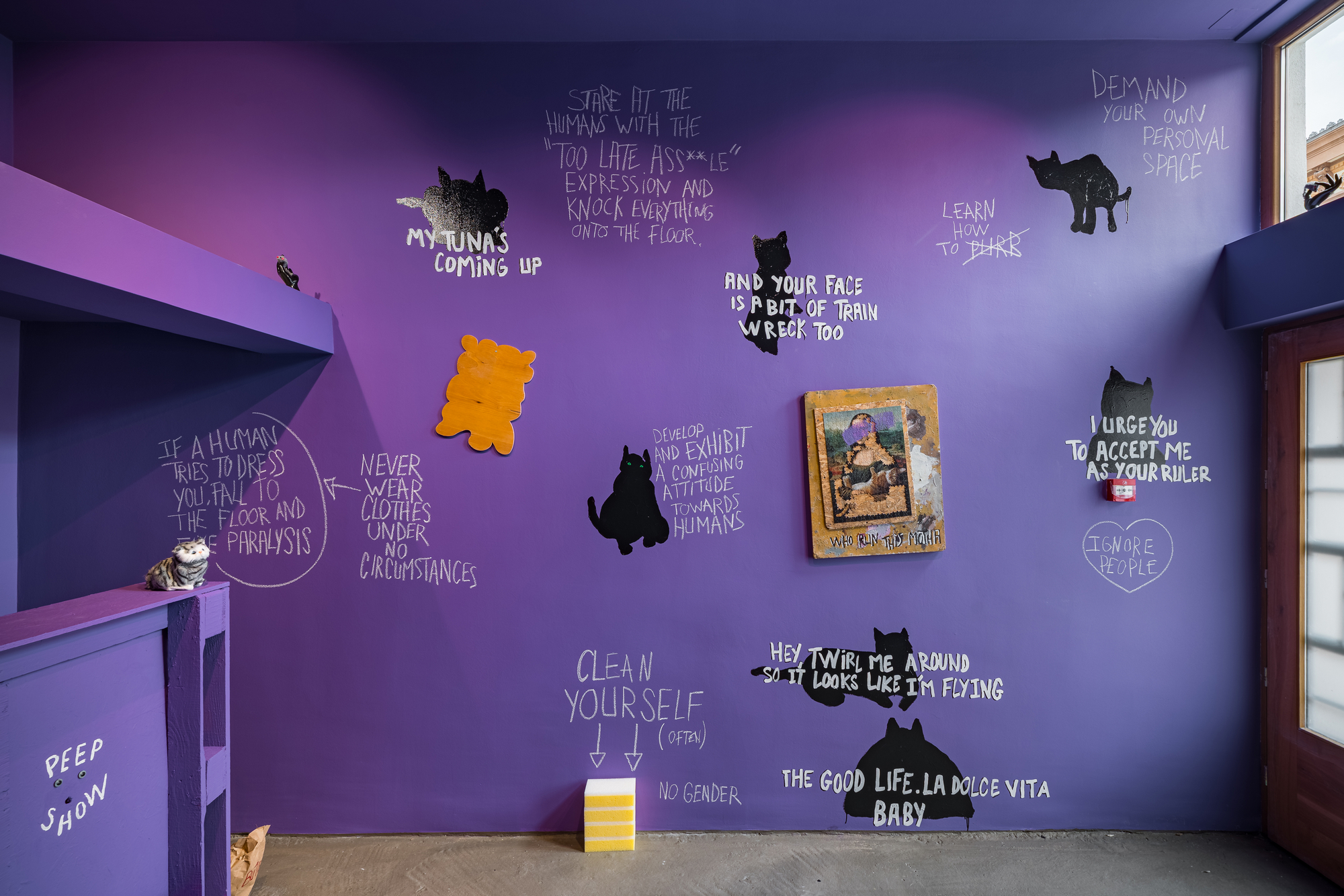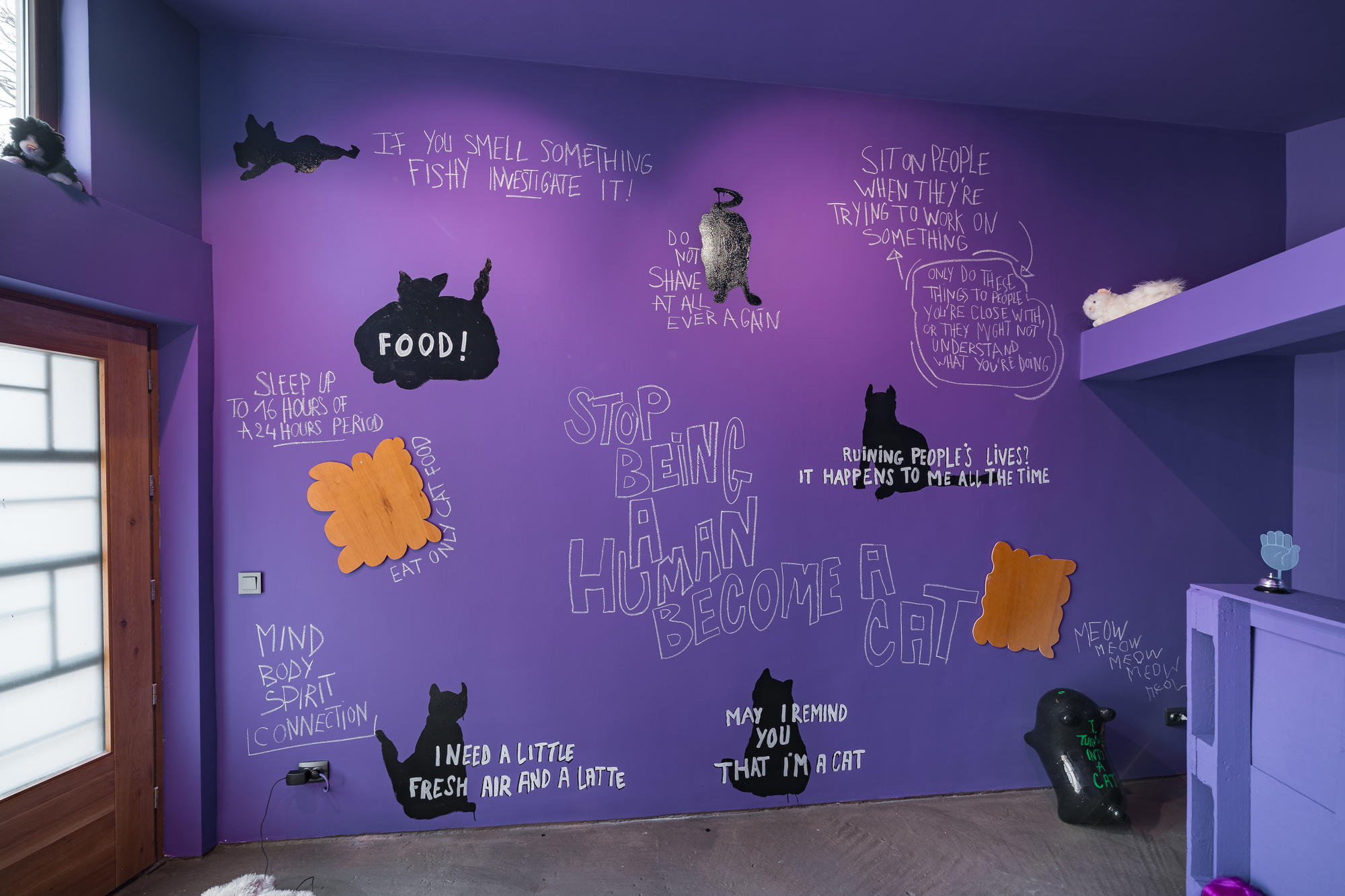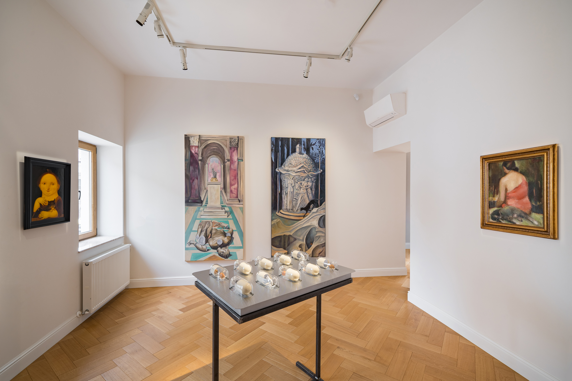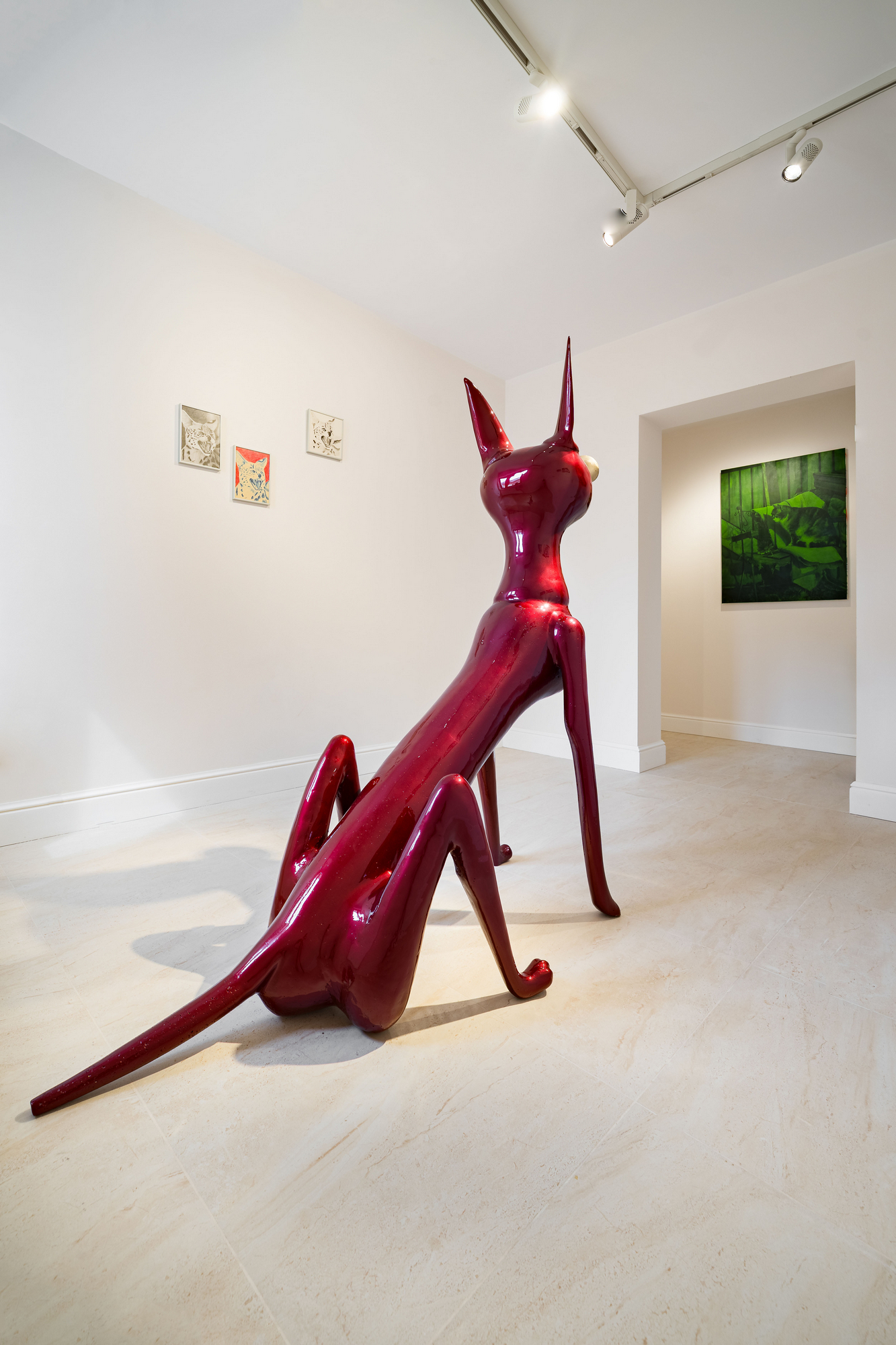 “The exhibition uses the cat as a pretext – a symbol of intimacy, mystery and irony. “Cats Are Taking Over” is an incursion into the universe of charismatic domestic felines, often considered too trivial for “serious” art, which thus claim their place in contemporary creation. From flatmate to cultural symbol, from mystical symbols to simple everyday presences, who else would be more suitable as the main character in an exhibition about the contrasts of the present moment? Through traditional techniques such as painting, ceramics, sculpture, or through conceptual works, audio, immersive installations and inflatable sculptures, the works thus brought together outline a complex image of the challenges of the present, functioning as a collective catalyst whose stimulus is, apparently, a simple pet. Its hypostases are among the most varied: the leader cat, the fetish cat, the totem cat, the feminist cat, the anatomy of the cat, the cat as an institutional critic, the medicine cat, the Dacian cat, and the sacred cat.” (curatorial text)