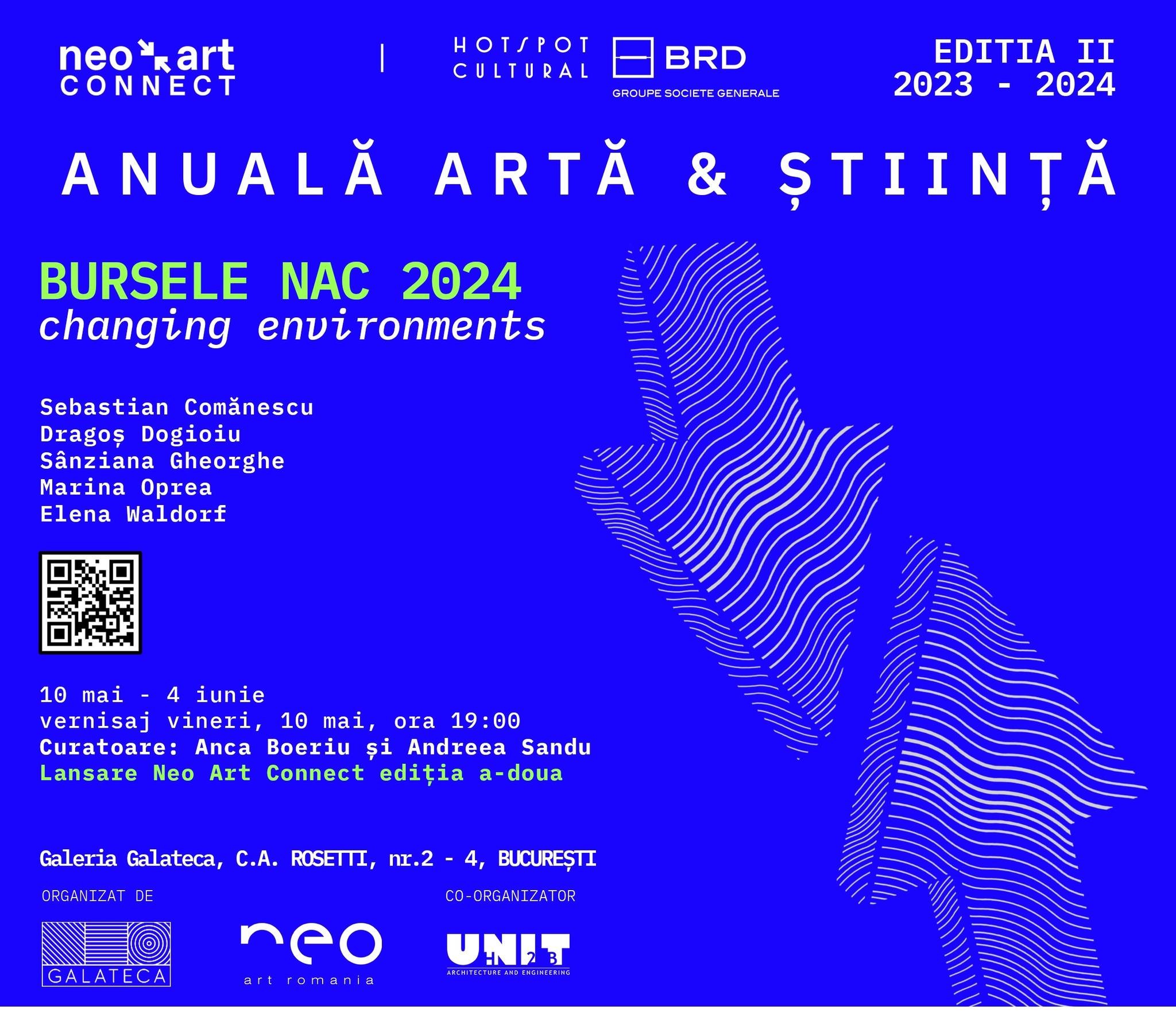 On May 10, the second edition of the Neo Art Connect (NAC) Art and Science Annual begins, organized by the Neo Art Romania Cultural Association and Galateca Gallery, initiated and curated by Andreea Sandu and Anca Boeriu. NAC unfolds in 11 cities from May 10 to July 30, 2024, with “Changing Environments” as its theme.