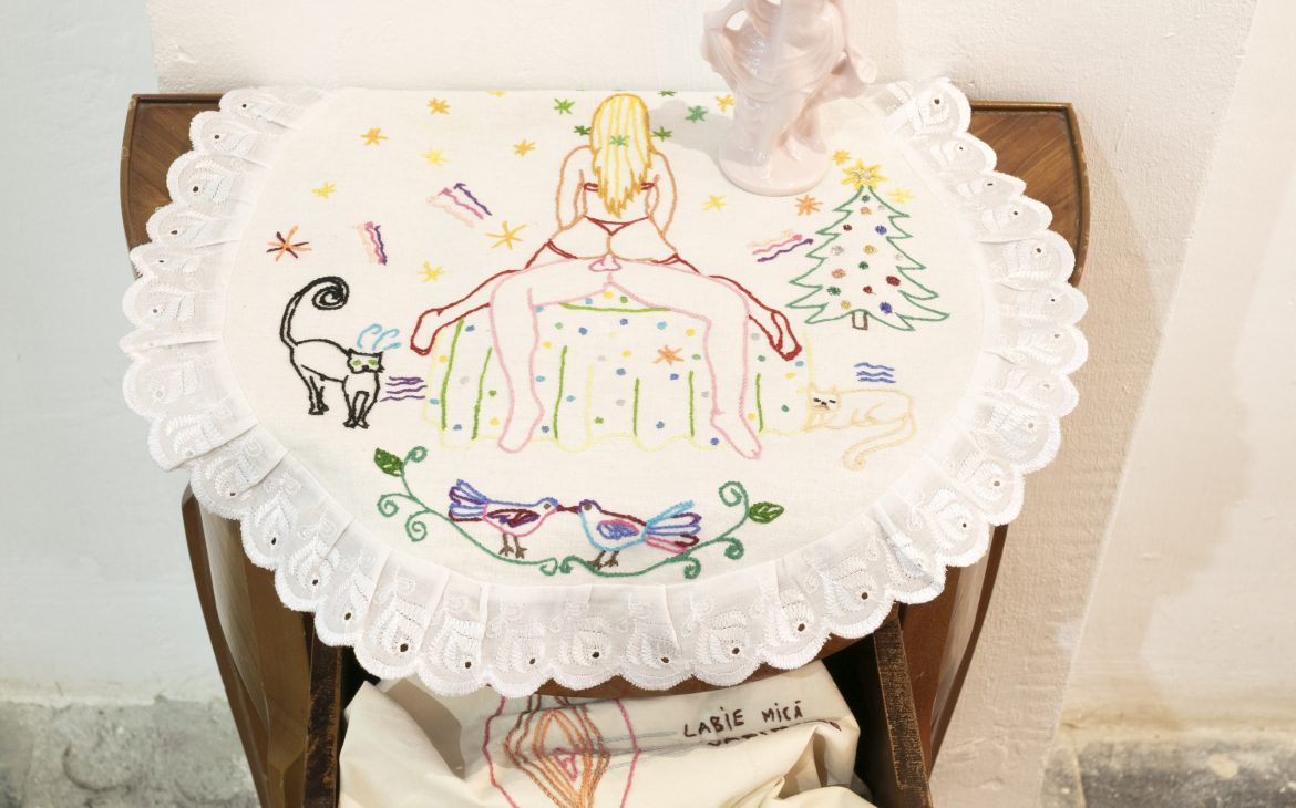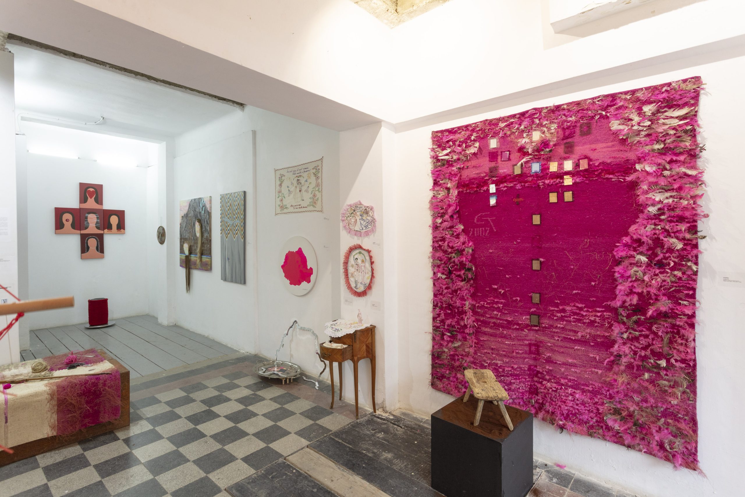 Her artistic practice develops through a constant exploration of a wide range of media: painting, drawing, photography, installation, tapestry, object, and performance. This mobility becomes a key strategy through which the artist investigates ideas, narratives, and observations about reality, often filtered through an ironic sensibility.