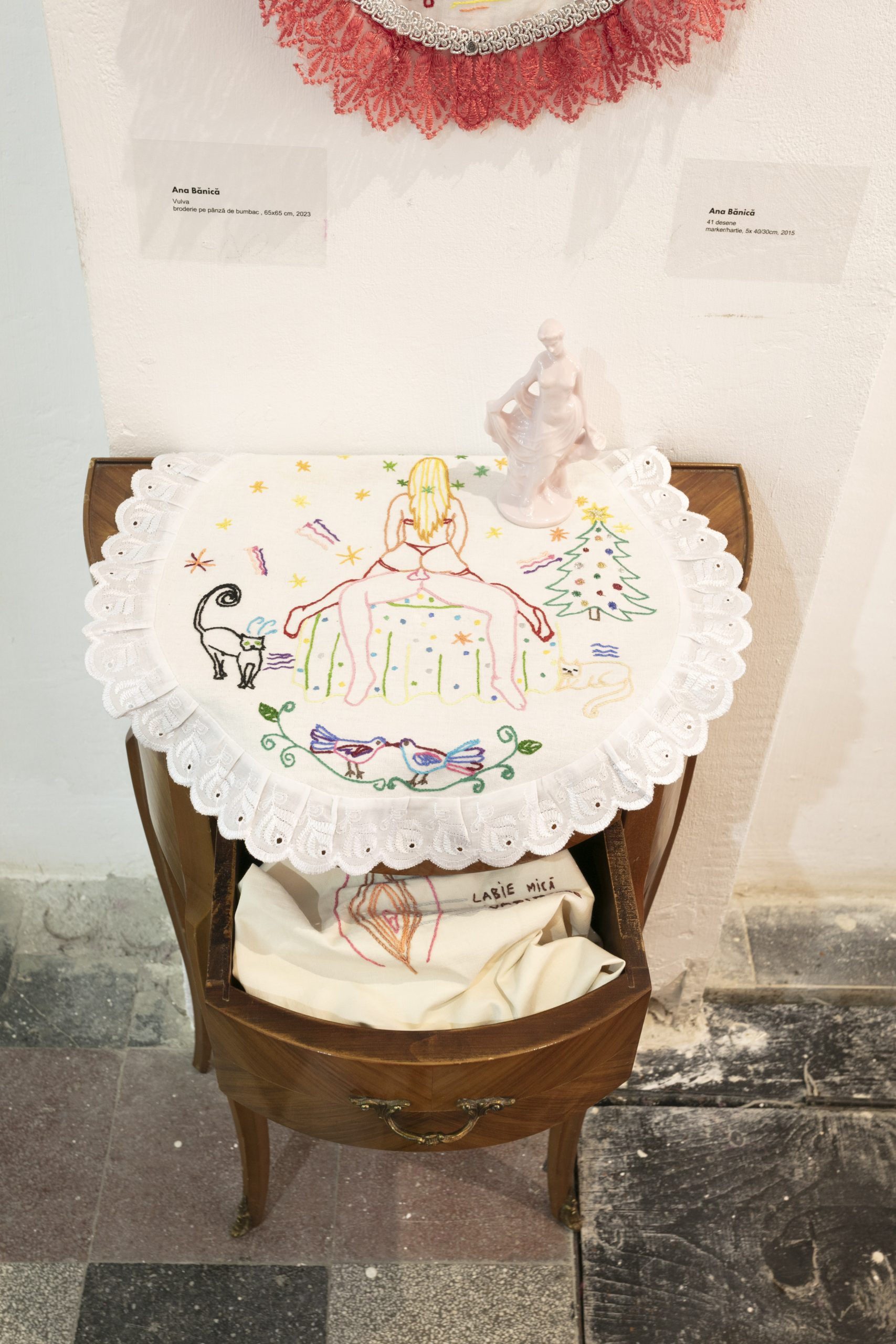 At the core of this approach is the practice of CUZINA, which establishes the conceptual framework of the exhibition. A graduate of the National University of Arts in Bucharest, Department of Tapestry (2004), where she studied under Professor Olga Birman, the artist continued her education with a Master’s degree in Visual Arts under the guidance of Marin Gherasim. Since 2003, she has been a member of the performance group Aproximativ 28, and since 2004, a member of the Union of Visual Artists in Bucharest.