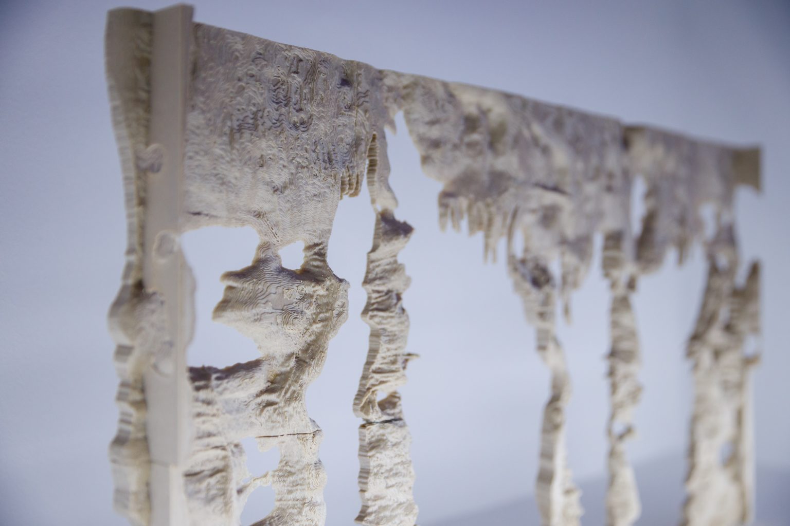 The last room of the exhibition space highlights fragments of 3D simulations and digital worlds populated by human beings, difficult to identify, characters captured either with closed eyes or from behind, running. They seem to be worlds and characters adrift, located in urban and natural landscapes that swallow each other, without any clear demarcations between them. The border between natural and artificial therefore remains undefined.