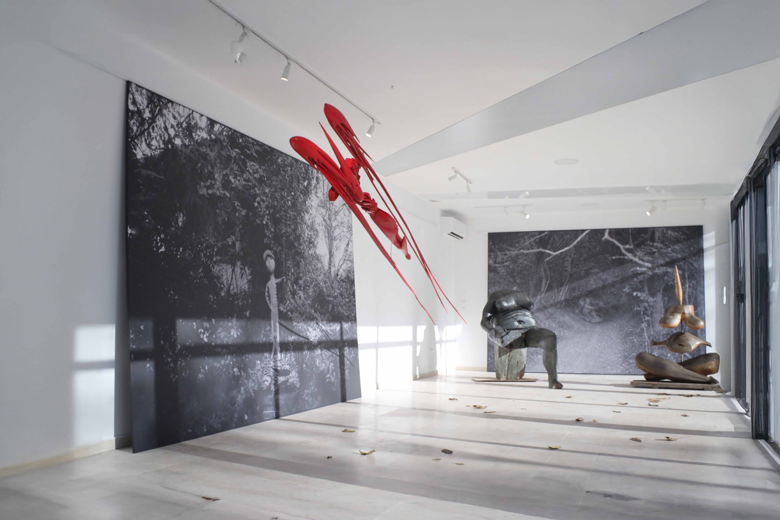 Paintings and graphics signed by Sorin Ilfoveanu, sculptures by Adrian Ilfoveanu and photographs by Nicu Ilfoveanu are on display in the exhibition. It is not the first time that the father and the two sons of the Ilfoveanu family exhibited together. The novelty comes through a curatorial concept that emphasizes new poses of their creation in an exciting dialogue between the austerity of the broad drawings painted on Sorin Ilfoveanu’s monumental canvases, the haptic force of Adrian’s bronze sculptures and the poetic dimension of Nicu’s photographs.