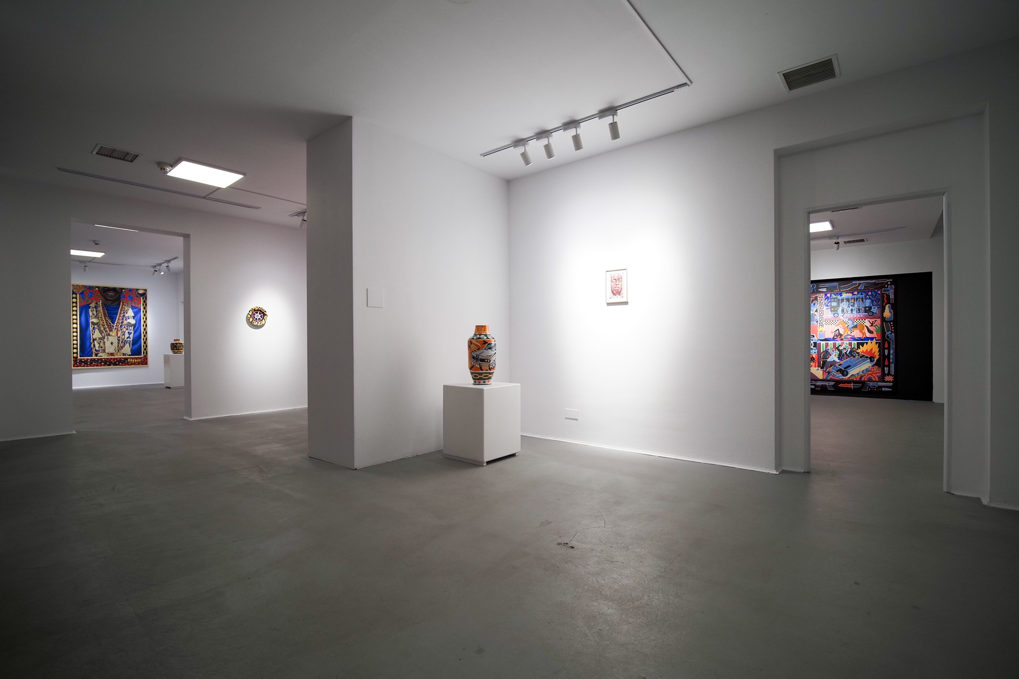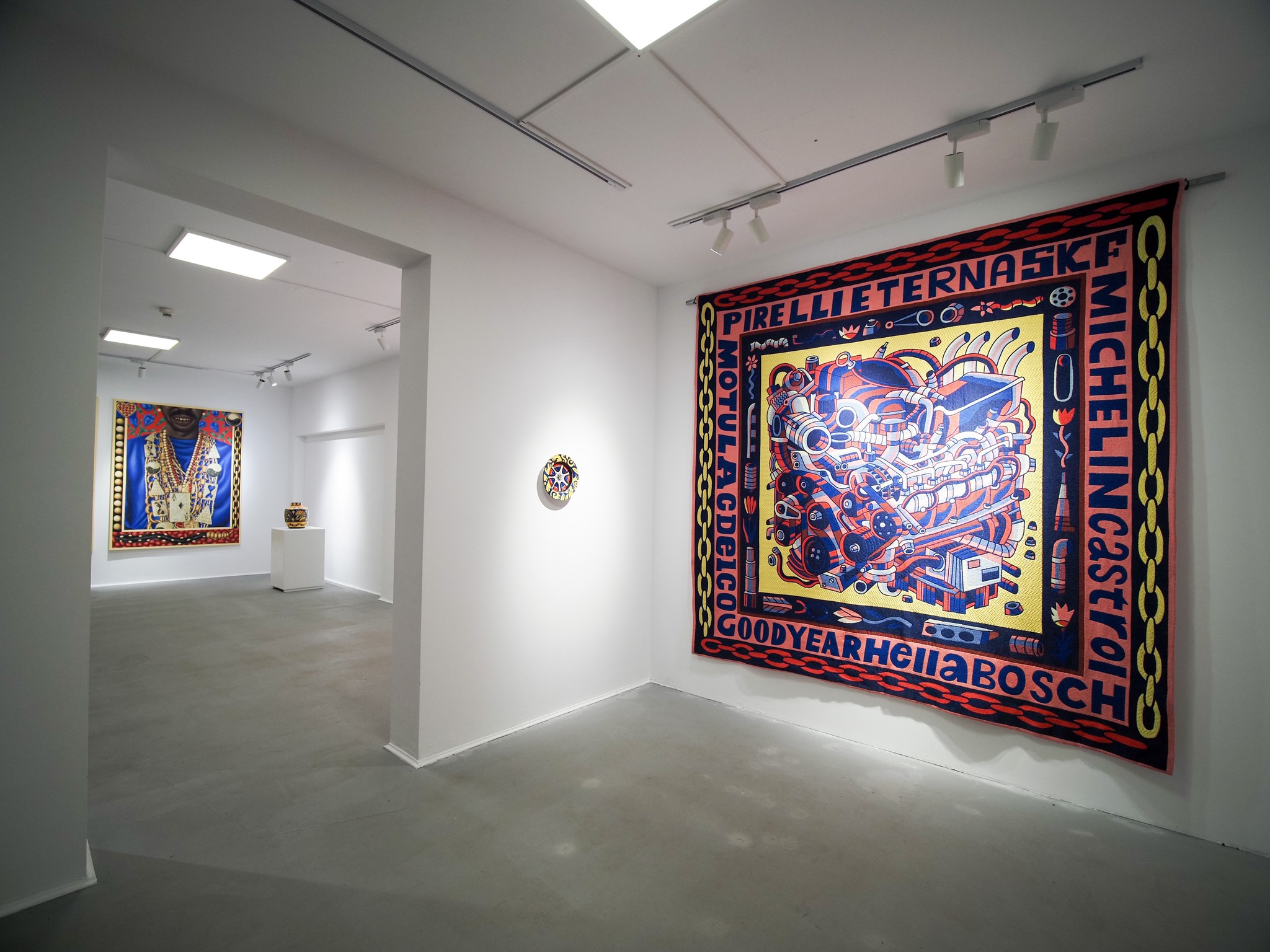 Hosted by Mobius Gallery and The Institute in Piața Amzei, the exhibition FANBOY 2 presents a curated selection from Saddo’s evolving series spanning the past four years. It includes pieces from his inaugural FANBOY solo exhibit alongside first-time on-display sketches, drawings, large-scale paintings, tapestries, and sculptures.