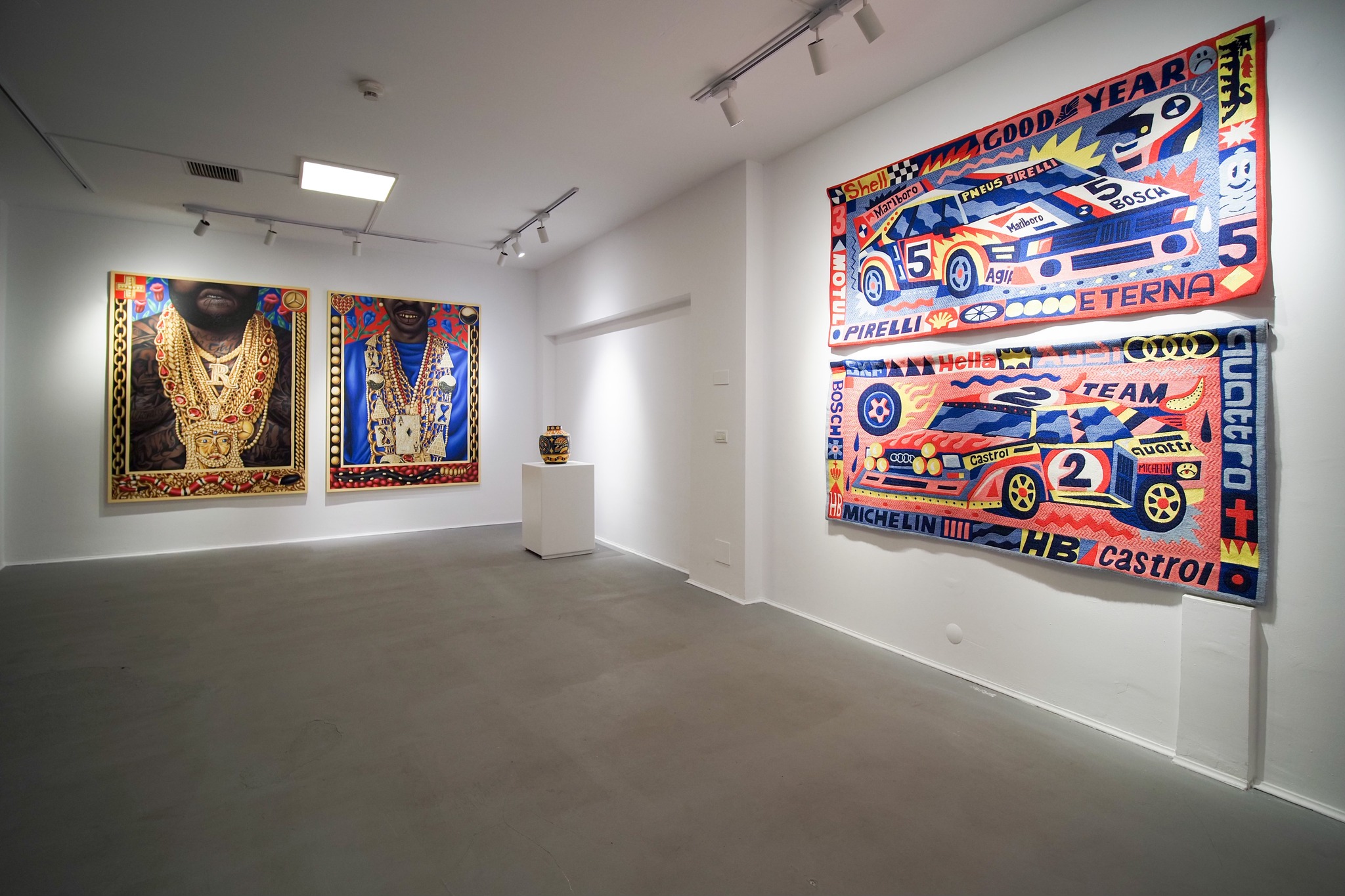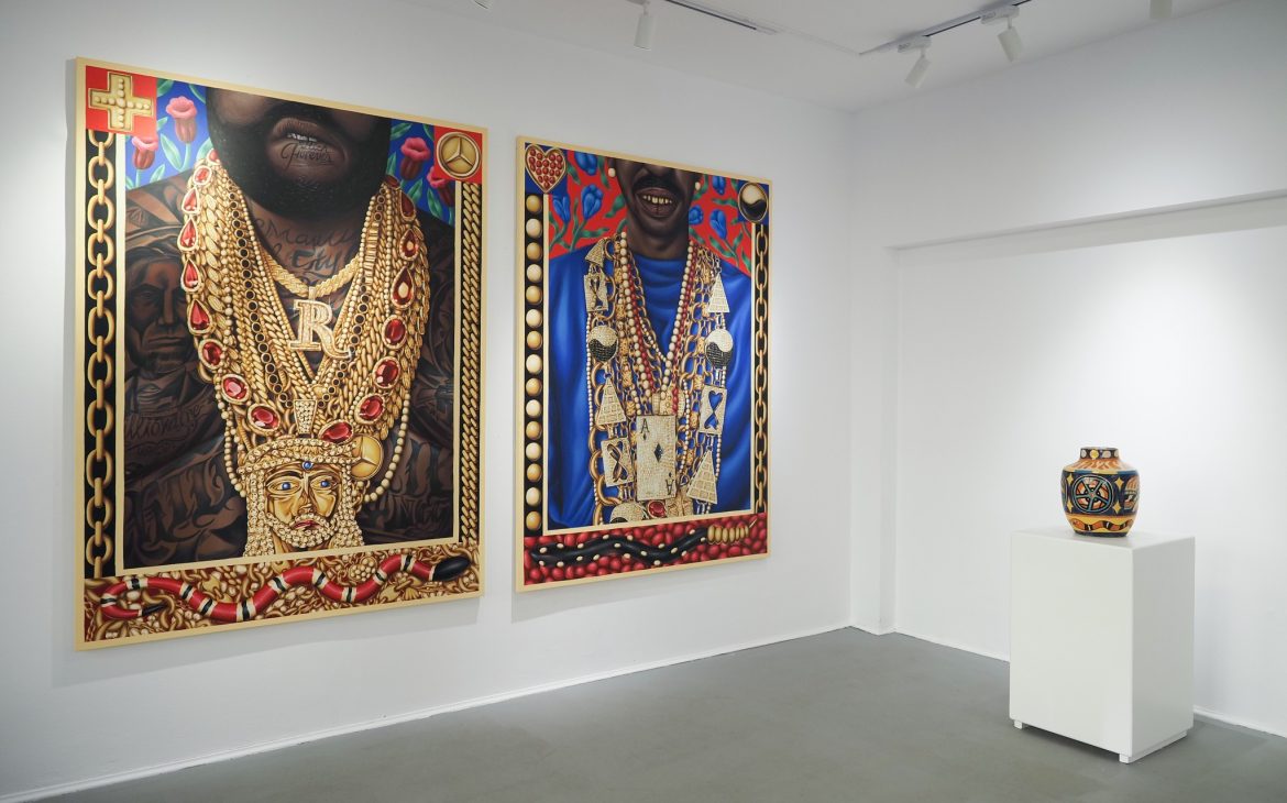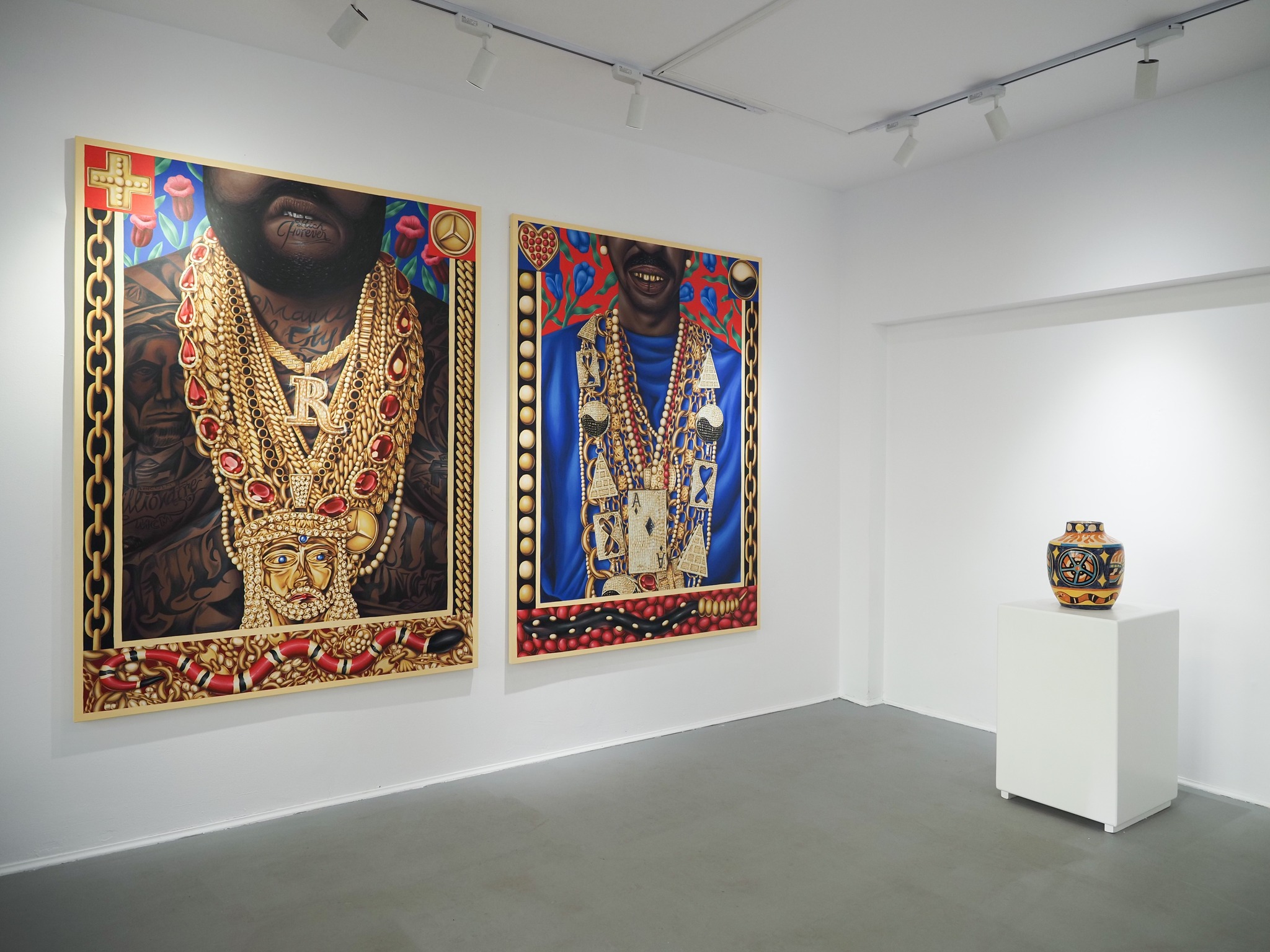 In a very POP register, Saddo not only creates pieces on this subject, but a whole ambient. It’s something he truly likes, it’s a very simple instinct at first glance, to create pieces based on subjects that simply attract you: the contradictory mix of rawness, gangsta culture, but also poetry, status assertion, social issues that lots of communities are still dealing with, criminality and opulence. The art pieces in the series have the feeling of totems or cult objects, not in a magical sense, but in a very real and heartfelt fascination for the subject. Translated in Saddo’s stylistic trademark, you can clearly see the weight of this aesthetic, of the urban glam that stays hardcore because it’s hard to fake.” (Lea Rasovszky)