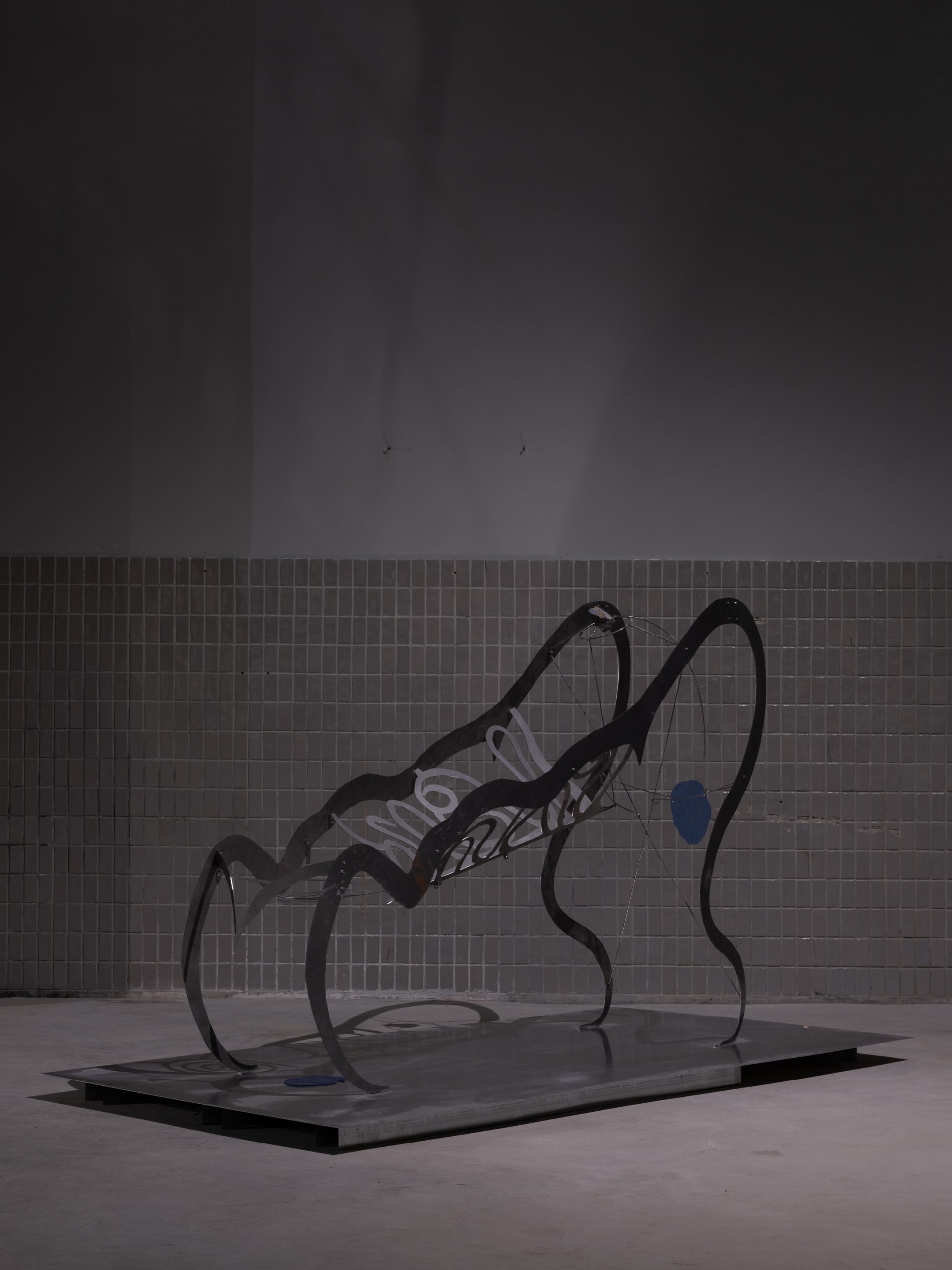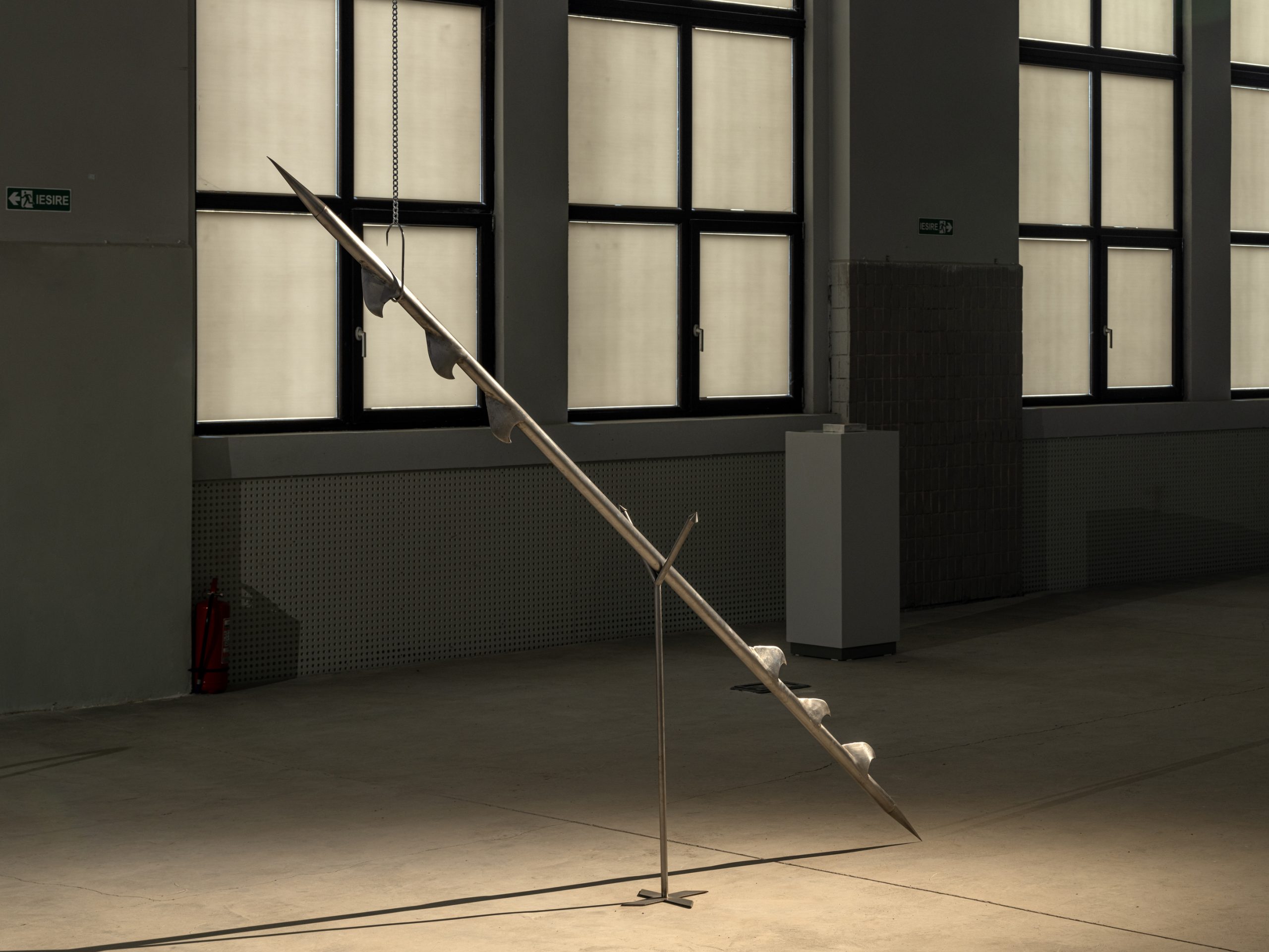 In the work of Ana Ionescu, her metal sculptures resemble objects that appear recognisable yet slightly detached from their original function. Her works expose our need to place ourselves at the centre of meaning-making, transforming egocentric perception into a productive space of multiple interpretations.