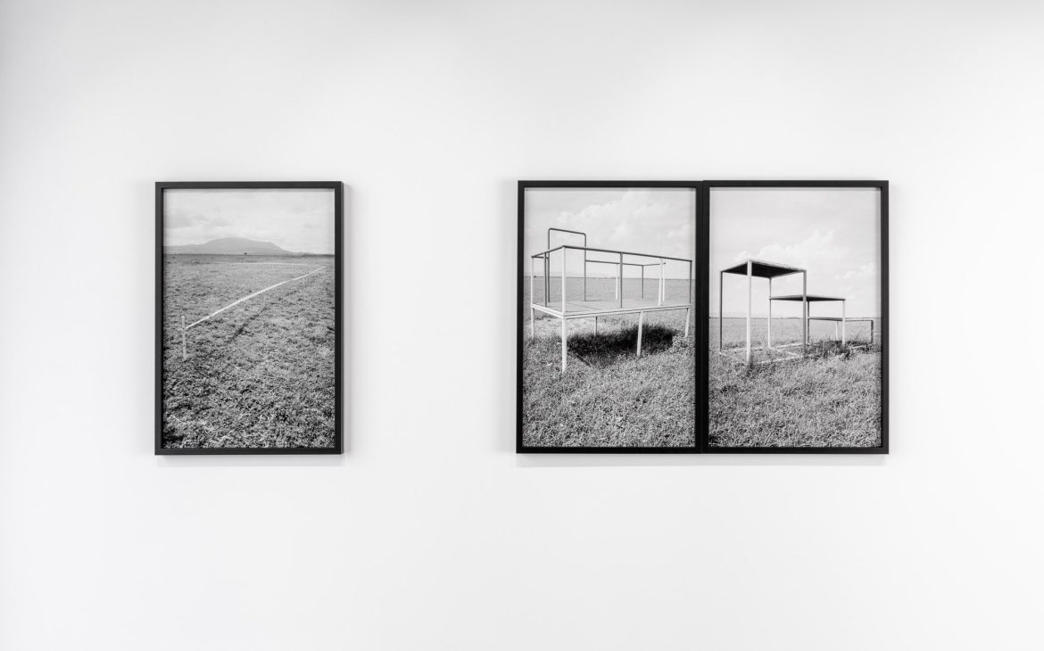 The black-and-white photographs depict the arid landscape of the first airport built in post-communist Romania, and the exhibition proposes revisiting the works in a different context to mark the end of the planning and construction period.