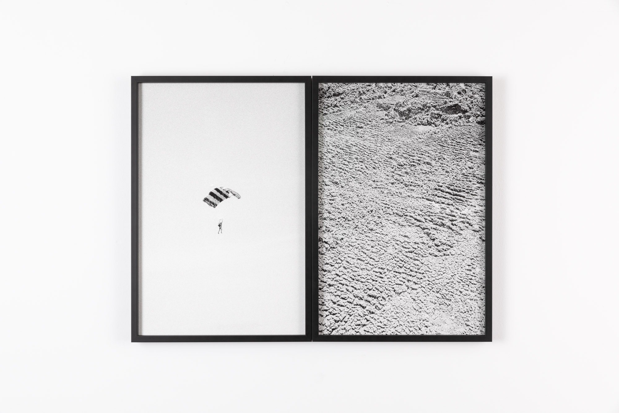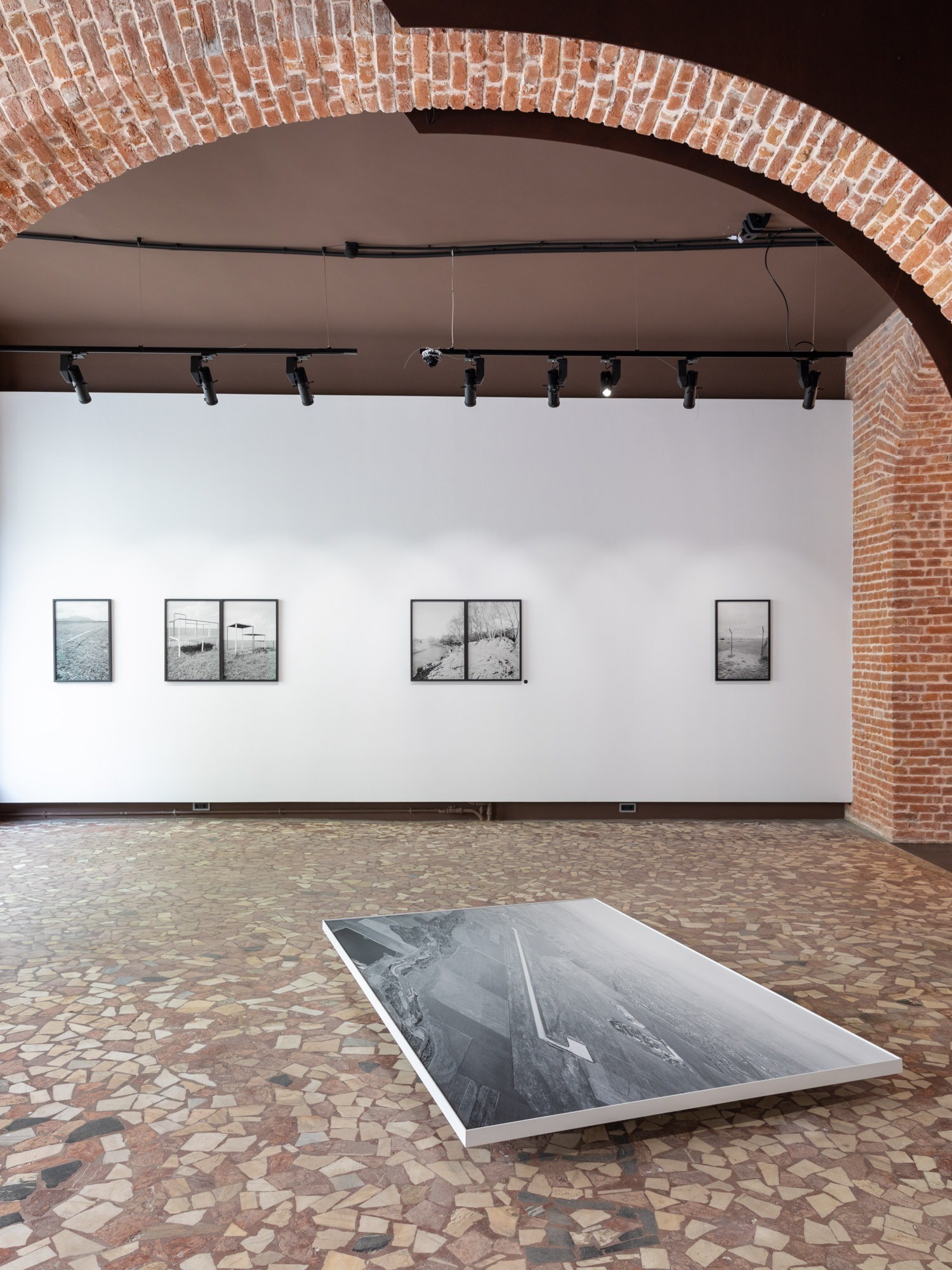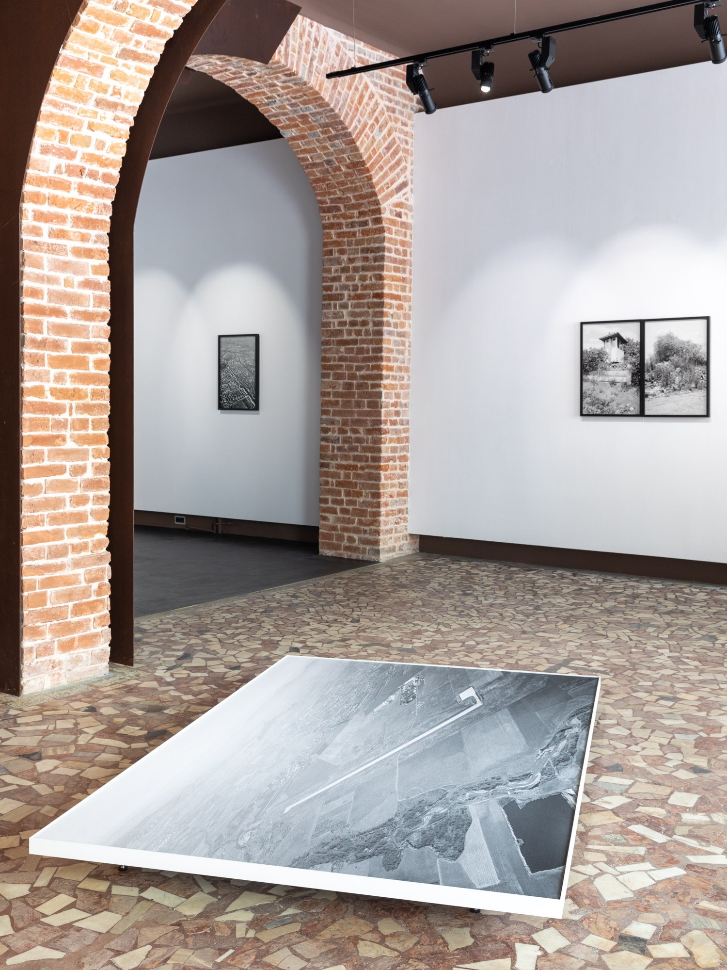 The black-and-white photographs depict the arid landscape of the first airport built in post-communist Romania, and the exhibition proposes revisiting the works in a different context to mark the end of the planning and construction period.