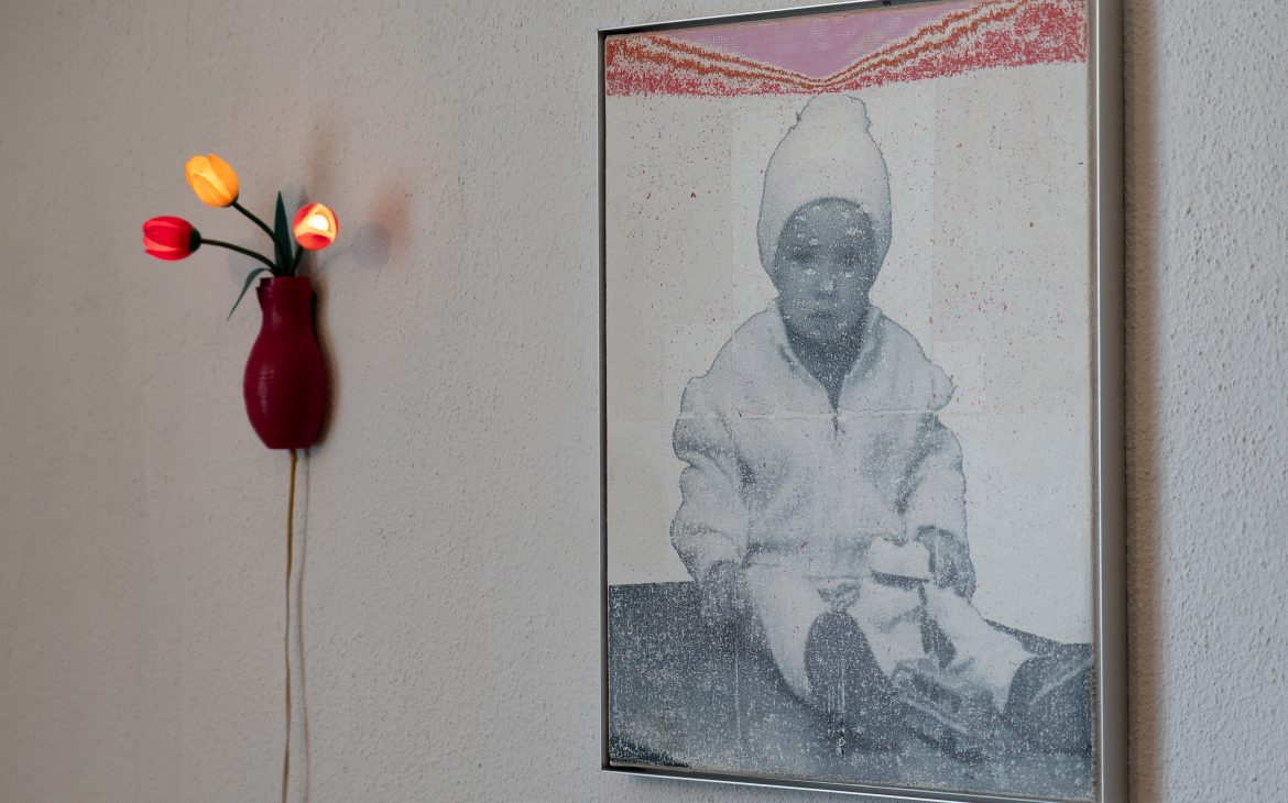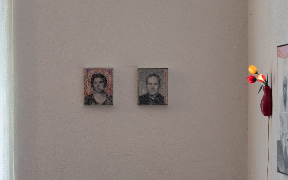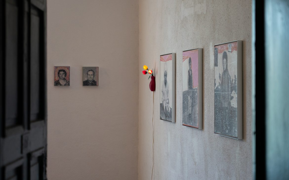 The weight of encountering the figures who have organically shaped the artist’s becoming is reinforced by the specificity of the exhibition space, which he chooses to treat as a domestic setting for intimate encounters. An installation of old lamps subtly animates the portraits, their yellow light gently amplifying the figures’ aura.