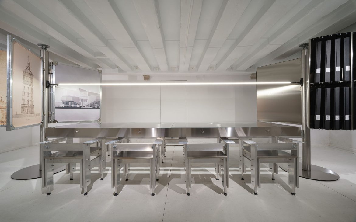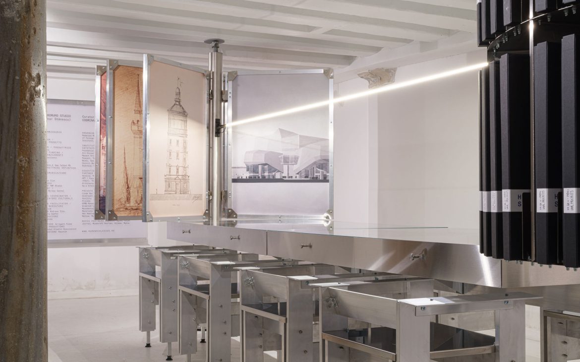 At the New Gallery of the Romanian Institute for Culture and Humanistic Research in Venice, the exhibition continues in the form of an open archive: over 300 reproductions of architectural drawings are made available to the public in a space for research and reflection. The archive is organized chronologically and offers a critical and sensitive perspective on how architecture has shaped collective life in various eras.