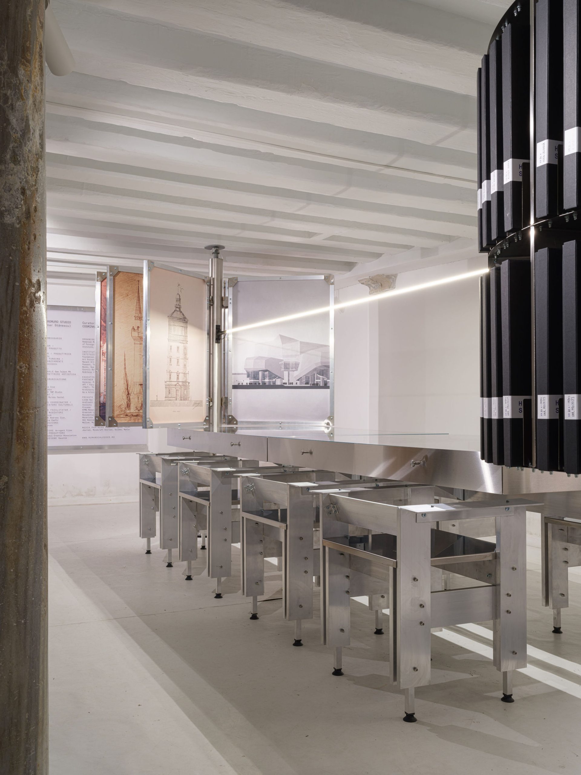At the New Gallery of the Romanian Institute for Culture and Humanistic Research in Venice, the exhibition continues in the form of an open archive: over 300 reproductions of architectural drawings are made available to the public in a space for research and reflection. The archive is organized chronologically and offers a critical and sensitive perspective on how architecture has shaped collective life in various eras.