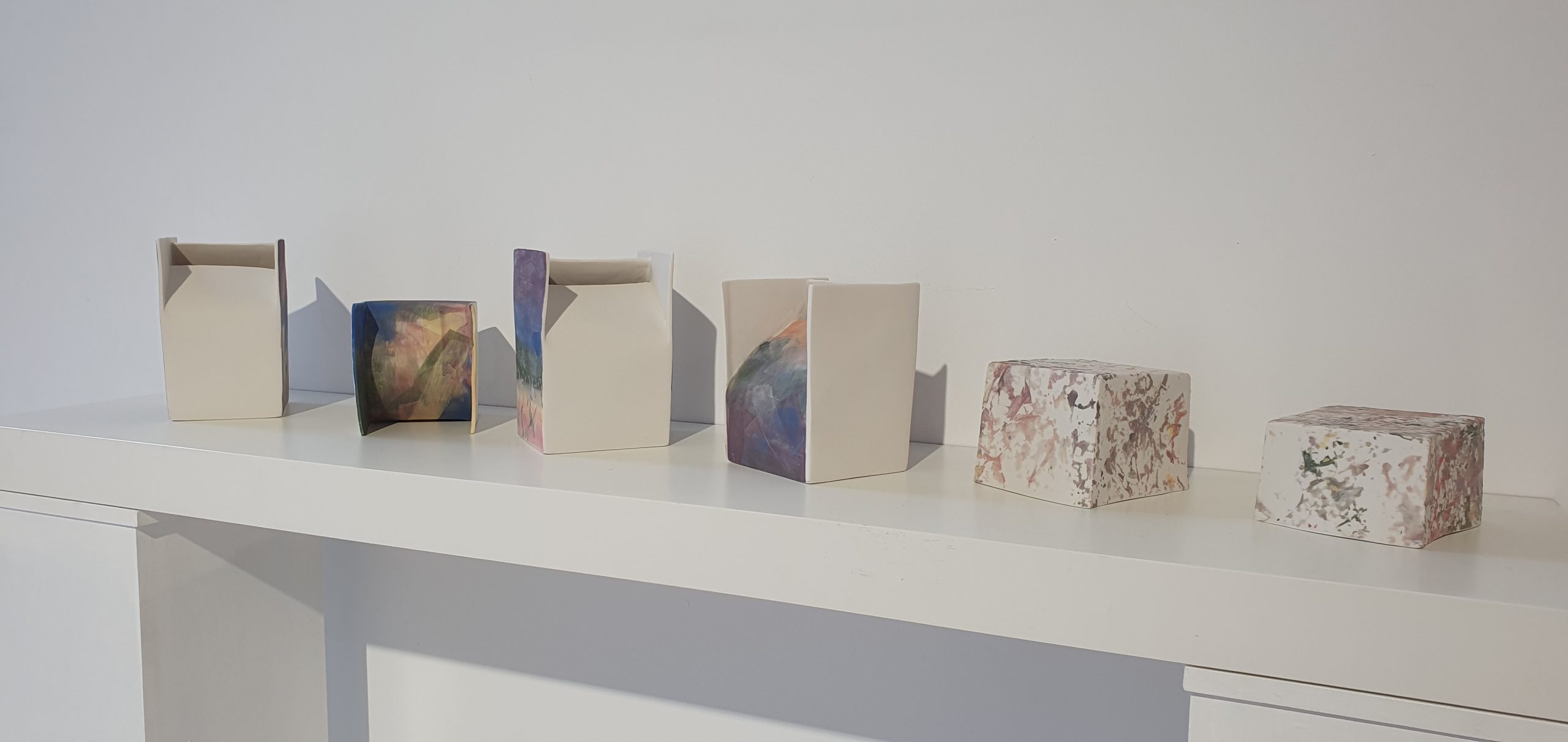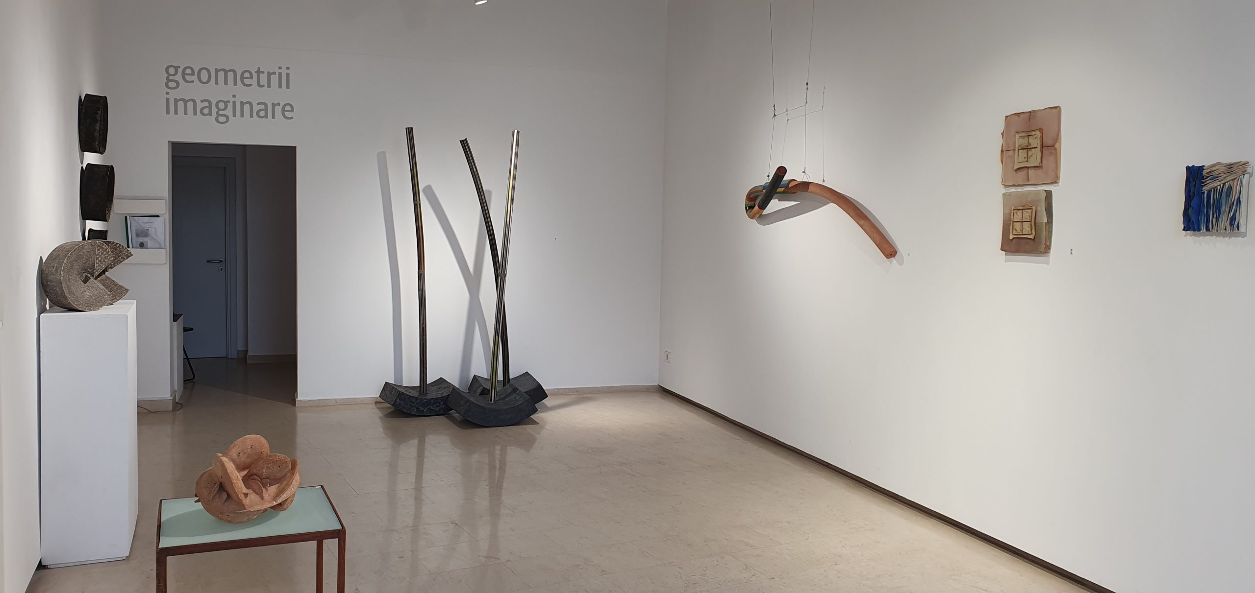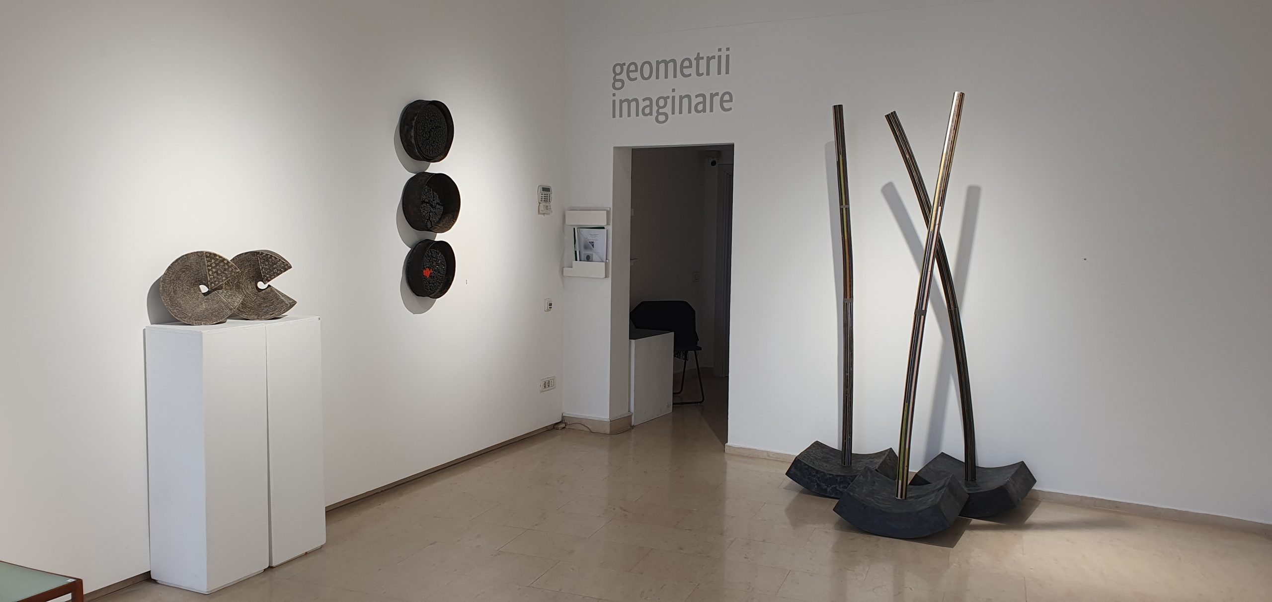 The exhibition explores the affinity of geometric construction with imagination and the unexpected ways in which the artist infuses emotion into the geometric form to give, with each work, new meanings to the world. Works such as Crust (Basarab), Eclipse. Shadow I, Eclipse. Shadow II (Bonaț), Winter 1570, Wing, Ascension (Popescu Russu) and the ensemble Whispers of the Wind (Costea) point to the natural world as a source of inspiration for the productive aspect of the imaginary – inhomogeneous, uneven, as diverse as life itself. On the other hand, pieces such as Shapes in Space (J. Crăciun), Plastic Shape 04 /shape inspired by the desert rose (G. Crăciun), Trying to fix up a point in the Universe I, II (Jakobovits) or Twisted Column and Signs (Moldovan) function as geometric landmarks that structure the space architecturally around the plastic form.