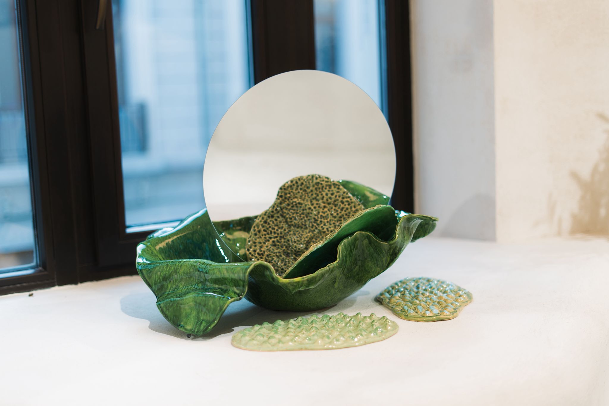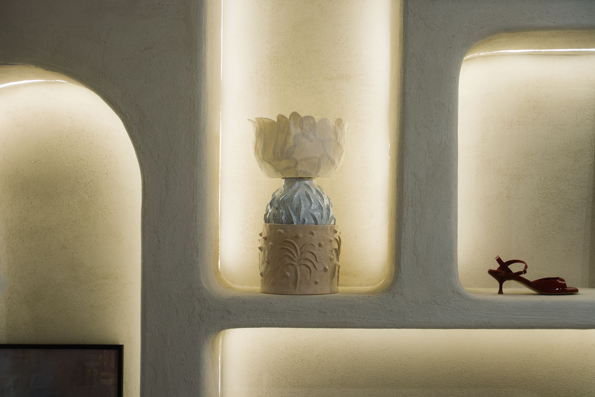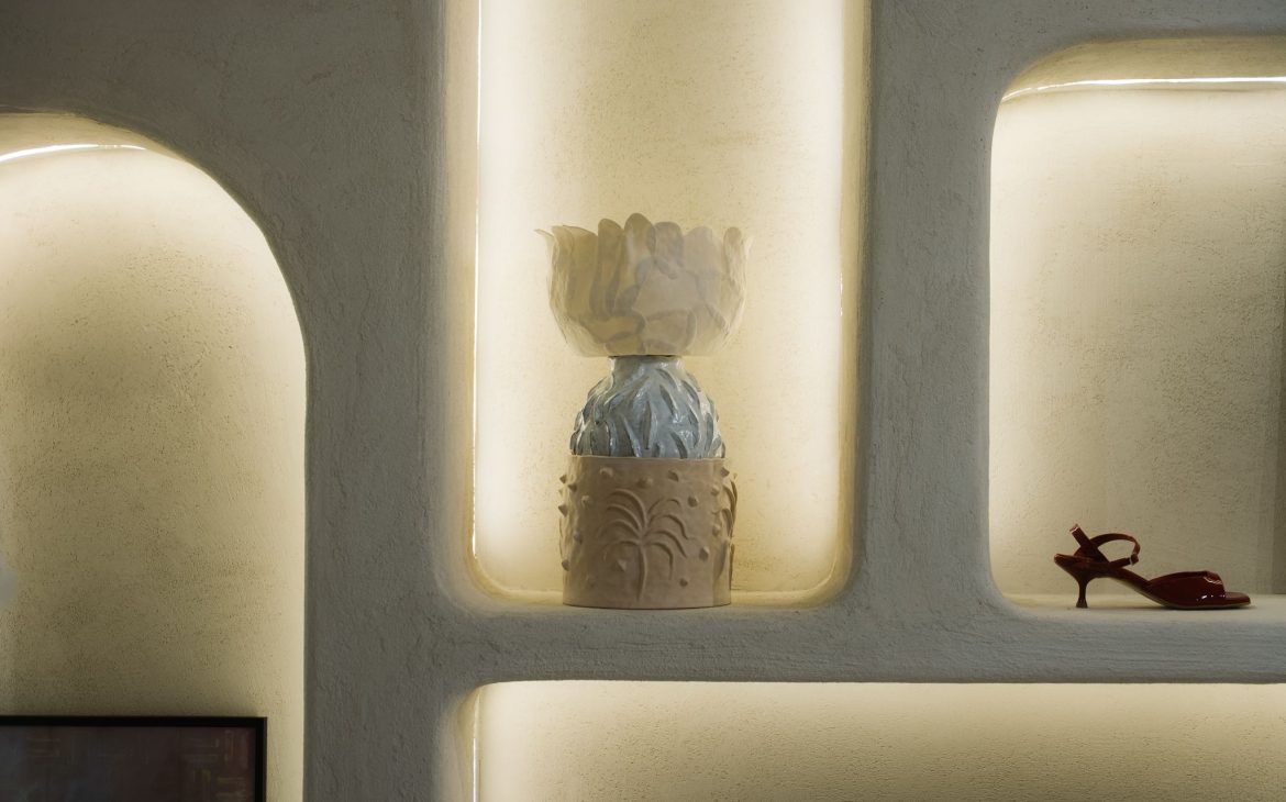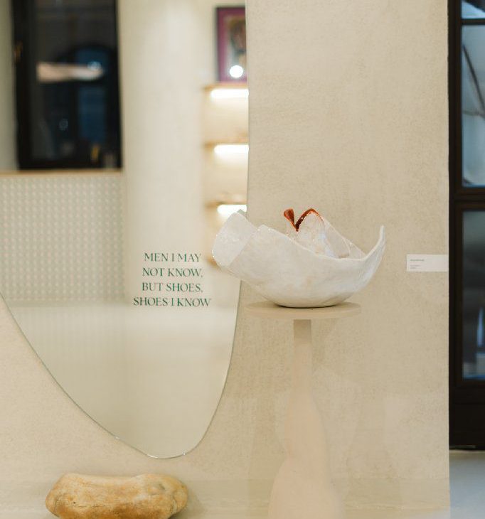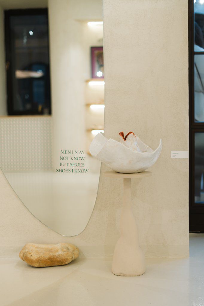 The audience was invited to admire graphic works by Rareș Bartoș, ceramic objects by VictoriaFinală and an olfactory installation created by Ana Preduș x VictoriaFinală, integrated among handcrafted shoes.
