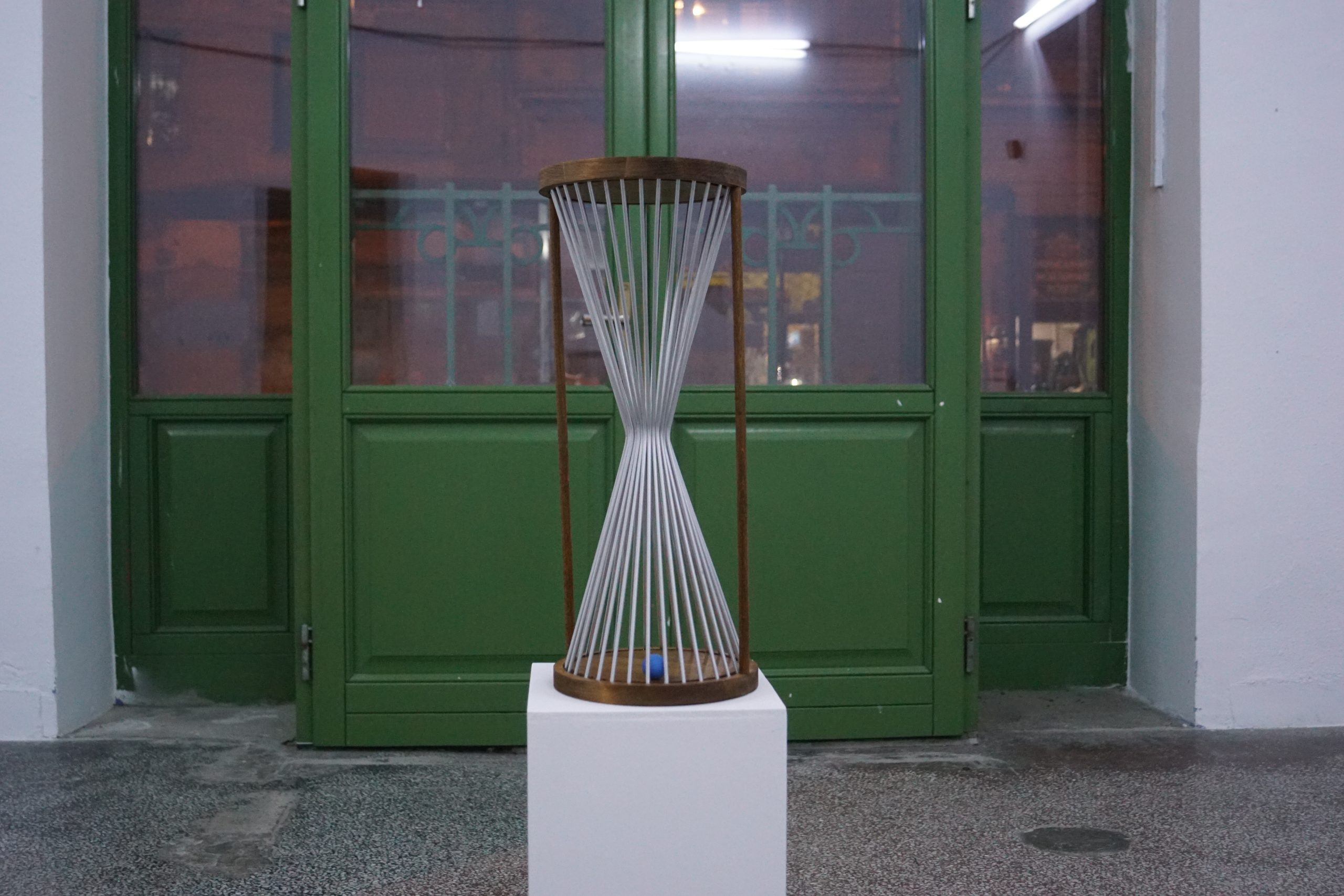 Through various perspectives, the exhibition contemplates the length of our lives and our perception of it, contrasting the Western world’s time-centric focus with more meditative approaches that invite viewers to observe different ways in which time can be perceived. Some works are self-reflective or offer ironic representations of the collective pressure we face as time might become an increasingly finite resource—for both individuals and multiple other species. Irony often emerges in explorations of “leisure” or “fun” under the guise of freedom, subtly tied to the spectacle of consumption. The illusion of enjoyment serves as a distraction, keeping us engaged in a cycle that sustains a consumption-driven culture while we unknowingly carry the burden of perpetuating it. lexandra Mocans practice ranges across various mediums, each chosen to best explore the subject at hand. She is particularly interested in manipulating perception and examining subjects/concepts through their opposites. Often employing humor, she plays with aesthetics and functionality to invent new and impossible roles for ordinary objects. Usually, there can be found in her practice objects which perform, or a performative characteristic is applied to her works, either theres some interaction required, or she is the protagonist of her works. Many of her works challenge viewers’ expectations, prompting reflection on automatic behaviors and inherited beliefs, creating scenarios where dysfunctionality and irony converge.