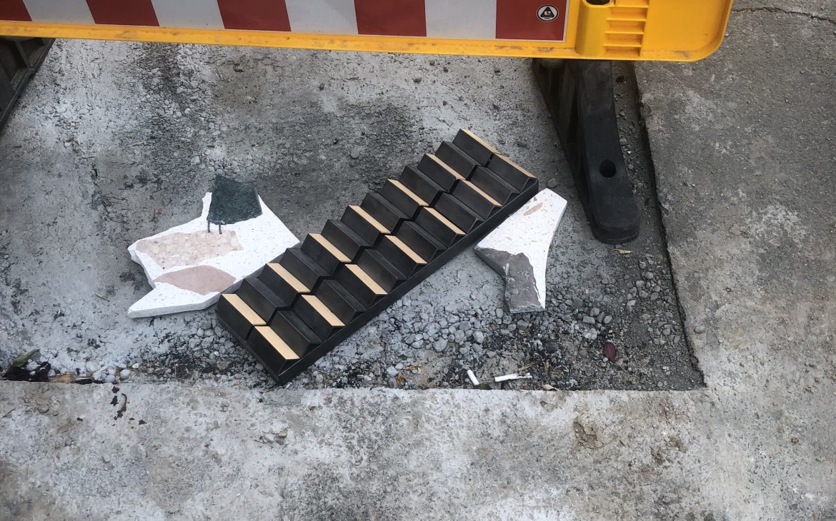 “Lose a step” is a collaborative project initiated by two artists selected within the Accelerator, Delia A. Prodan and Andrei Arion, which treats areas in Bucharest where road repairs are taking place by installing shoe cleaning grids, produced by the two artists, a symbol of the high level of discomfort in a Bucharest perpetually pressed by road repairs, which take place simultaneously and which prevent rapid movement and connection.