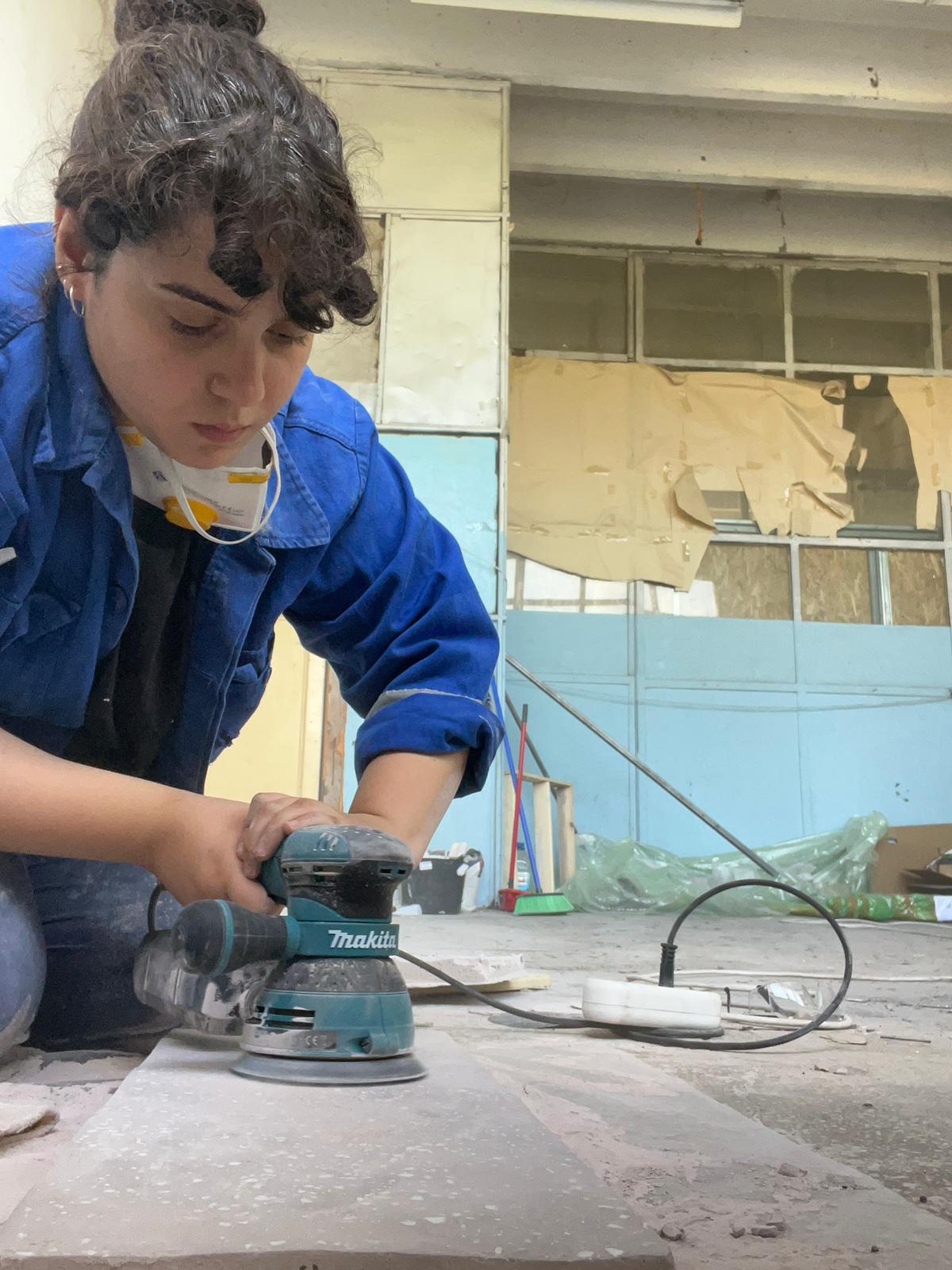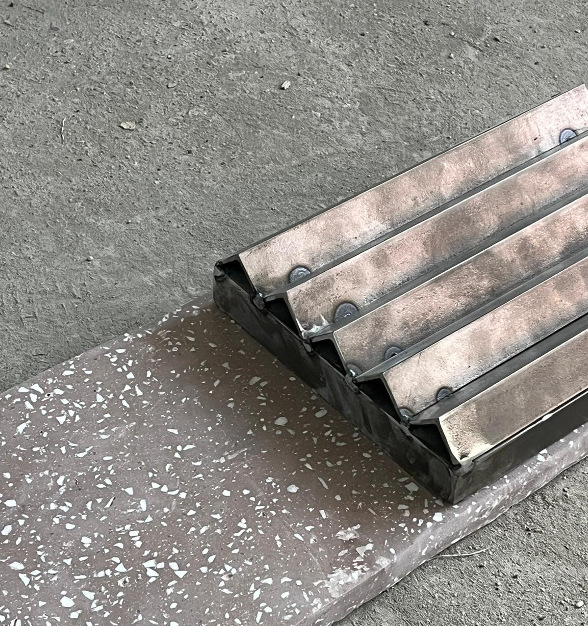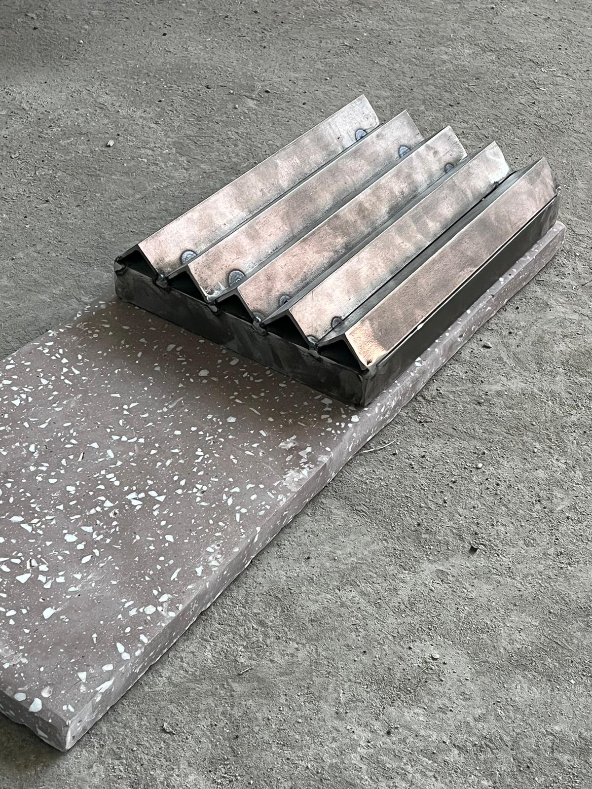 The artists Delia A. Prodan and Andrei Arion intervene with art objects such as shoe-cleaning grids made of metal and terrazzo, which symbolize the impact of the cities’ precarious infrastructures on the inhabitants.