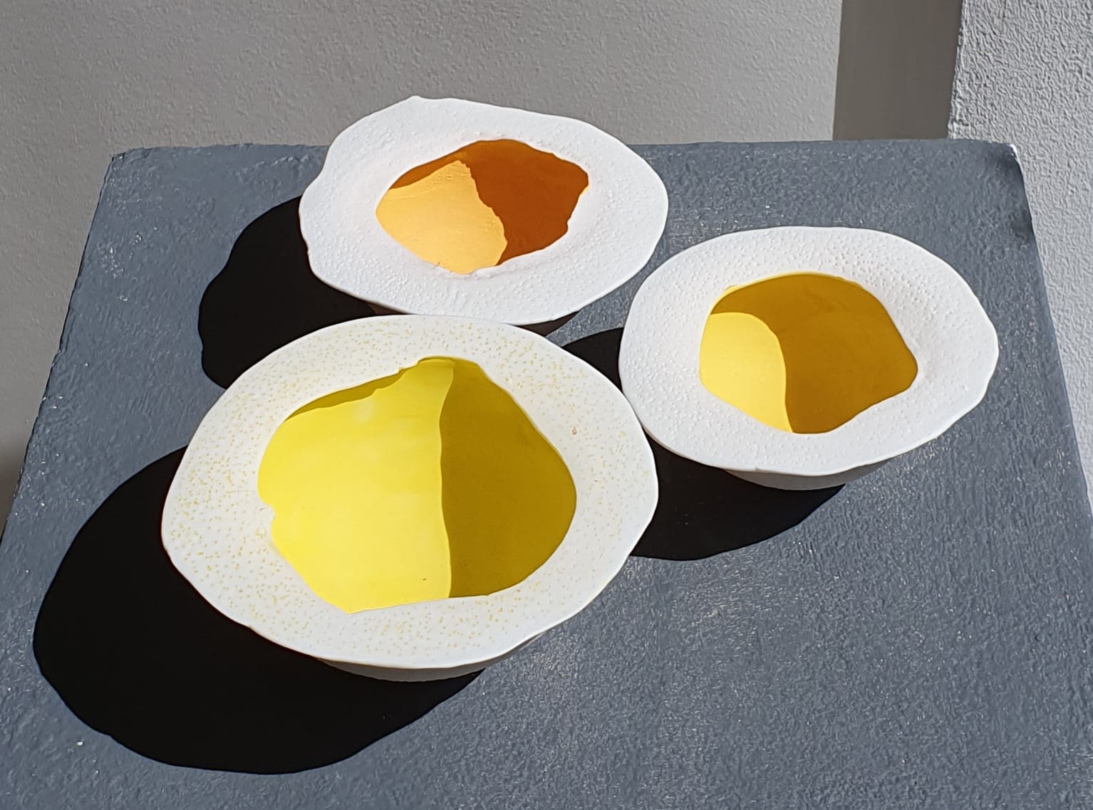 RED / ORANGE, colours charged with meanings, is identified with the new life, with sunrise and heat. These exceptional porcelain pieces suggest life and death, light and dark, joy and sorrow. Let’s first admire them and further reflect upon!”
