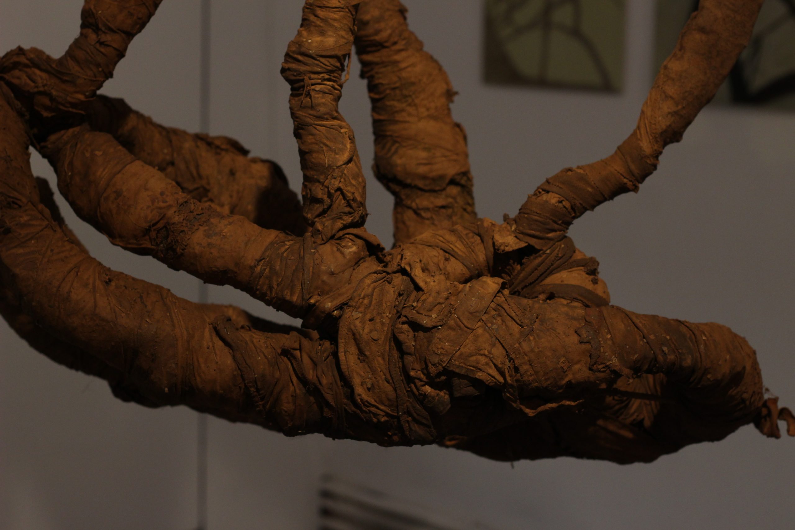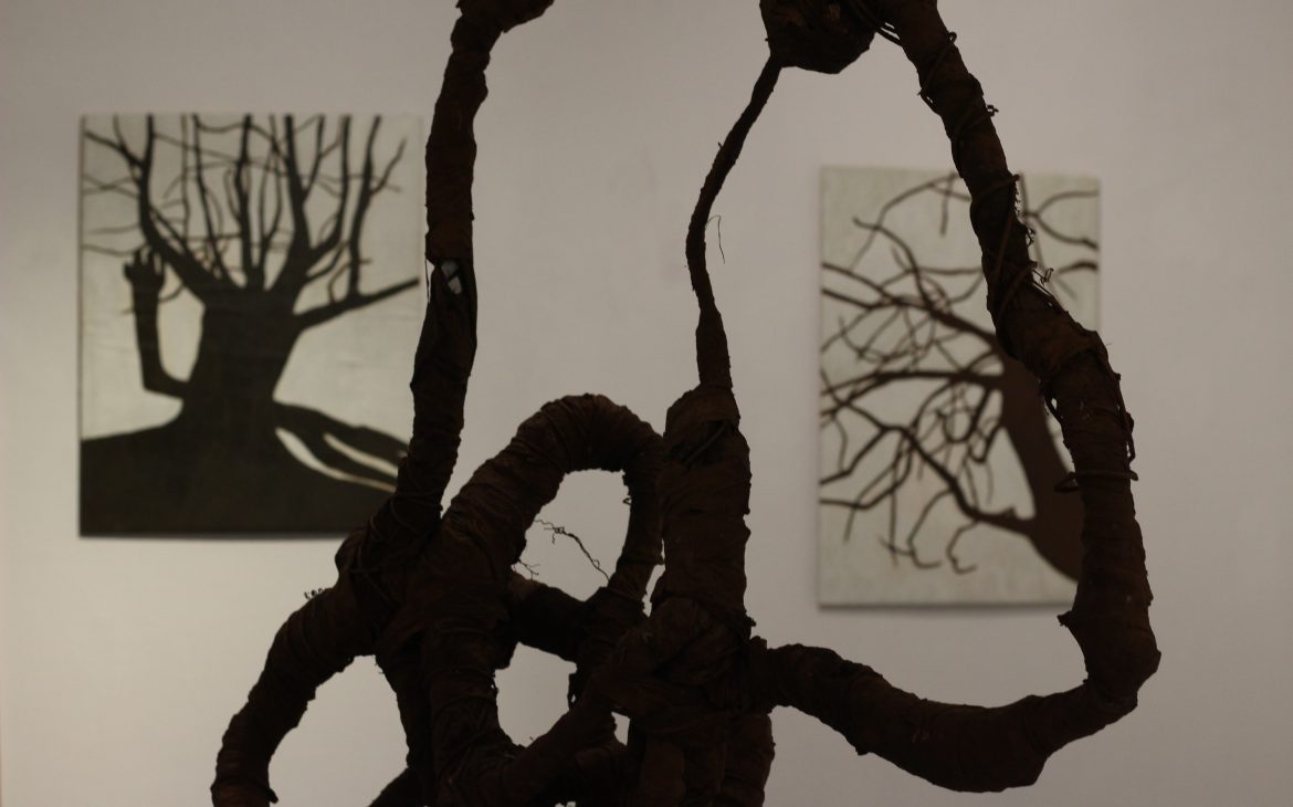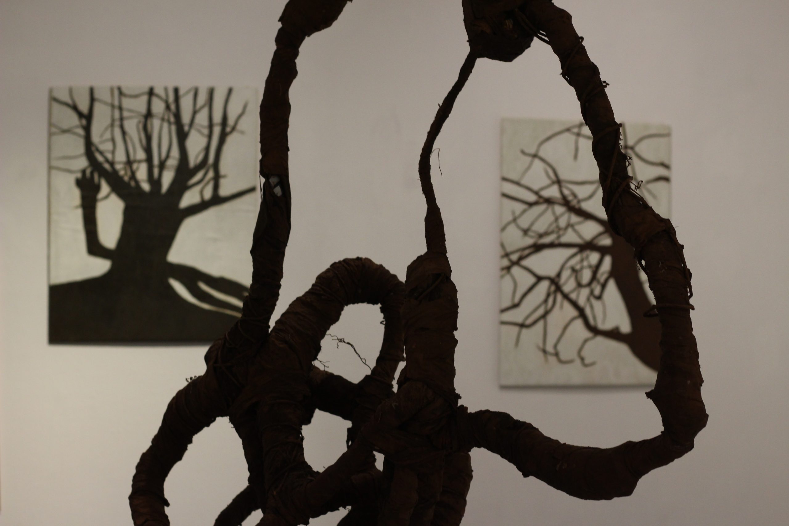 Through their imposing presence, these trees stand as witnesses of time and symbols of continuity. Their translation into painting and drawing reflects a process of careful observation, a dialogue between the rhythms of the forest and the inner rhythm of creation. The portraits of the beeches fragment and simplify chromatically, turning into tense frames between light and shadow—mirroring the way the gaze captures fleeting details in nature. The suspended sculptures complete the ensemble with organic shapes resembling branches that seem to twist endlessly. Nature becomes an extension of personal experience.