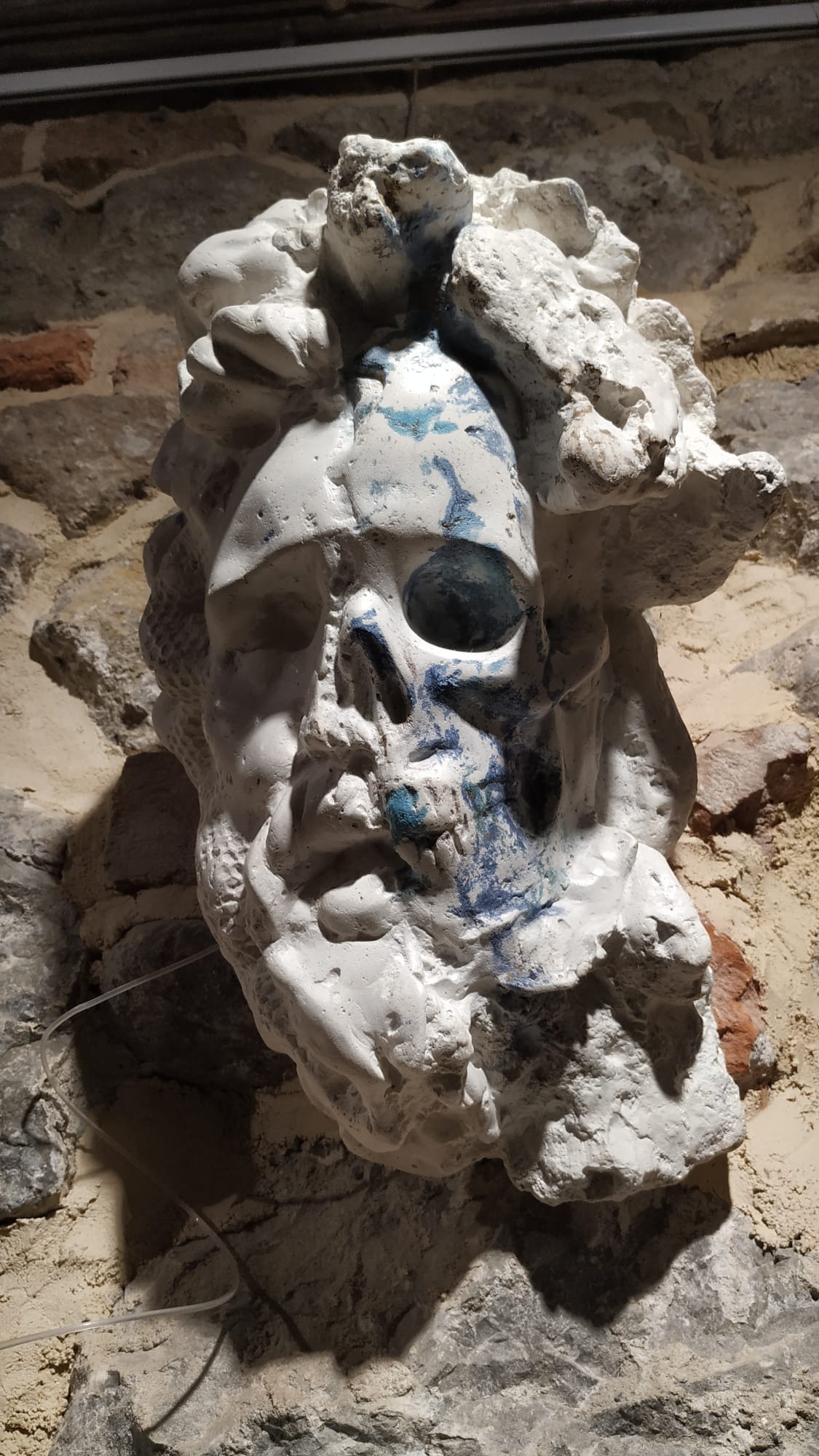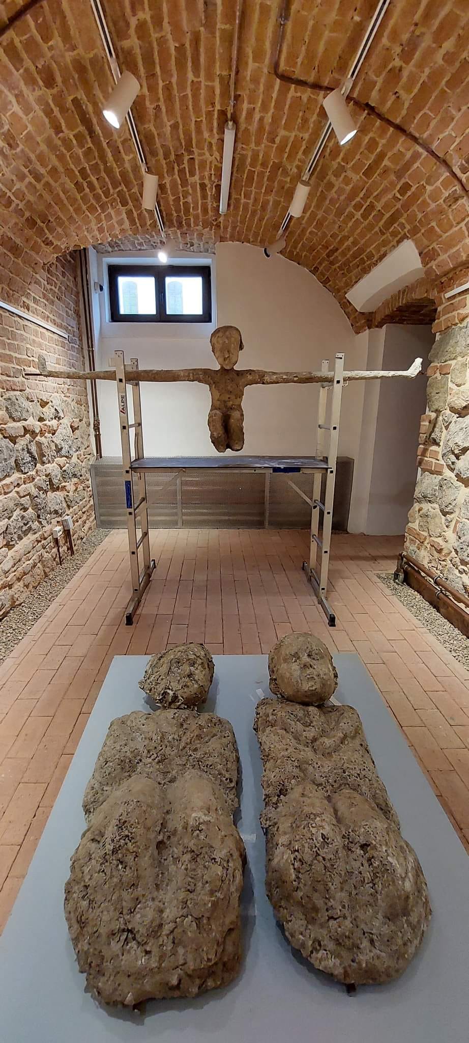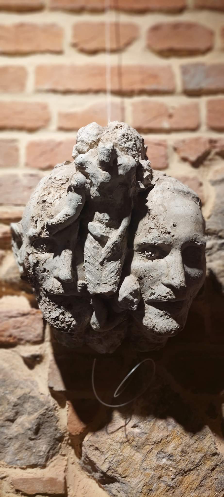 The “pit” is not a tomb, as, instinctively, the sculptor tries to remove us from too close proximity to the “Pit”, but the maximum desire intertwined and inseparable from meaning. It is good to be on the alert, when we look at his works, that what we see and contemplate is only the reflection of the flames on the wall of the cave and not the fire itself. It constantly conceals and succeeds, and it seems that it puts all your information on the tray and gives you the feeling that you have the ground under your feet, and pulls the mat when you are more comfortable. How else to understand that from the “Pit” generating portraits are born from time to time trees? There is a hidden flavor in the play of the demiurge with the cloak of the magician. Directing is part of his creative arsenal. Incidentally, his guest in this exhibition, Ramona Guran is an intimate part of this own game. It is not the reference to undeniable landmarks that triggers the clear thought regarding his effort, nor the fleeting safety, but a certain purity of reporting, of intention, camouflaged admirably in humor and irony, but which, has not lost a second its original sharpness.” ( text written by Ana Pantea, visual artist and curator)