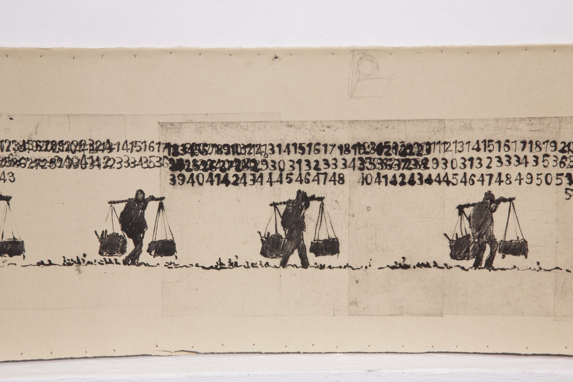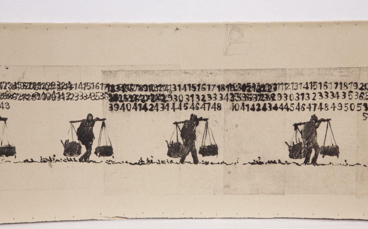 Symbolic Raluca Pavelescu identifies the human being in a series of common actions as such: a character who carries two heavy objects nearby a line of numbers ( the hidden meaning is referring to the number of days since Raluca’s father hasn’t spoken to her), perspective sequences of a space fulfilled with repetitive actions performed by humans. Utilitarian objects like the nail and the hammer turn into symbols of destruction,the sense of disappointment and hopelessness becomes oppressive.