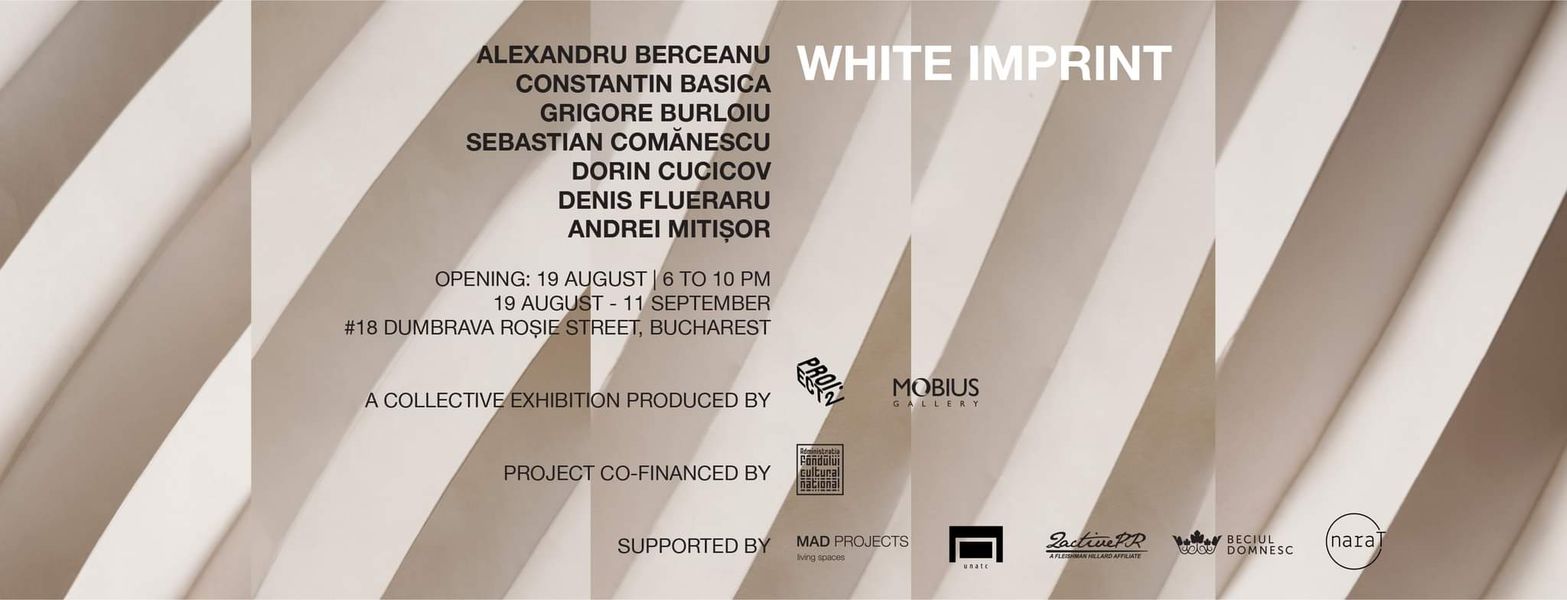 Friday, August 19th, starting at 18:00, the opening of the White Imprint exhibition takes place at the Mobius Gallery, located on Dumbrava Roșie Street, in the center of Bucharest. The exhibition event presents the result of a long process of about 10 years of co-creation and mutual inspiration by a group of seven artists: Alexandru Berceanu, Constantin Basica, Grigore Burloiu, Sebastian Comănescu, Dorin Cucicov, Denis Flueraru and Andrei Mitișor.