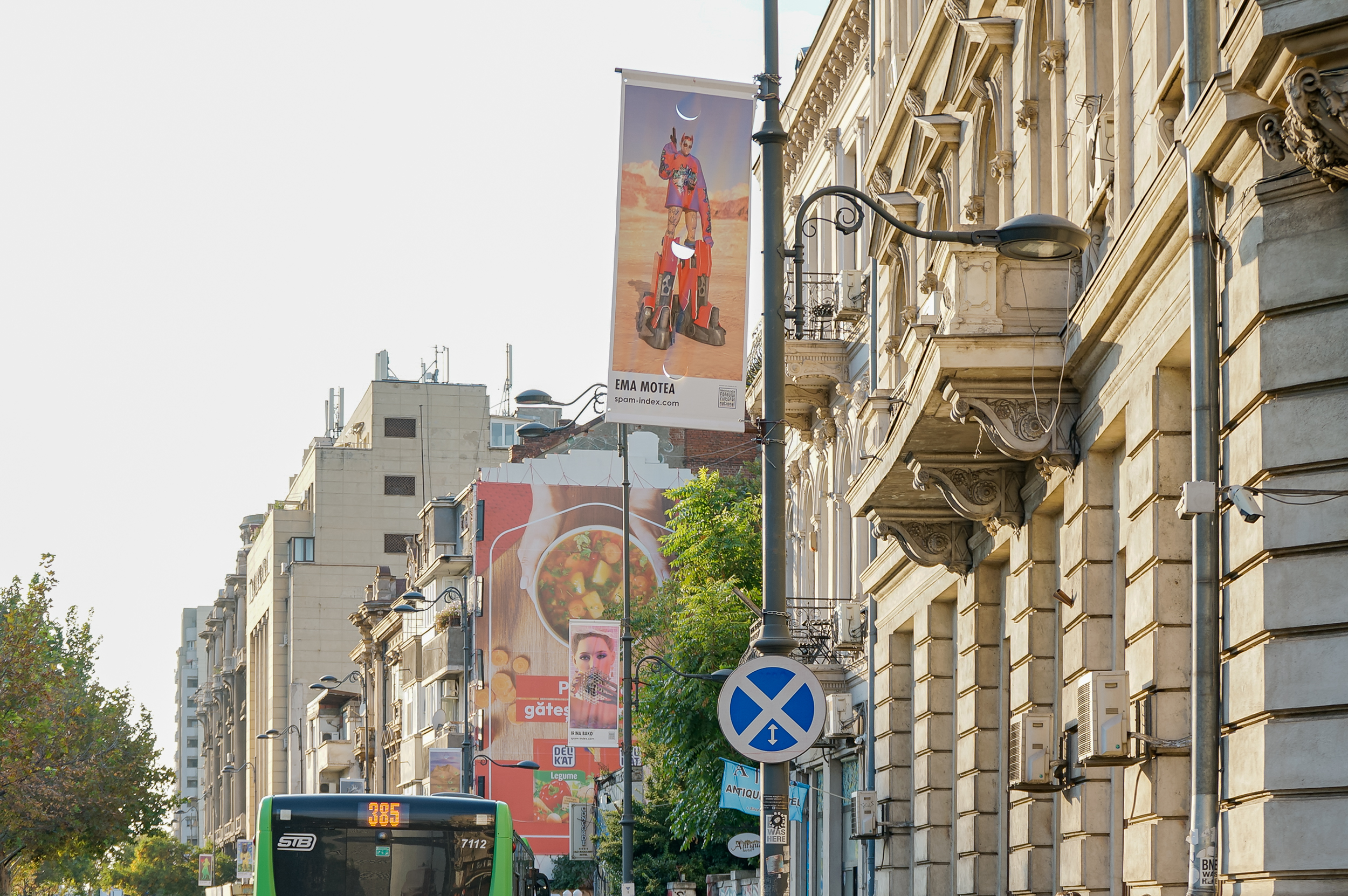 Between October 1 and 30, residents and visitors of the capital will be greeted by 21 advertising panels strategically placed around the Romană and Unirii Squares. The project Public Spam, curated by spam-index.com, is complemented by a video display on the storefront of Cocor Mall, an iconic destination in the city’s heart.
