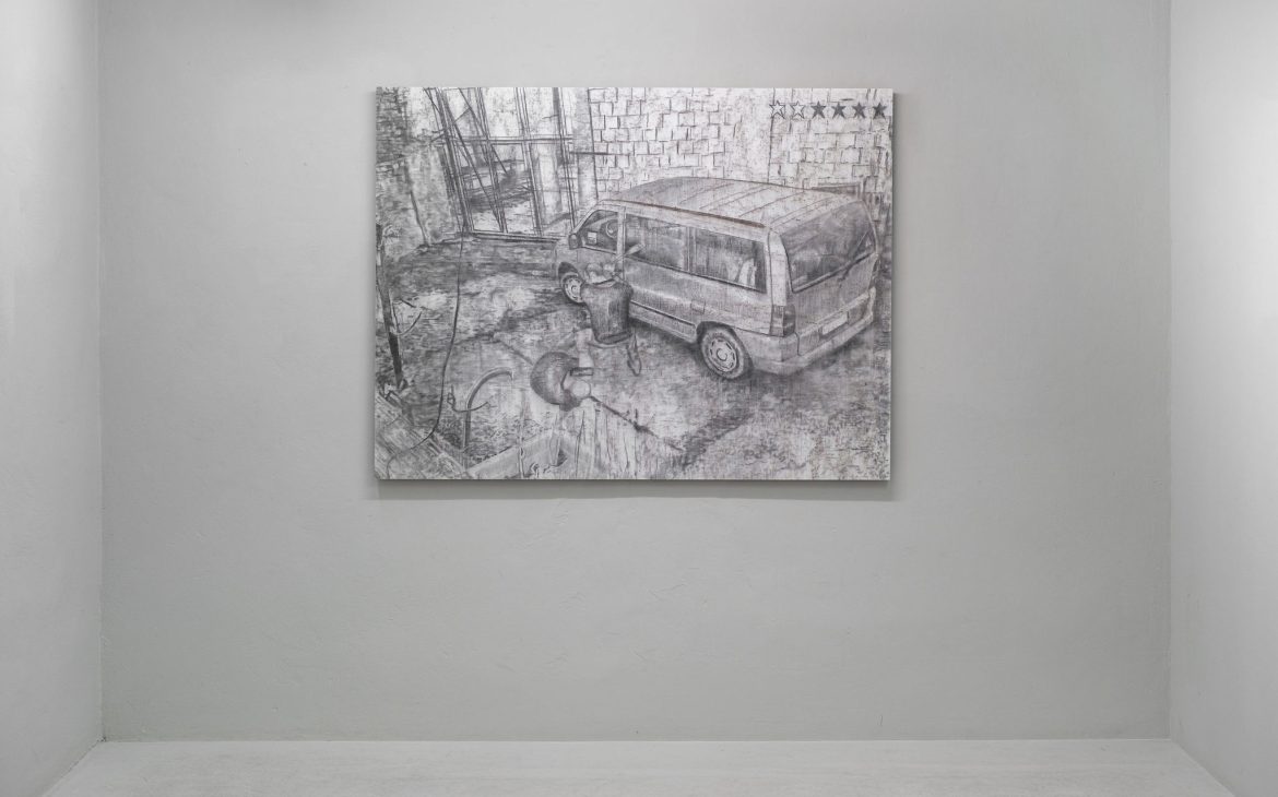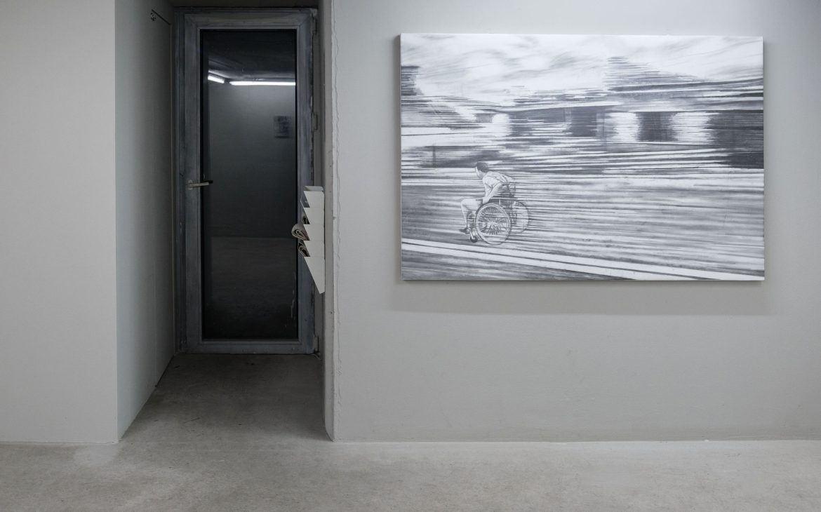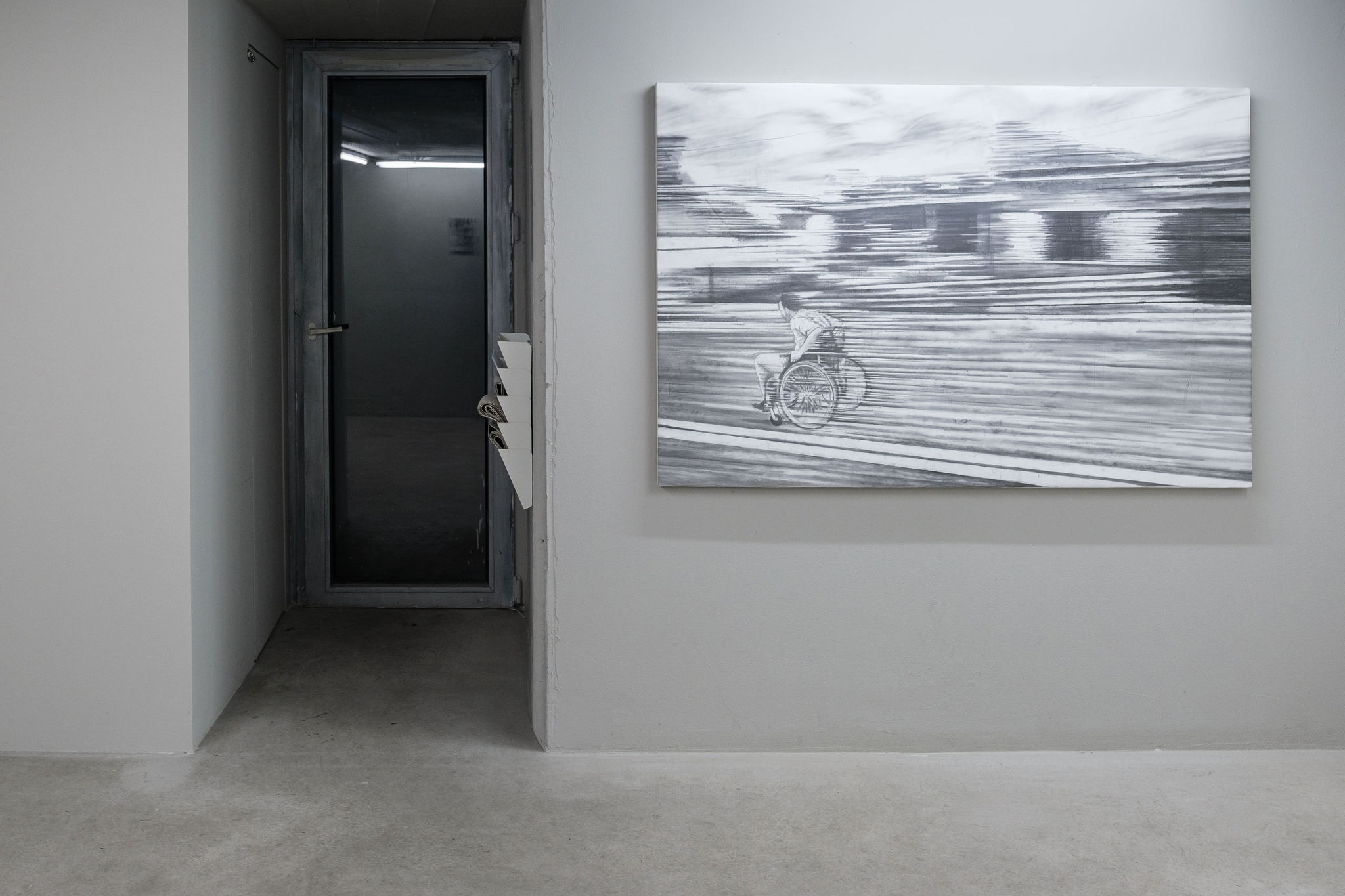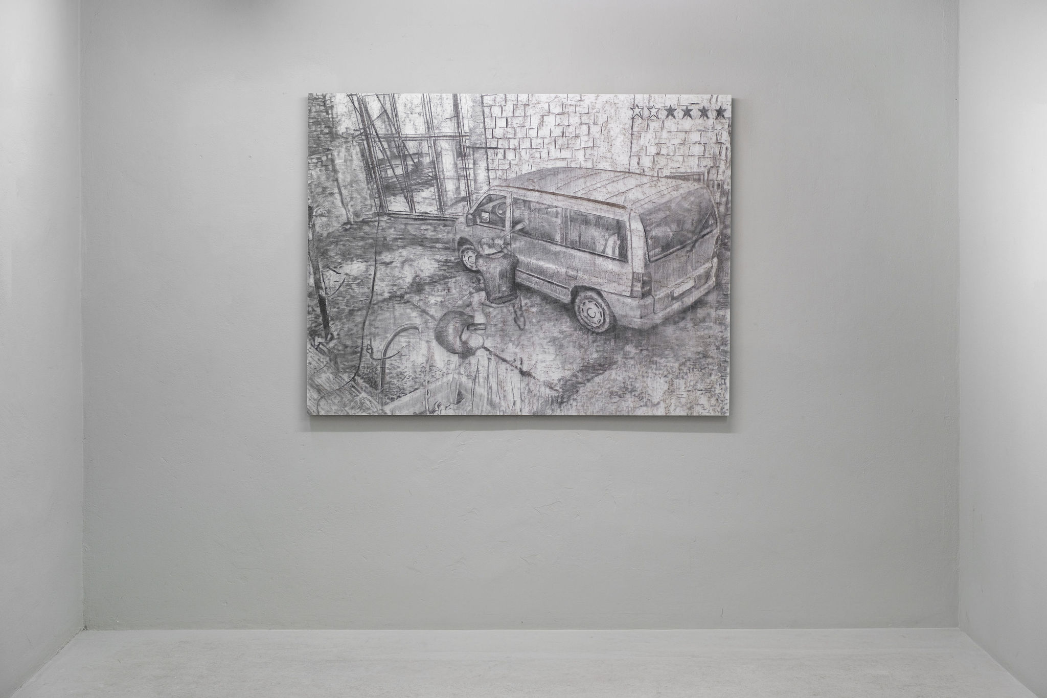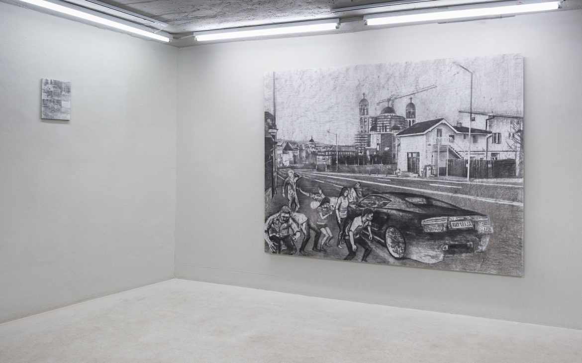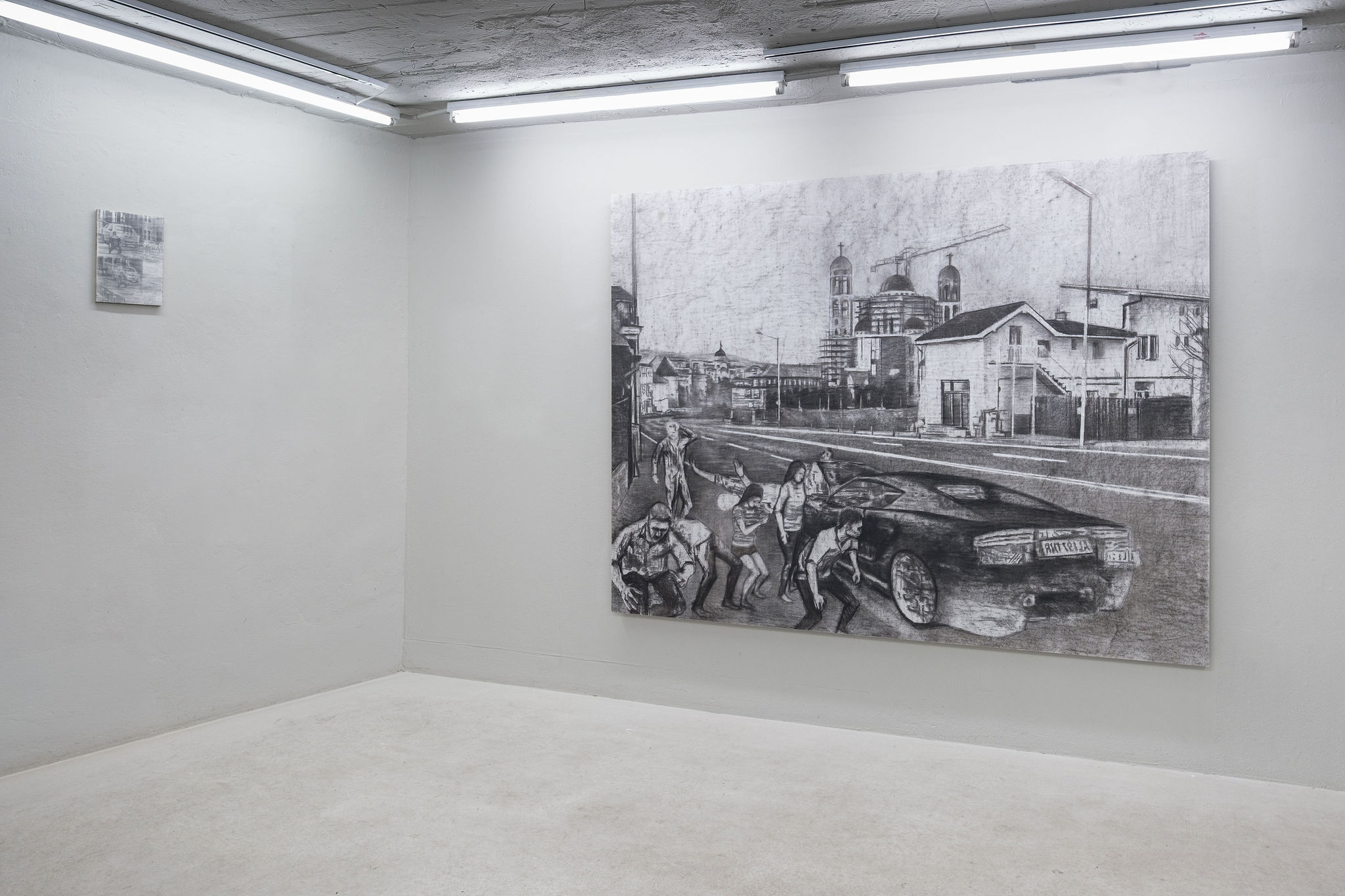 The works on view induce a diffuse state of insecurity: a street corner becomes a stage for latent conflict, and behaviors are shaped by suspicion and unpredictability. References to gaming culture play a central role in this series, offering a framework in which reality can be “navigated” like an open system governed by unstable rules. Allusions to universes such as Grand Theft Auto appear in the representation of expansive urban spaces inhabited by nearly dehumanized characters who act without clear constraints.