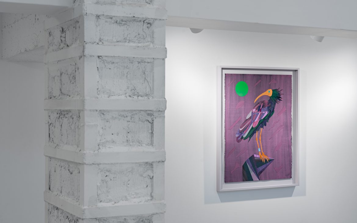 A few birds are coming your way too. There’s a group of twelve blackbirds hiding in a periwinkle bush, each an interval on a frozen clock. Then there’s an Ibis named Gypsy, violently killed in the valley of Neretva in Croatia. You’ll also find a cattle egret I encountered in a cocktail bar in Lanzarote this past February, now proudly perched on a child’s broken bike. There’s a grey parrot that prefers to make up words she doesn’t like, a pelican covered in oily black tar, and a mundane scene with a few sparrows in various nude tones—colors you might find in my makeup kit.