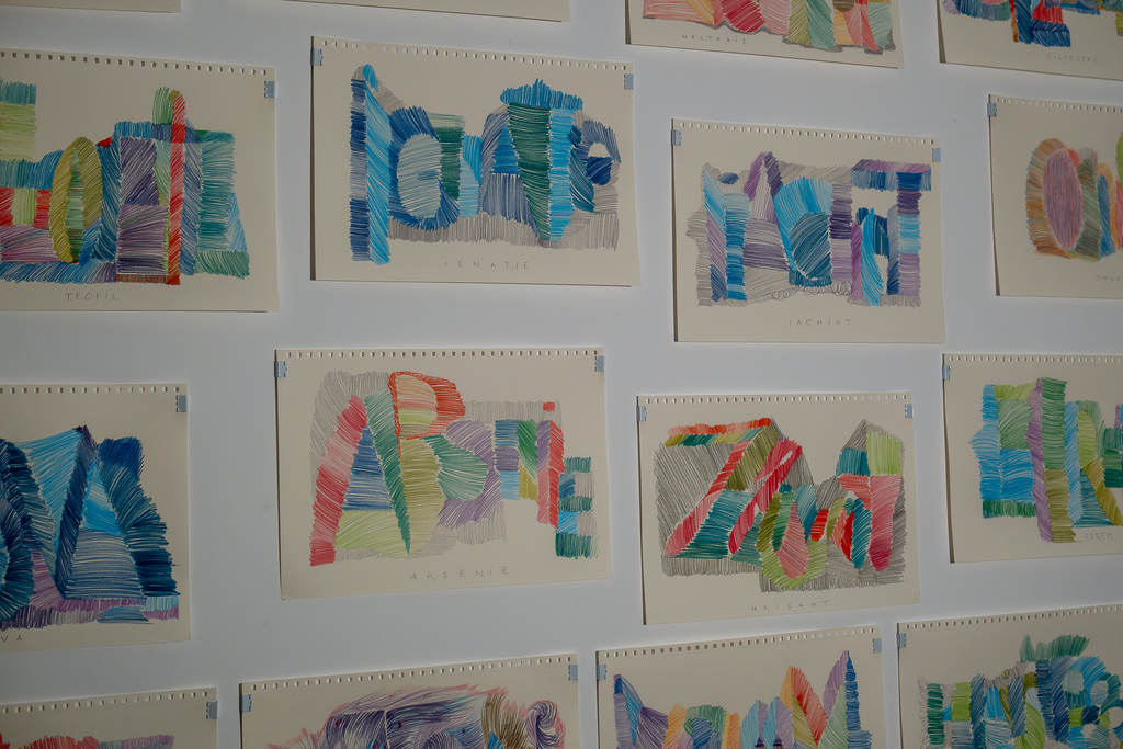 A direction opened by her latest series of drawings leads into one of the most contested, repressed, problematic, and problematized areas of contemporary art—a field that contemporary practice often approaches antagonistically, iconoclastically, subversively, and critically. Yet Silvia Trăistaru is not directly interested in deconstructing the religious, even if her own position on the subject is ambivalent, complex, progressive, and processual, shaped by long periods—older and more recent—of life and artistic experience. Her socially and trauma-sensitive conceptualism now openly invokes—as if crystallized and transformed under the weight of its new spiritual and religious thematics—empathy, gratitude, presence, universe, faith, and death. Thus, Camera 30 of Atelierele Malmaison presents graphic portraits built around names from religious cults, created through the same basic language of writing and drawing—seemingly narrative, yet in fact transformed into declarations of attachment and emblems of contemplation. Beginning with words, Trăistaru’s practice generates visual palimpsests that betray and transcribe, as if through the force of unintended effigies, overlapping analogies between recognizable and invisible experiences or images.” — Adriana Oprea