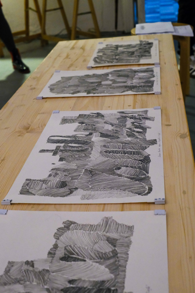 “In her recent projects, artist Silvia Trăistaru (1979) brings into play a wide range of visual and script-based tools—line, mark, trace, drawing, painting, camera, textile, installation, word, and text—to address ecological consciousness, abortion and motherhood, the body, technological embodiment and digital media, the subconscious and the supra-human. Also a professional art conservator, Trăistaru builds her images through drawing, which forms ‘the core of her artistic approach, the instrument through which she develops her visual thinking,’ and through the written word—the primary element of her latest series of works, where hatching becomes part of a broader technical repertoire. Through this, visual analogies emerge, as if in an involuntary psychic capture, revealing a universe shaped by personal experience. Drawing and words help her clarify these analogies and pathways—constructing itineraries, traces, maps, personal configurations and geographies, affective territories, and small intimate continents of the subconscious. Paper, textiles, and photography provide the material support for imprinting and problematizing memory. They uphold imagery that thematizes, both critically and emotionally (in this case synonymous), extreme human experiences—zones of crisis in the individual’s relationship with trans-personal systems (nature, corporeality and the finitude of life, the animal realm, the non-/supra-human).