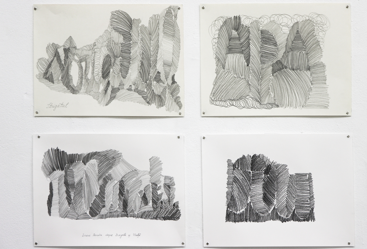 “Tender Drawings about Love and Life” is the title of a new series of works that tenderly approach issues of the mind and heart and reflect practices and approaches recently introduced in the artistic direction of Silvia Trăistaru. The results contain words or sentences with a personal meaning for the artist. Emotions or personal experiences are transposed by drawing in pencil and marker on paper. The resulting drawings have a therapeutic effect on the artist, delving into the complexity and influence of personal and transgenerational memories.