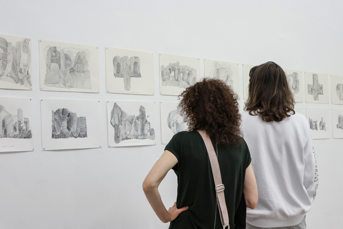 Her works have been presented in personal exhibitions, including: “History of a Day,” Room 30/ Malmaison Workshops, Bucharest, “Tender drawings about Love and Life,” E T A J artist-run space, Bucharest, “History of a Day/ History of a day during a pandemic,” National Museum of Old Maps and Books, as well as in group exhibition projects: DIACRONIA, Baia Turcesca, Iaşi, RO, curator Marian Pălie; Lockout Stereotypes – Counter Cliché, WASP, Bucharest, RO, curator Andreea Căpitănescu; “Behind The Times,” Solo Show / Alyssa Davis Gallery, New York, USA; “Social Isolation,” Rattha Gallery, Santiago, CL; CAR. – Contemporary Art Ruhr, Essen, DE; Join The Dots / Connect The Distances, Salone degli Incanti, Trieste, IT; Imago Mundi – The Art of Humanity, Treviso, IT; “Proces nescris”, part of IEEB7 – Fabricated Histories. Truth and fiction in recent history, curator Olivia Nitis, Institute of Art History, Bucharest; Doina, MNAC Annex, Bucharest, RO; Body World II, Victoria Art Center, Bucharest, RO; The new figurative, Victoria Art Center, Bucharest, RO; Your Name in Lights, John Baldessari, The Holland Festival and The Stedelijk Museum, NL; Nord Art – Kunst in der Carlshutte, DE; Mobilehome, Lagar das Portas do Ceu, Loule, PT, curator Nuno Faria.