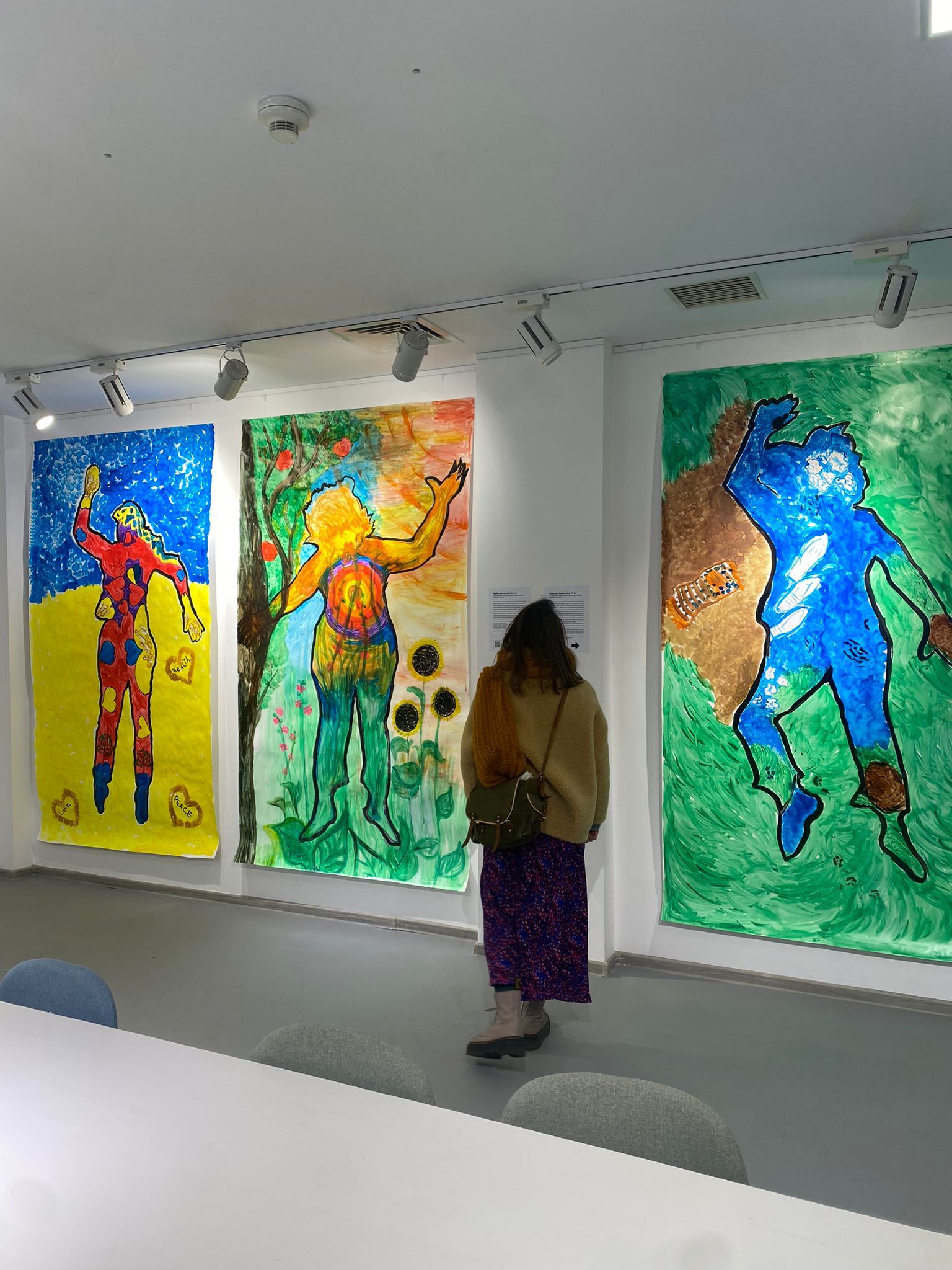 “My Land” constituted an integral activity within the project, a creative exploration employing techniques and methods inspired by expressive therapy under the coordination of Mihaela Olimpia Ruscior and Raluca Minoiu. Within the framework of the project, 11 women from the Ukrainian refugee community created painted panels depicting their realms and maps of their bodies, not solely physical, but also mental and emotional. These mappings of thoughts, feelings, and histories were crafted by the 11 women around the experience of war and the profound changes it brought to their lives. Their exercise in expression and redefining of new personal boundaries was realized through the amalgamation of sounds, movements, colors, textures, and words.