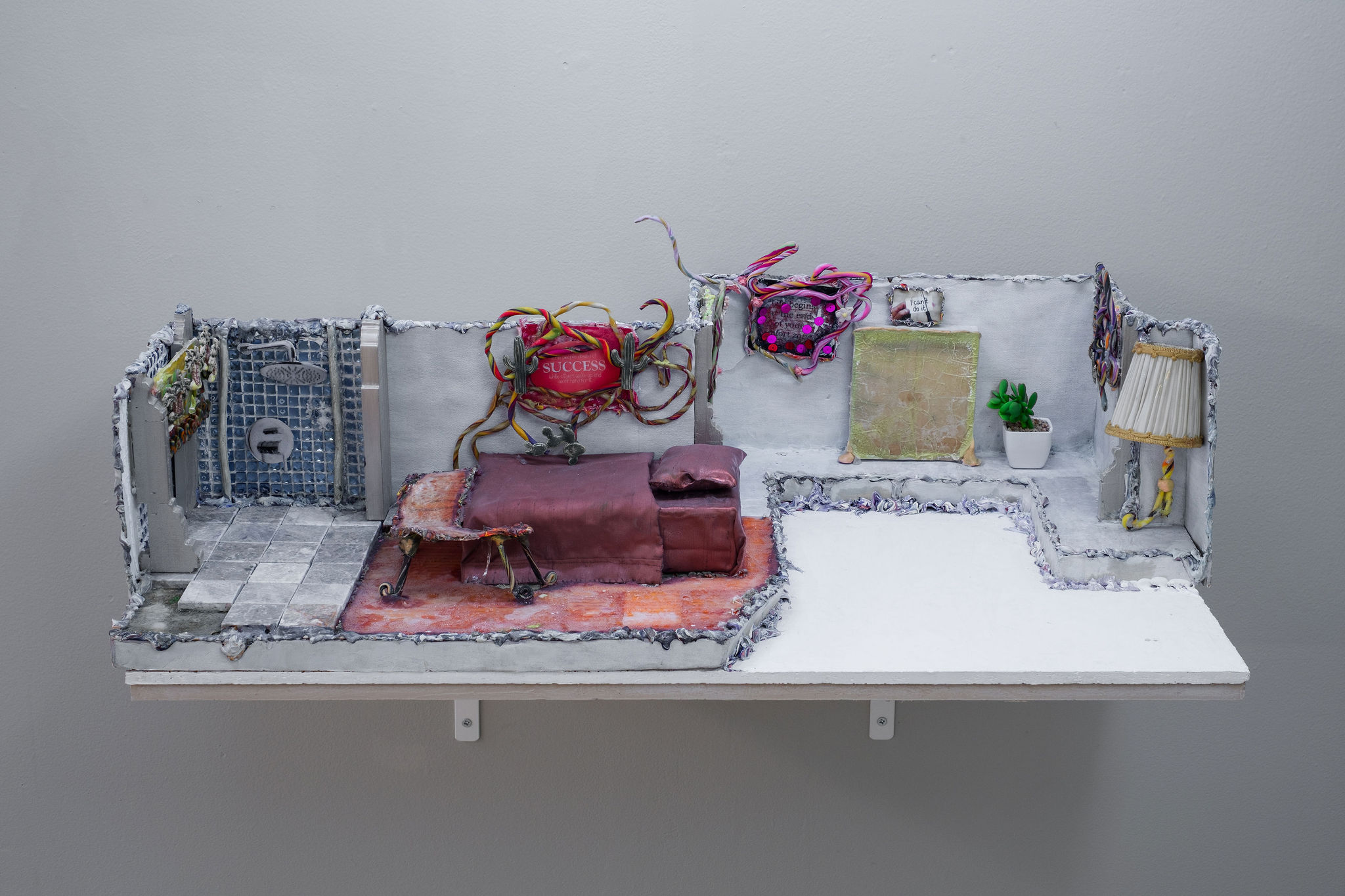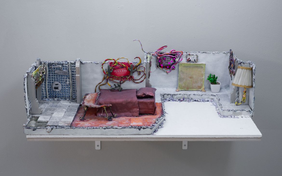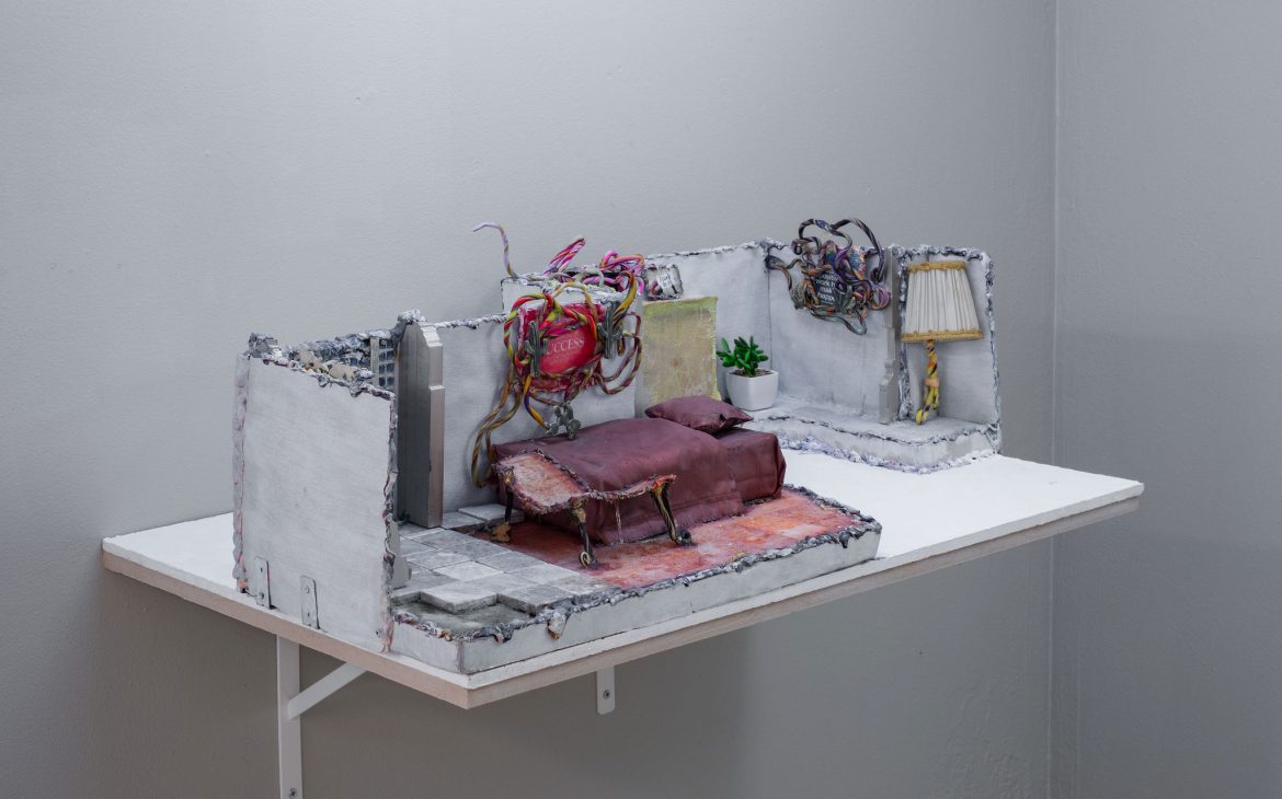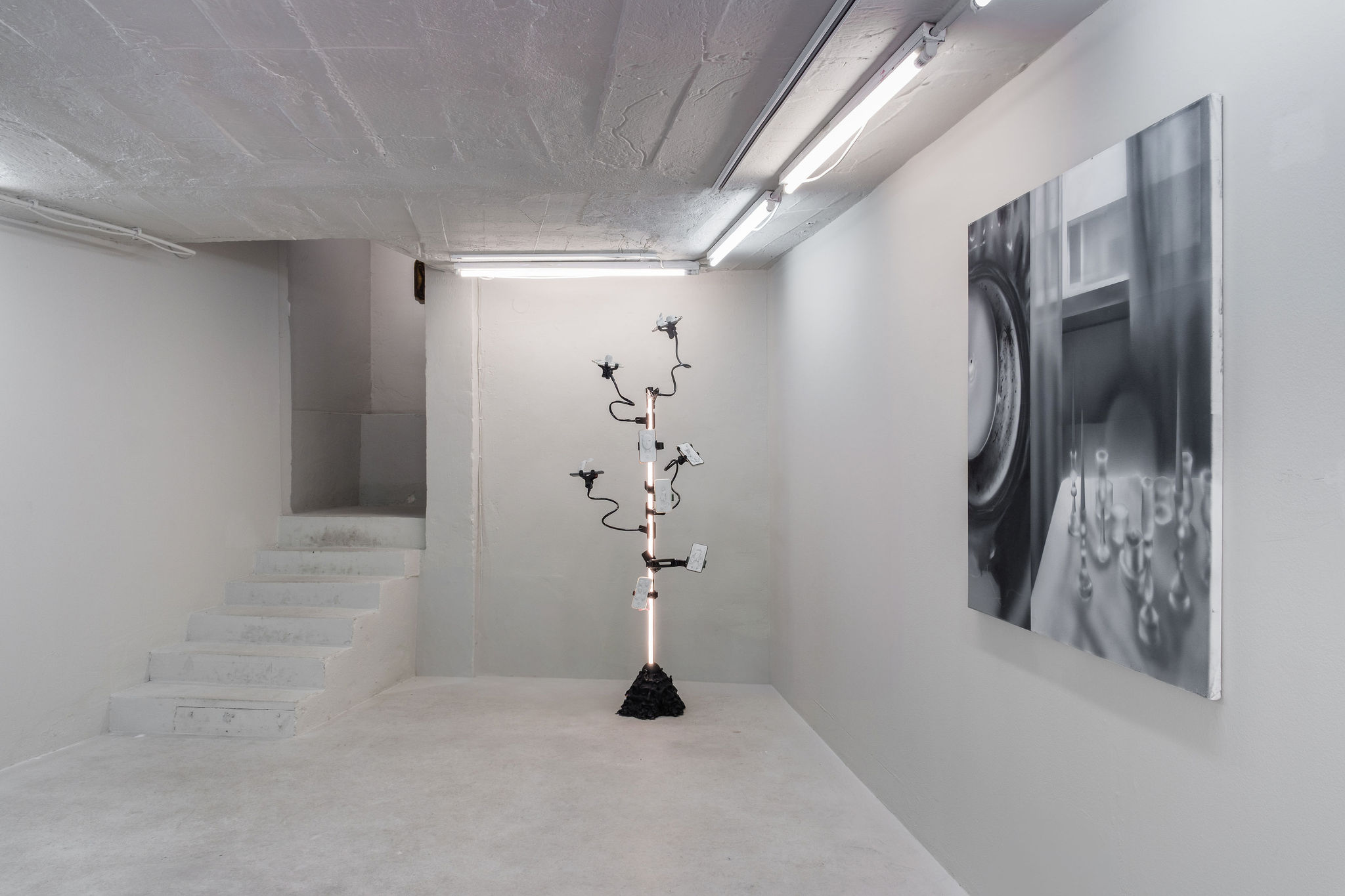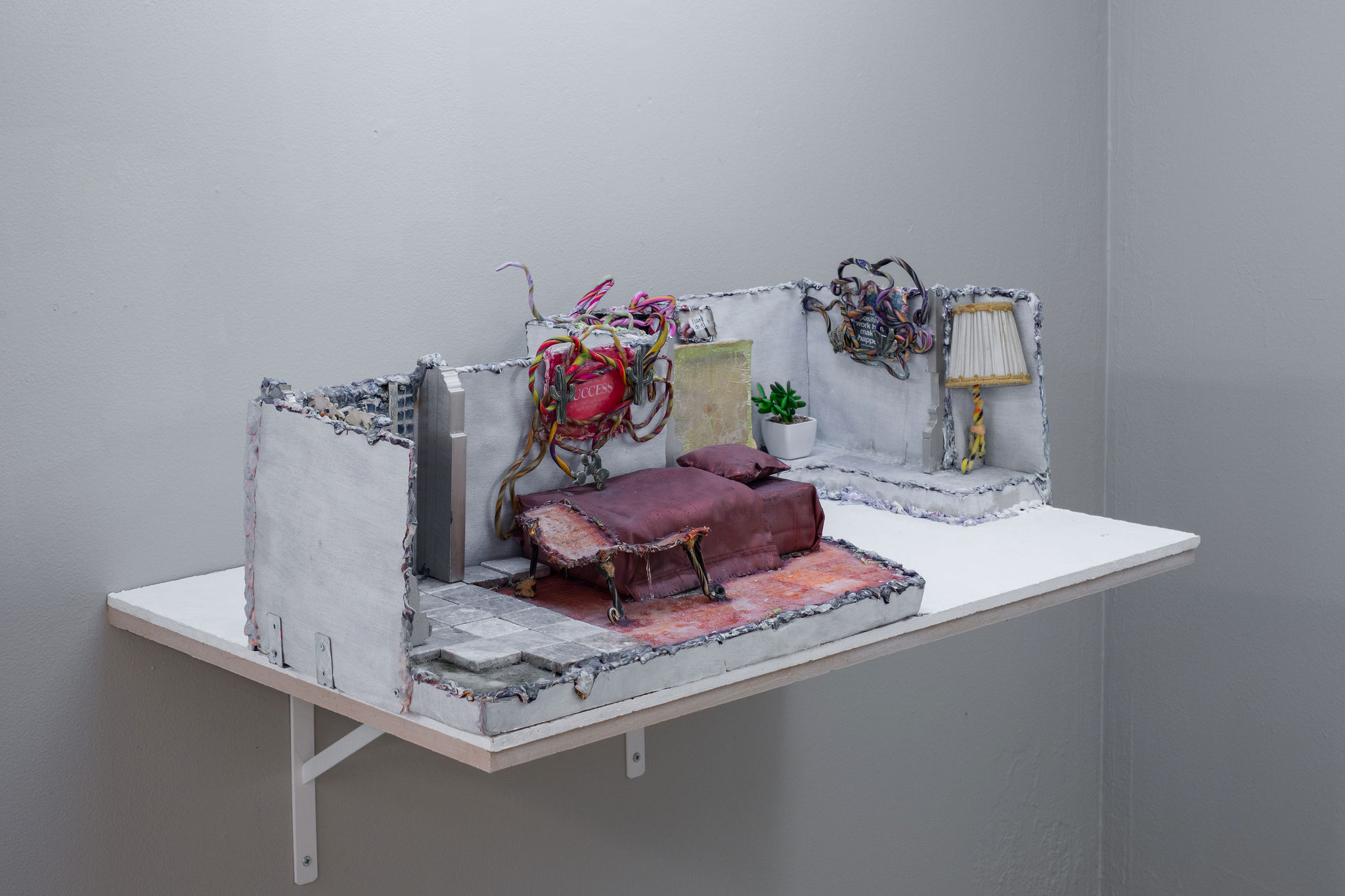 “Inspired by the lullaby as a gentle gesture of care and control, this exhibition explores the fragile boundaries between lucidity and dream, in a space that claims to offer safety and tranquility. Sleep is not a simple pause, but an active terrain in which the body and mind seek refuge and, subtly, resist an overwhelming reality. In a hectic world, dominated by the pressure of productivity and technology, sleep becomes fragmented and tense, and finding a comfortable and safe environment becomes increasingly important.” (excerpt from the curatorial text)