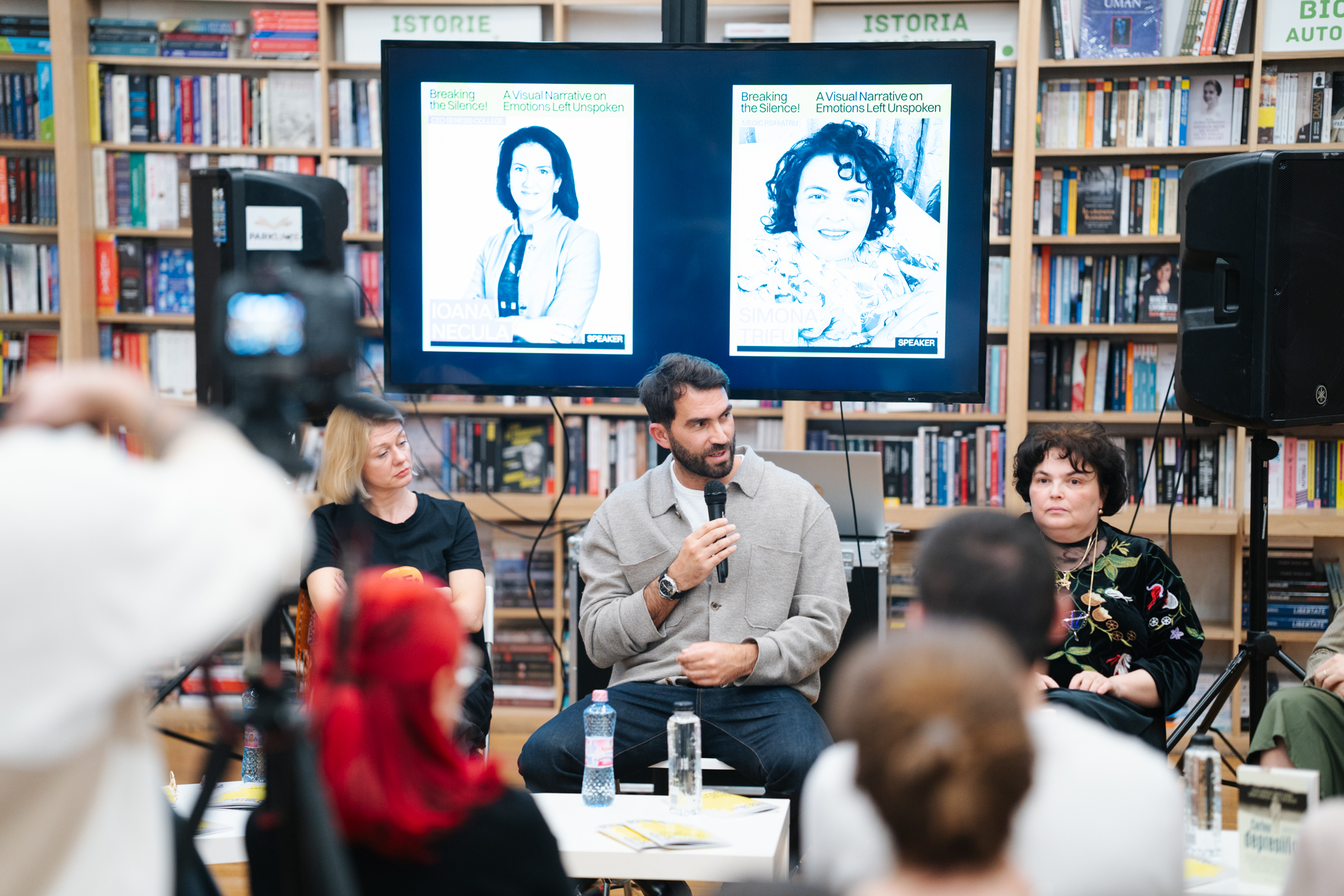 On October 7, 2025, Cărturești Bookstore at ParkLake Shopping Center hosted one of the most intimate and courageous public events of the cultural project “Breaking the Silence: A Visual Narrative on Emotions Left Unspoken”, initiated by Empower Art & Artists Association. Titled “The Gift of Emotions”, the gathering brought together psychologists, artists, medical professionals, public figures, and a large audience in a shared space of vulnerability, reflection, and open dialogue about depression and the emotions that define us – often in silence.