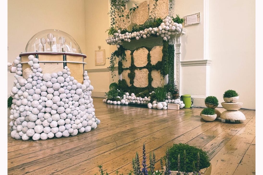 The “Vatra Verde” installation includes renewable energy, mycelium, art objects from recycled materials, interactivity, tradition, poetry, and a technical solution through which plant vibrations are transformed into sounds.
