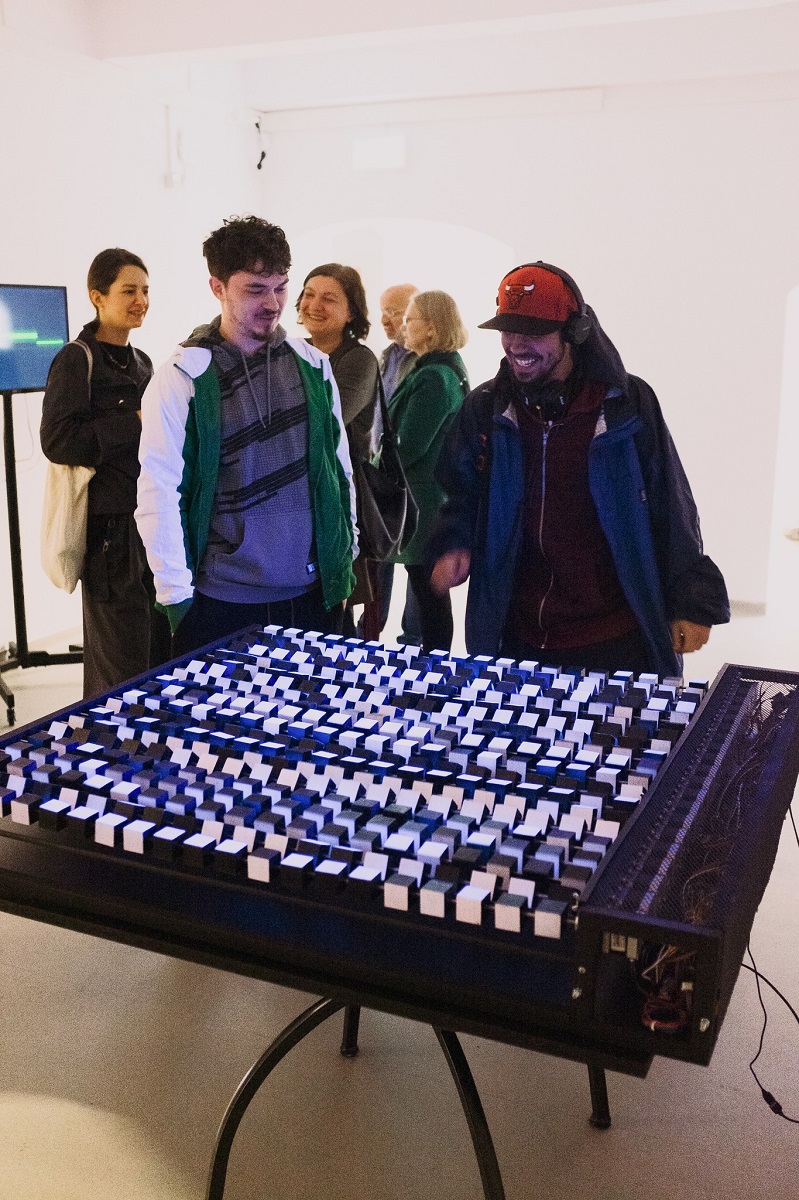 The works created by the team of artists formed by Floriama Cândea, Claudia Chiriță, and Cătălin Crețu, together with the programmer Cristian Bălaș and the researchers Marian Zamfirescu and Ionuț Andrei Relu, open the discussion not only about the conditions in which synchronization happens and is maintained, but also about the role of the viewer in these contexts: both as a disruptive factor, but also as a facilitator or executor of synchronization.