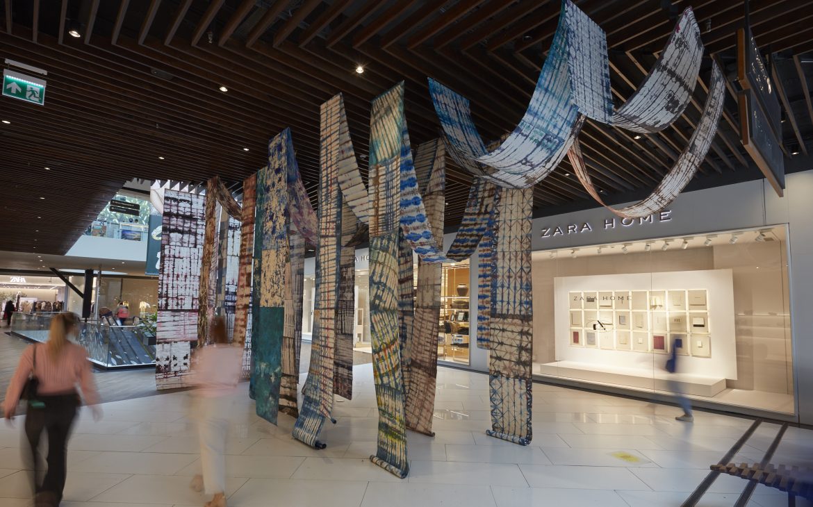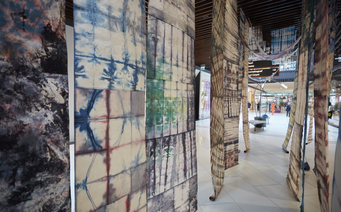 T.C.: The natural environment plays an essential role in my works, and I often explore natural stimuli — the air that sets materials in motion, the light that shifts perspectives, or the shadows that transform them. Throughout the whole “INDIGO” series, these elements turned the work into an interactive object. Likewise, in the collective installation “FLUID” (presented at the “Iarmaroc la Sat” festival — authors: Tina Chiriță, Bianca Balaban, Larisa Petcuț, Ema Măhălean — partner: IARMAROC.com), air movement and interaction with nature were crucial to the way the audience perceived the works. I want to continue this exploration, because the textile material has an extraordinary potential to connect with natural phenomena and to generate complex and intimate sensory experiences.
