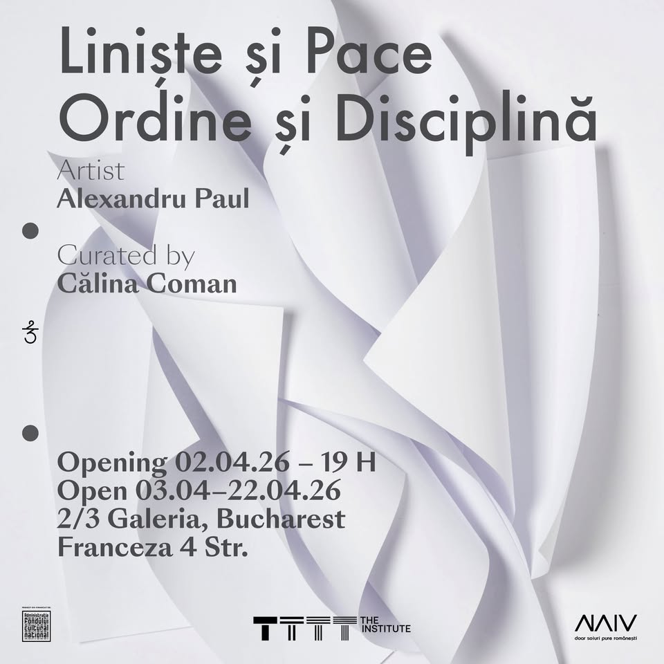 On Thursday, April 2,2026, starting at 7PM, 2/3 Galeria opens the solo exhibition of artist Alexandru Paul, titled PEACE AND QUIET. ORDER AND DISCIPLINE, in the presence of the artist. The exhibition brings together a selection of photographs produced since 2024, part of the series Still Untitled.