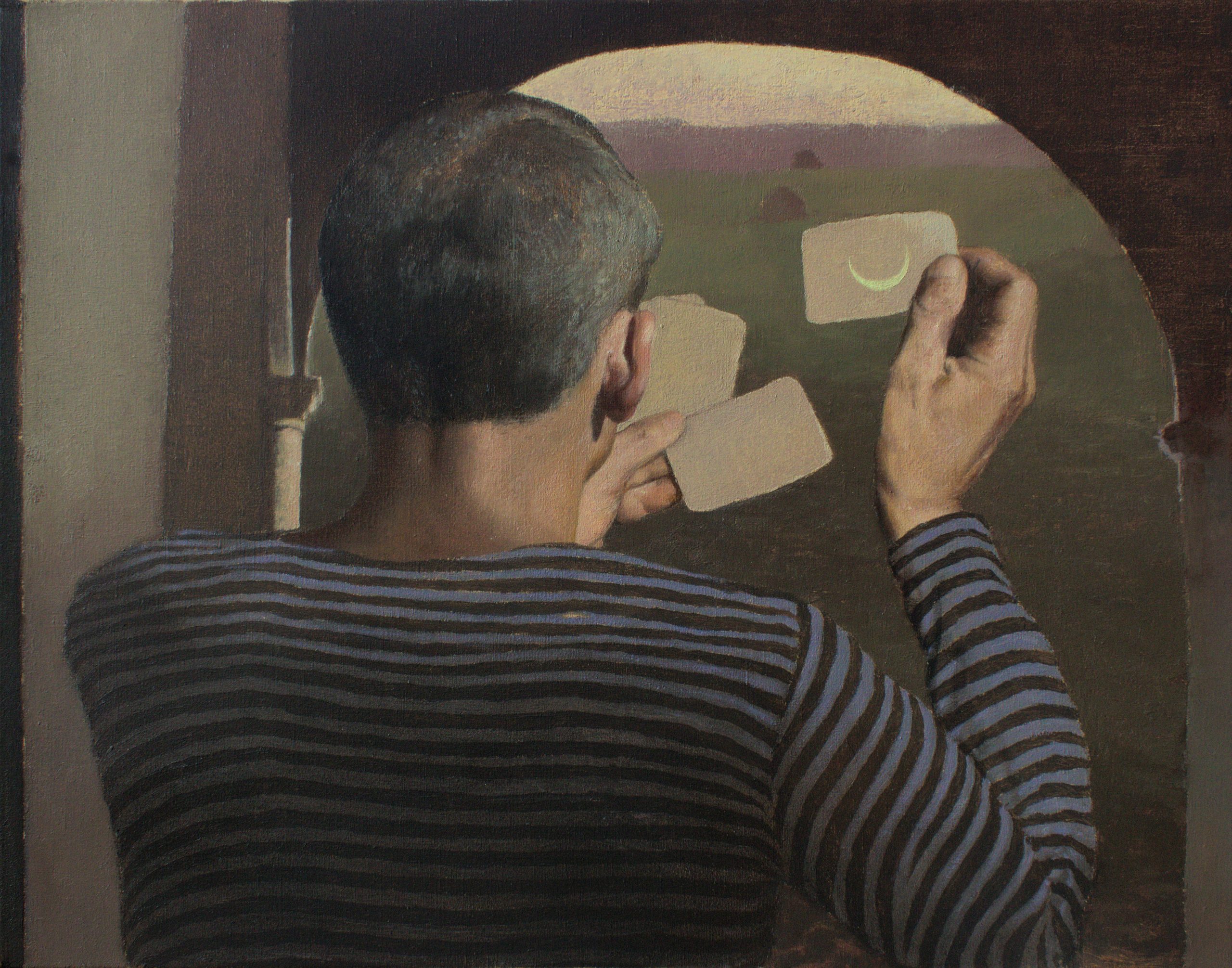 M.G.: După cum ți-am spus, sunt încă de mic preocupat de figura umană, însă multă vreme mi-a lipsit contextul amplasării sale. Motiv pentru care, pe fondul unor mari nelămuriri compoziționale, în anul trei de facultate am simțit nevoia unei oarecare revolte. Ca atare am început, pentru o perioadă de timp, să pictez exclusiv peisaje. Astăzi trebuie să admit că, în ceea ce privește practica mea de atelier, fiecare lucrare, fie ea lipsită dintru-nceput de figurație, își caută pe parcurs figurarea, arătându-mi că cele două aspecte nu pot fi nicidecum separate nici măcar de dragul analizei, dacă aceasta se vrea una onestă.